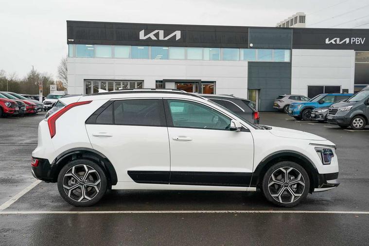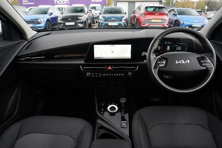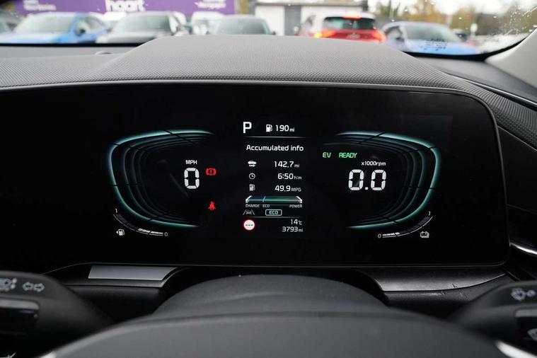 10.25" touchscreen satellite navigation, 4.2" driver display screen, Apple car play/Android Auto with voice control, Blind spot collision avoidance assist, Drive mode select (Eco, normal, sport, snow), E-call, Emergency stop signalling system, Forward Collision-Avoidance Assist (FCA) 1.5 - City/Pedestrian/Cyclist/Junction turning, Front parking sensors, Highway Driving Assist (HDA), Intelligent speed limit assist, Kia Connect (UVO), Lane Following Assist (LFA), Lane keep assist, Motor driven power steering, Rear cross traffic collision avoidance assist (RCCA), Rear parking sensors, Reversing camera system, Safe exit warning (SEW), Smart cruise control with stop and go functionality, Tailgate, Trip computer with distance/fuel consumption/average speed, Wireless Smartphone charger, 220v AC Inverter, 'Shark fin' mobile antenna, 6 speakers, Bluetooth with music streaming, DAB Digital radio, Steering wheel mounted controls, USB port for connection of a media device, Acoustic windshield, All round electric windows with drivers and front passenger auto up/down and safety function, Auto dimming rear view mirror, Automatic defog system, Automatic headlight control system, Black grille with chrome surround, Black window surrounds, Body colour bumpers, Body colour door mirrors, Body colour exterior door handles, Electrically adjustable and heated door mirrors with LED turn indicator, Electrically folding door mirrors, Front and rear chrome skid plates, Front fog lights, Gloss black wheel arches, Heated rear window, LED daytime running lights, LED Headlights, LED High mounted brake light, LED rear combination lights, Privacy glass - Rear windows and tailgate, Rain sensing front wipers, Rear fog lights, Rear roof spoiler, Rear side wing doors, Rear wiper, Roof rails, Solar glass windscreen, Welcome and follow-me home light functionality, Windscreen Washer Level Warning, 12V socket in front, 12V socket in luggage compartment, 3 seat bench in 2nd row, 60:40 split remote folding rear seats, All-round height adjustable headrests, Artificial leather centre console storage box, Artificial leather steering wheel, Automatic air conditioning, Centre console cupholder, Chrome coating interior door handles, Cloth / Artificial leather upholstery, Driver's power adjustable seat, Driver/passenger sunvisors with illuminated vanity mirrors, Drivers seat power lumbar support, Front and rear cabin lights, Front and rear door storage, Front passenger 1 x USB-C charging port, Front passenger seat manual adjustments, Glove box, Heated front seats, Heated steering wheel, ISOFIX Child seat top tethers and anchor fixings, Luggage area load cover, Luggage board, Luggage compartment light, Manually adjustable steering column, Paddle shifts, Rear centre armrest with cupholder, Rear passenger 2 x USB-C charging ports, Seatback pocket - driver, Seatback pocket - front passenger, Shift by wire SBW, Single front passenger seat, Ventiliation ducts to rear compartment, 3 point seatbelts on all seats, ABS, Automatic unlocking of doors in case of impact, Curtain and side airbags, Dual shell horn, Electric parking brake with auto hold function, Electronic stability control, Front airbags, Front passenger airbag cut-off switch, Height adjustable front seatbelts, Hill start assist control (HAC), Knee airbags, Seatbelt reminder warning, Traction control, Tyre pressure monitoring system, Customisable automatic door locking, Customisable automatic door unlocking, Deadlocks, Engine Start/Stop Button with Smart Entry System, Locking wheel nuts, Manual child locks, Rear occupant alert, Smart key with motion sensor, Thatcham category 2 security alarm and immobiliser, Visible vehicle identification number, Warranty - 7 Years/ 100, 000 miles, Centre fascia chopped carbon, 18" Alloy wheels, Tyre mobility kit,
