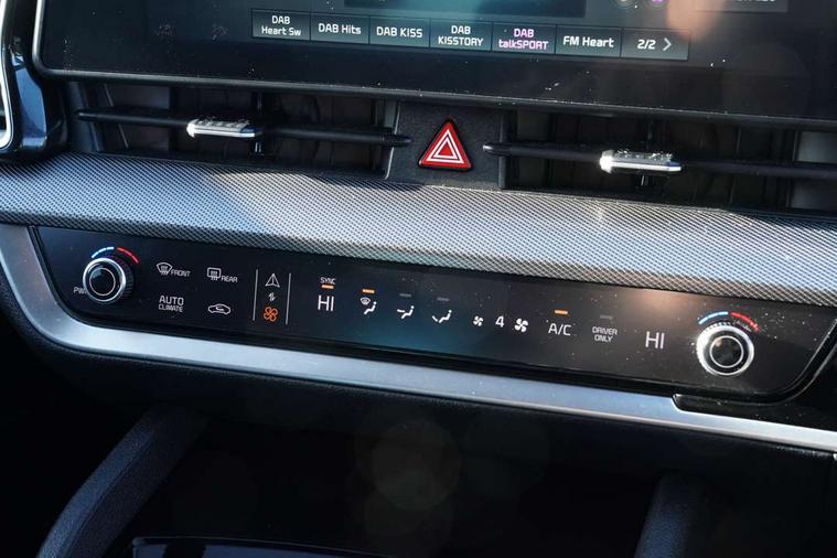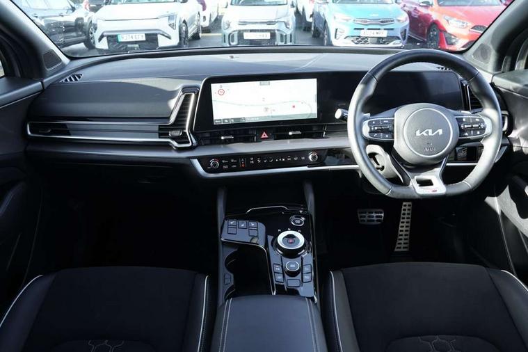 12.3" Display with navigation, 4.2" supervision colour cluster display, Apple car play/Android Auto with voice control, Drive mode selector, E-call, Forward collision avoidance assist (FCA) - city/pedestrian/cyclist/junction covering, Front and rear parking sensors, Highway Driving Assist (HDA), Intelligent speed limit assist, Kia Connect (UVO), Lane Following Assist (LFA), Lane keep assist, Low washer fluid warning, Rear view monitor, Reversing camera system integrated into centre fascia screen, Smart cruise control with stop and go functionality, Speed sensitive power steering, Trip computer, Windscreen washer level indicator, Intelligent Stop and Go, 6 speaker audio system, Bluetooth audio streaming, DAB Radio with MP3, Rear USB port, Steering wheel mounted audio controls, USB C type charging ports on centre console, USB C type charging ports on side of front seats, USB port for connection of a media device, All round electric windows with drivers and front passenger auto up/down function, Automatic headlight control system, Automatic window defogger, Backlite glass heated with timer, Body colour and black bumper with silver accents, Body colour exterior door handles, Body colour radiator upper garnish and door garnish, Electrically adjustable/heated/folding door mirrors with LED indicators, Front and rear chrome skid plates, Gloss black door mirrors, Gloss black radiator grille, Gloss black side sill and wheel arch body mouldings, Glossy black roof rack, High beam assist, Interior electrochromic mirror, LED daytime running lights, LED front fog lamps, LED headlamps (low and high beam - MFR type), LED High mounted stop light, LED rear combination lamp, Rain sensing wipers with aero blades, Rear fog lamp, Rear privacy glass, Rear side wing doors, Rear spoiler, Rear wiper, Satin finished beltline, Silver coloured inserts to bumpers, Tinted rear glass, Trailer stability assist, 12V power socket in front centre fascia and luggage compartment, 2nd row personal lamps, 3 seat bench in 2nd row, 3 x passenger assist grips, 40/20/40 split folding rear seat, All-round height adjustable headrests, Black headlining, Centre console storage box, Cupholders in rear armrest, D-Shaped sports leather steering wheel and perforated inserts with GT-Line logo, Door courtesy lamps, Drink holder at centre armrest, Driver and front passenger side sunvisors with illuminated vanity mirrors, Driver's seat manual height adjust, Drivers seat power lumbar support, Front and rear door storage, Front seat and rear pockets, Front/rear centre armrests, Gear shift indicator, Glovebox illumination, Heated front seats, Heated steering wheel, Interior door lock/unlock function, ISOFIX Child seat top tethers and anchor fixings outer rear seats, Luggage area light, Luggage area load cover, Luggage net with hooks, Metal paint interior door handles, Overhead console lamp, Paddle shift controls, Rear cabin light, Rear coat hooks, Single front passenger seat, Sports pedals, Suede leather upholstery, Three zone climate control, Tilt/telescopic adjustable steering wheel, Ventilation ducts to rear compartment, Active front headrests, All round 3-point seatbelts, Anti-lock braking system (ABS), Dual front side airbags, Dual horn, Electronic parking brake, Electronic stability control with downhill brake control, Front passenger airbag cut-off switch, Front seatbelt pretensioners + load limiters, Height adjustable front seatbelts, Hill start assist control (HAC), Impact sensing auto door unlocking, Multi collision brake assist, Rear door child safety locks, Rear seat alert system, Traction control, Twin curtain airbags, Twin front airbags, Tyre pressure monitoring system, Advanced anti-theft system including immobiliser and alarm, Door deadlocks, Engine Start/Stop Button with Smart Entry System, Locking wheel nuts, Speed sensitive auto door locking, Visible vehicle identification number, Aluminium pattern finish centre fascia and door garnish, 18" GT-Line alloy wheels, Tyre mobility kit,