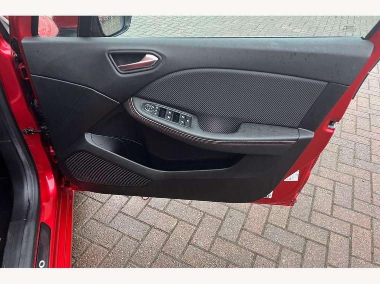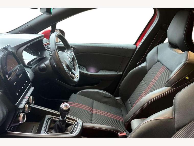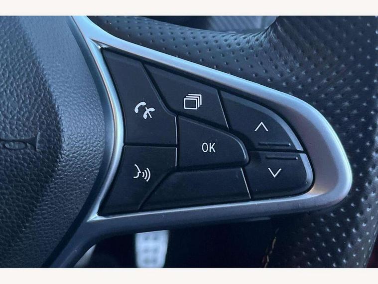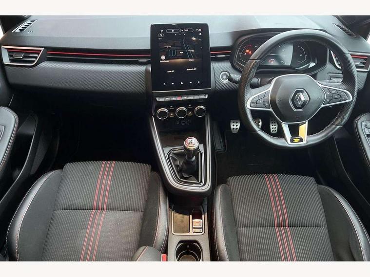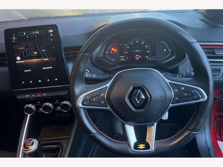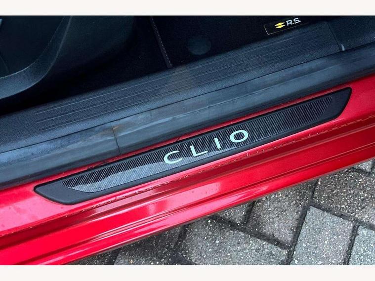 7" TFT colour instrumental display, Cruise control + speed limiter, E-call, Easy link navigation with 9.3" touchscreen+4x20W amplifier+FM DAB double tuner, sound auditorium, 2xUSB/1xjack/bluetooth, smartphone integration plus, Eco mode driving function, Gear change indicator, Lane departure warning system, Lane keep assist, Over speed prevention, Rear parking sensors, Traffic sign recognition, Trip computer, Variable assistance electric PAS, Auto light control and rain sensing wiper, Automatic headlights, Body colour door handles, Body colour door mirrors, Body coloured bumpers, Body coloured rear spoiler, Chrome exhaust tailpipe, Chrome front grille, Chrome window surround, Drivers one touch window with anti-pinch feature, Electric adjustable/heated/folding door mirrors, Electric front windows, Electric rear windows, Exterior rear hidden door handles, Extra tinted glass on rear windows + tailgate, Frameless auto dimming interior rear view mirror, Full C-shape LED front and rear signature lighting, Full LED front and rear headlamps integrating daytime running lights at the front and rear, Gun Metal insert on lower side doors with Clio embossing, LED front fog lights, LED Roof light, Rear fog lights, Rear side wing doors, Rear wiper, RS Line badging, RS Line exterior styling, RS Line side marker chrome, RS Line sports front bumper, RS Line sports lower grill, RS marker chrome gun metal grey sport rear bumper with chrome oval exhaust pipe, Shark fin antenna, Variable speed on front windscreen wipers, 12V Accessory socket, 3 rear height adjustable headrests, 3 seat bench in 2nd row, 6.2L front glovebox, 60/40 split rear seats, Air recirculation control, Auto climate control, Black headlining, Dark roof lining and aluminimum pedal set, Driver's seat height adjustment, Front cupholders, Front decor strip in red, Front door storage bin, Height adjustable front headrests, Height adjustable passenger seat, Height/reach adjust steering wheel, Isofix system on outer rear seats, Multi function steering wheel, Pollen filter, RS branded top grain leather steering wheel, RS Line cloth upholstery, RS Line Interior trim including airvent stripe and gearshifter in red, Single front passenger seat, System for Restraint and Protection SRP-front seats, Parking Pack - Clio, Storage pack - Clio, 3 point seatbelts on all rear seats, ABS+EBD+Brake assist, Automatic emergency braking system, Curtain airbags, Distance warning alert, Driver and passenger front and side airbag deactivation, Driver/Front Passenger airbags, ESC - Electronic Stability Control + traction control, Front side airbags(head+thorax), Height adjustable driver's seatbelt, Hill start assist, Seatbelt warning, Tyre pressure warning, Central door locking, Deadlocking system, Hands free key card with push button, start and stop function, Locking fuel filler cap, RAID (Renault Anti-Intruder Device) with automatic door locking, Rear side wing door and window child locking function (front driver door control panel), Remote central locking with thatcham approved immobiliser, Grey dashboard trim, 17" RS diamond cut alloy wheels,