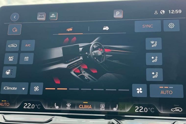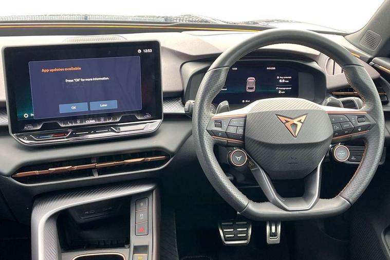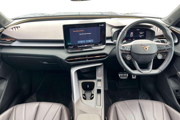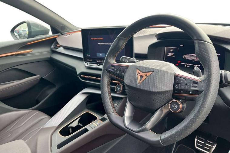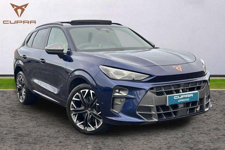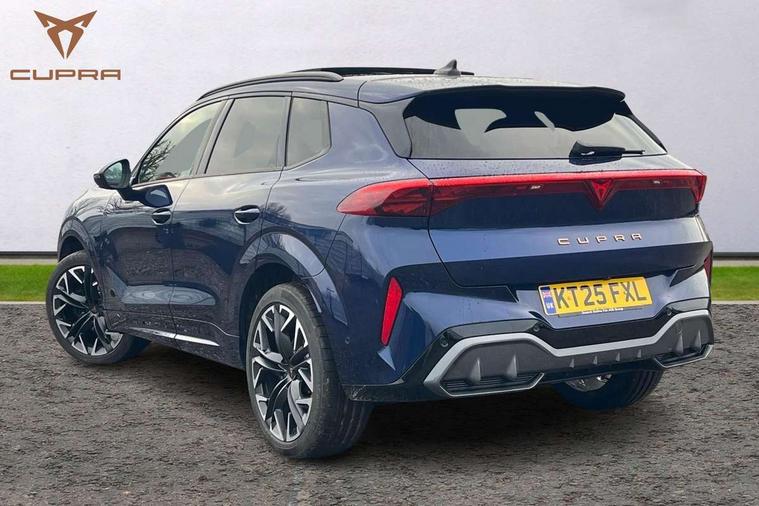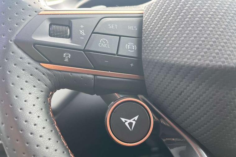 10.25" digital cockpit and configurable dashboard, Adaptive cruise control with follow-to-stop and speed limiter, Advanced driver alert system, Advanced lane assist with semi-automatic vehicle control in a medical emergency and traffic jam assist, Driving profile selection (DCC- Comfort, performance, CUPRA, Individual, Dynamic road sign display, E-call, Electric tailgate with virtual pedal, Emergency steering support with turn assist, Front and rear parking sensors, Front assist (Forward collision warning with automatic braking) with multifunction camera and front cross traffic assist, Head up Display, Intelligent park assist, Media system with Nav - 12.9" touch display, voice control, full link phone (wired/wireless), DAB and Steering wheel mounted controls, Rear traffic assist, Side and exit assist, Speed sensitive power steering, Start/stop system with regenerative braking, Top view camera (front camera, rear camera, 2 side cameras), Wireless phone charger, Adaptive chassis control with a 2-valve shock absorber, Auto dimming rear view mirror, Black roof rails, CUPRA 3D rear lights with ceremony & swiping indicator and illuminated logo, Dark tinted rear windows, Daytime running lights with automatic headlight control and Coming and Leaving home function, Door mirrors with memory function and lowing function on passenger mirror, Electric front/rear windows, Electrically adjustable, heated and folding door mirrors, Front fog lamps with cornering function, Heat reflecting windscreen, High beam assist, Rain sensing wipers, Rear fog light on one side, back up light on both sides, Rear side wing doors, Rear wash/wipe, Third brake light, Welcome lights (within exterior mirror housing), 3 seat bench in 2nd row, Black roof lining, Cupra sports pedals, Driver seat memory function, Electrically adjustable front seats including lumbar support, Four x USB Type C ports (2 in front and 2 in rear), Front and rear head restraints, Front and rear reading lights X 4, Front centre armrest, Heated front seats, Heated leather wrapped multi function sports steering wheel with tiptronic, Illuminated interior front door sills, Isofix, Leather upholstery, Operating voltage 12V, Single front passenger seat, Smart wraparound interior lighting, Sunvisors with illuminated mirror, Three zone climate control with control panel in rear, Unsplit rear seat bench, split folding backrest, with centre armrest, Variable luggage/load compartment floor, Pure performance pack - Terramar, 3 point seatbelts in front with pretensioner and electric height adjustment, 3 point seatbelts on all rear seats, Brake control system - ESC and brake booster, Child proof door locks, Driver and front passenger airbags, Electronic parking brake, Front and rear disc brakes, Front interaction airbag, Front passenger airbag deactivation switch, Front side airbags with curtain airbags, Pre-crash front and rear seat belt tensioner, window closure and hazard lights, Tyre pressure monitoring system, Visual and acoustic seat belt reminder, electric contact in front and rear, Anti theft alarm, Keyless locking and starting system with keyless access, Locking wheel bolts, Black decorative trims, Chrome interior detailing, Performance tyres in polmer coating, Tool kit,