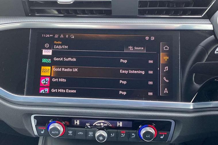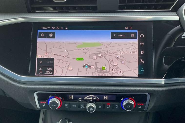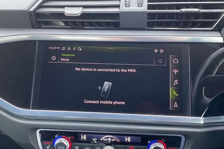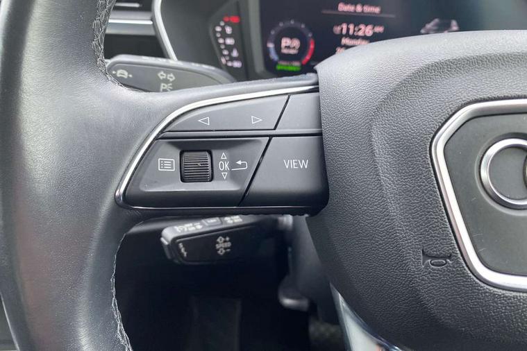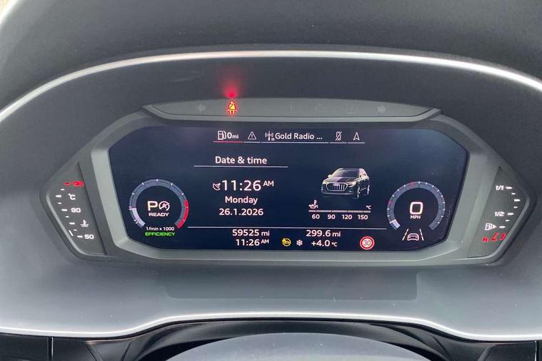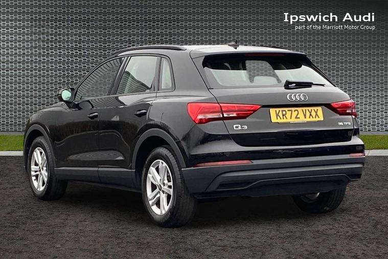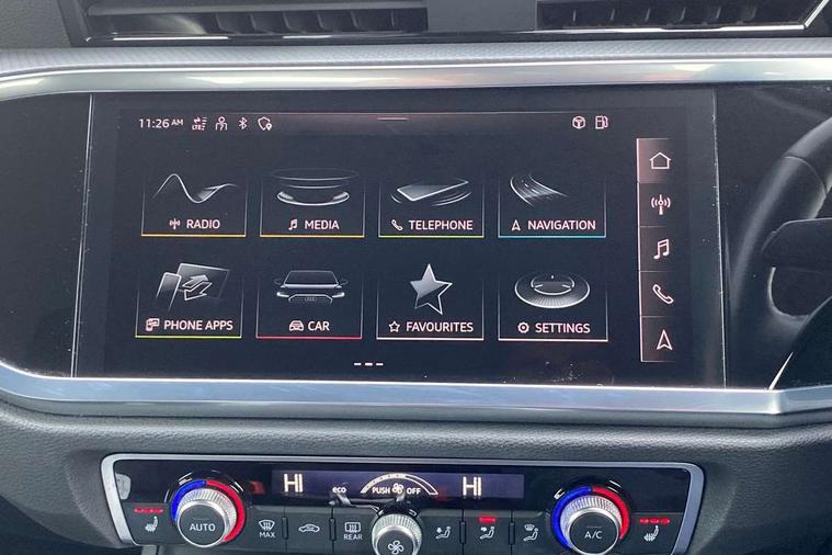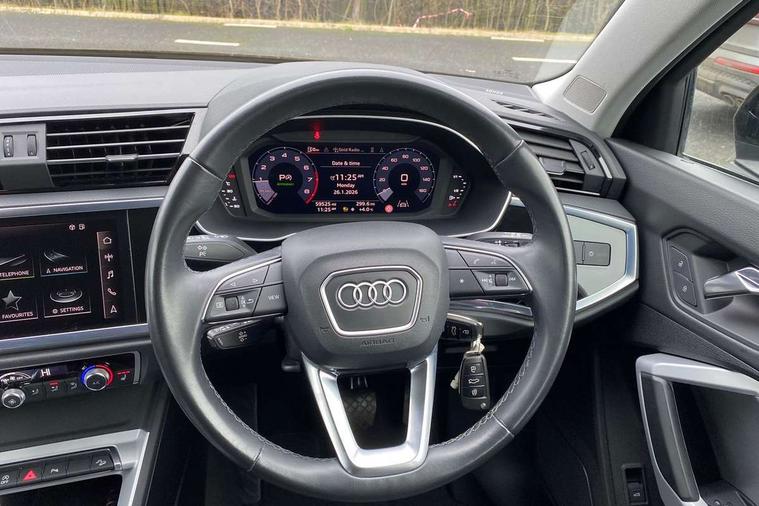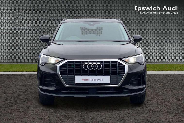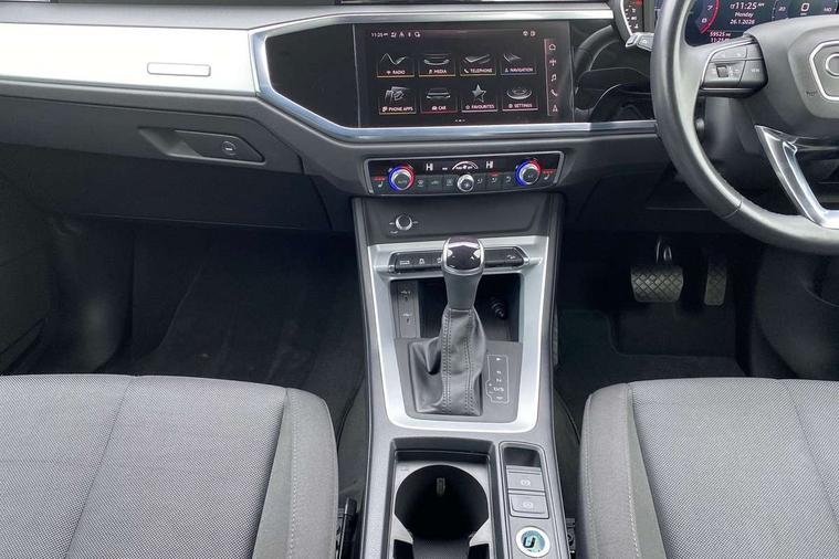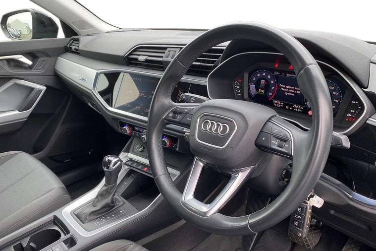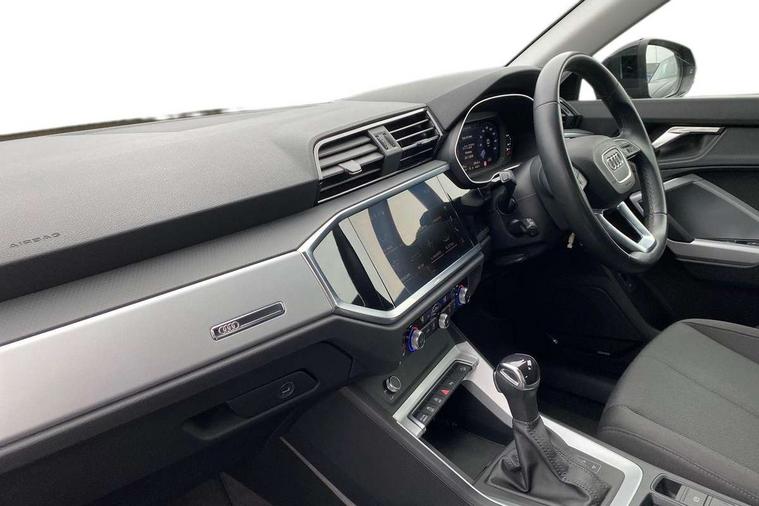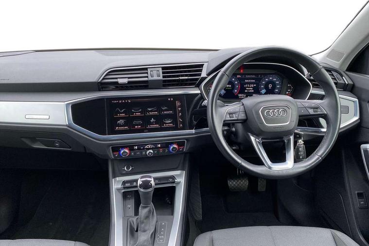 Amazon alexa Integration, Audi drive select, Audi lane departure warning, Audi Virtual Cockpit - 10.25" display, Bluetooth interface, Camera based traffic sign recognition, Legal emergency call, MMI Navigation Plus with high resolution 10.1 inch touchscreen colour display, Power operated tailgate, Progressive steering, Service interval indicator, Smartphone interface includes wireless Apple carplay/Android Auto, Start stop system with recuperation, Voice control system with natural language interaction, Standard suspension, 2 USB-C ports with charge and data functions, 6 passive loudspeakers, DAB digital radio module, Acoustic windscreen, Auto dimming frameless rear view mirror, Black roof rails, Body colour door mirrors, Diffuser in grained anthracite, Electrically folding, adjustable and heated door mirrors with integrated LED side indicators and kerb view function for passenger side, Exterior bumper with wheel arch trims and side sill trims in grained black matt, Front and rear electric windows, Grained radiator protective grille, Halogen rear lights, LED headlights with LED daytime running lights, Rain and light sensors, Rear side wing doors, Rear wiper, Third brake light, Variable front intermittent wipers, 12V socket in rear centre console, 3 seat bench in 2nd row, 3 spoke multi-function leather steering wheel, 40:20:40 folding with manual adjustment for 60:40 forwards/backwards position and backrest angle, Dual zone electronic climate control, Front and rear floor mats, Front and rear headrests, Front and rear roof module including reading lights, Front centre armrest, Glove compartment lighting, Height and reach adjustable steering wheel, ISOFIX child seat mounting for front passenger with airbag deactivation and outer rear seat including top tether attachment point for outer rear seats, Luggage compartment light, Lunar silver cloth headlining, Manual front seats with height adjustment, Single front passenger seat, Stainless steel luggage compartment sill finisher, Non smoking pack - Q3, 3x3 point rear seatbelts, 6 airbags - Driver, front passenger, curtain and side windows, Audi pre-sense front with pedestrain and cyclist recognition, Electrically operated child locks on rear doors, Electromechanical parking brake, Electronic stabilisation control including ABS, ASR and EDL, Front seatbelt reminder, Hill descent control, Hill hold assist, Pre sense basic, Seatbelt monitoring, Tyre pressure warning, Warning triangle and first aid kit, Anti theft alarm, Anti theft wheel bolts, Immobiliser, Remote central locking, Detail dashboard around MMI touch colour display in glass look, black with surround in aluminium look, Micrometallic silver inlay, 17" 5 twin spoke design alloy wheels,