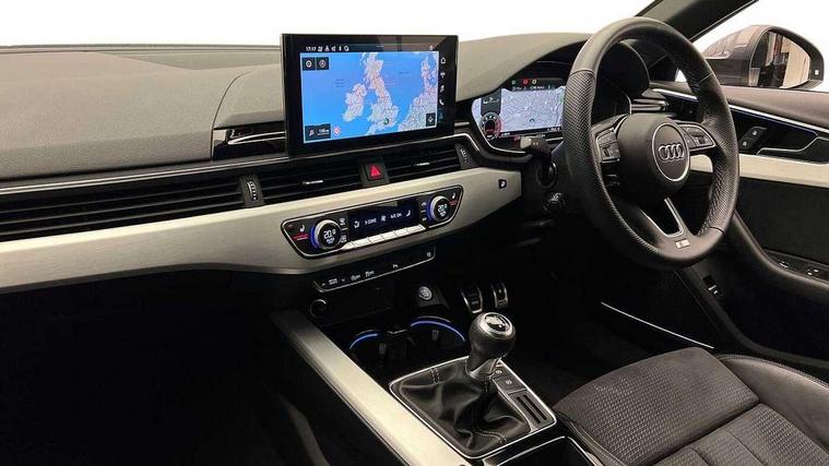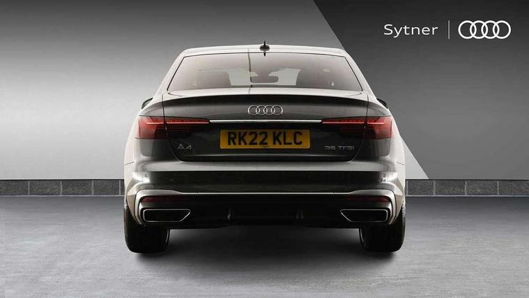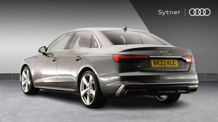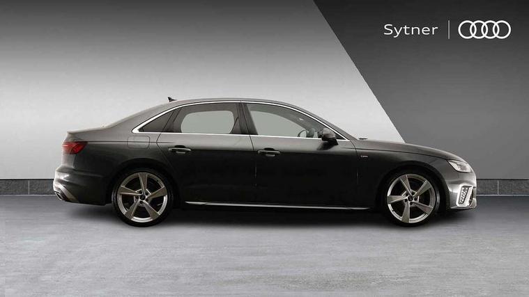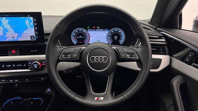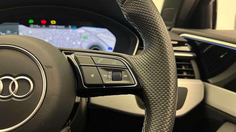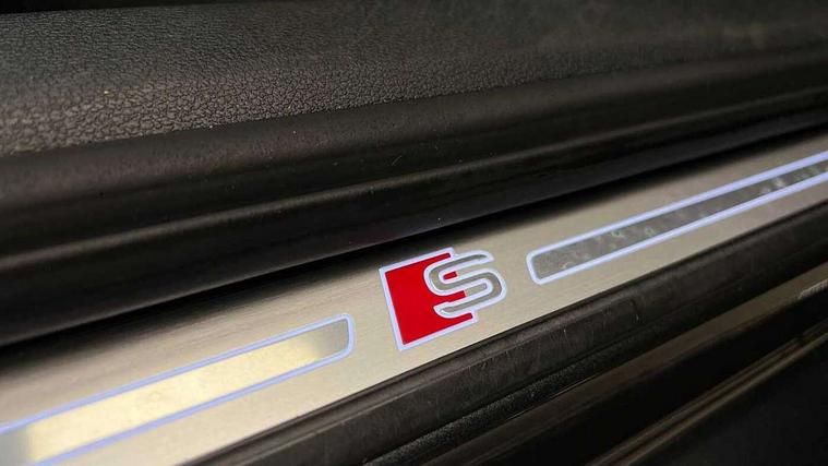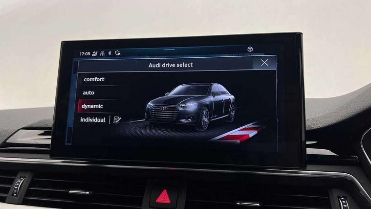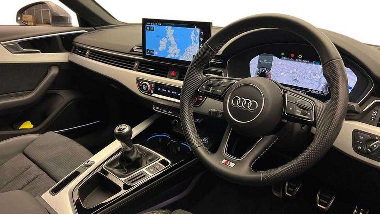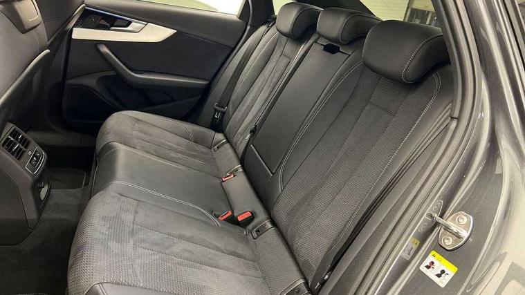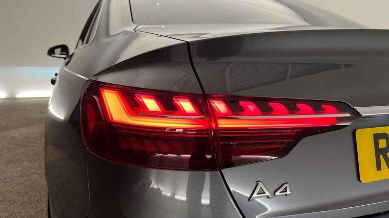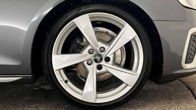 Audi connect safety and service (e-call), Audi connect with Amazon Alexa Integration, Audi drive select, Audi parking system plus with front and rear sensors, Audi smartphone interface, Audi virtual cockpit, Automatic start-stop system with coasting functionality and efficiency programme, Bluetooth interface, Cruise control system with speed limiter, Electric boot lid release, Electromechanical power steering, Email, calendar and text messages displayed via MMI, MMI Navigation plus with MMI touch includes 10.1" high resolution colour MMI display, 3D map, Rear view camera, Voice control system, 54 litre fuel tank, Sports suspension lowered by 23mm, 2 USB charging ports, 8 passive loudspeakers, DAB digital radio reception, Auto dimming rear view mirror, Body colour door handles, Body colour front spoiler lip, Body colour side sill trim, Body coloured door mirrors, Electrically folding auto dimming/adjustable/heated door mirrors with LED side indicators and kerb view function for passenger side, Grained matt black side air inlets with matt aluminium silver inlay, High beam assistant, Honeycomb structure radiator grille in grained matt black, LED headlights with LED rear lights + dynamic rear indicators + headlight adjustment and high beam, turning light + LED daytime running lights, LED third brake light, Matt aluminium silver tailpipe trim, Privacy glass, Rain and light sensors, Rear boot, Rear side wing doors, S Line badges on the front wings, S line front and rear bumpers with side skirts, S Line rear diffuser in matt titanium black with trim strip in matt aluminium silver, Windscreen with acoustic glazing, 4 way electric lumbar support for driver and front passenger, 40/20/40 split folding 3 rear seat bench in 3 parts with rear centre armrest, Black cloth headlining, Black perforated leather gearknob, Contrast stitching on seats, steering wheel and gear lever gaiter, Deluxe 3 zone electronic climate control, Door sill trims with aluminium inlay, Front and rear head restraints, Front centre armrest, Heated front seats, Illuminated door sill trims with S logo, ISOFIX child seat mounting and top tether, Manual seat adjustment, Single front passenger seat, Stainless steel pedals and foot rest, High gloss package - A4, LED Interior light pack - A4/S4, 3 rear seatbelts, 6 airbags - Driver, front passenger, curtain and side windows, Electronic Stabilisation Control (ESC) including ABS, ASR and EDL, Hill hold assist, Multi collision brake assist, Pop-up bonnet for pedestrian protection, Pre sense city, Rear door child safety locks, Seatbelt monitoring, Warning triangle and first aid kit, Anti theft alarm, Anti theft wheel bolts, Keyless Go, Matt brushed aluminium inlays, Tool kit, Tyre repair kit,
