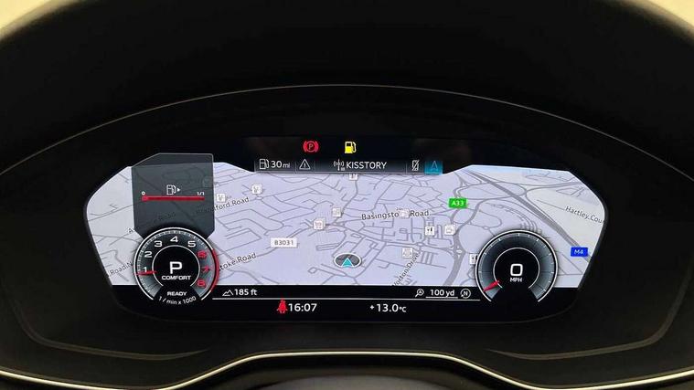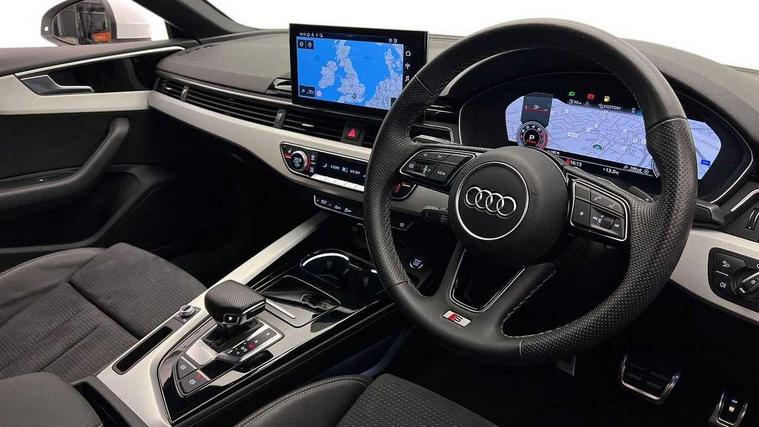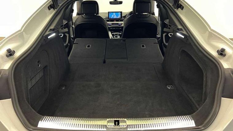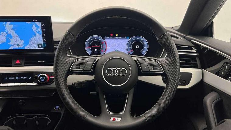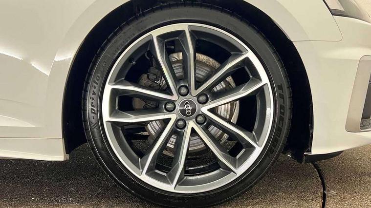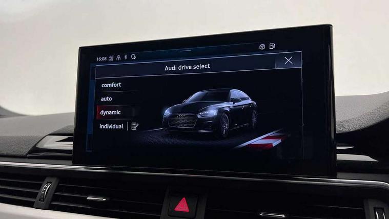 Audi connect safety and service (e-call), Audi drive select (Auto, Comfort, Dynamic and Individual), Audi smartphone interface, Audi virtual cockpit - 12.3" full colour digital instrument cluster, vehicle/engine speed, Radio/media information+Driver assistance systems, Automatic start-stop system with coasting functionality and efficiency programme, Bluetooth interface, Camera based traffic sign recognition, Electro-mechanical power steering, Email, calendar and text messages displayed via MMI, Front and rear parking sensors, Lane departure warning, MMI nav+ with MMI touch - 10.1" high resolution MMI display, touch sensitive, 3D map, route/country info, dynamic route guide, personal route assist, Power operated tailgate, Rear view camera, Service interval indicator, Voice control system, 54 litre fuel tank, Sports suspension lowered by 23mm, 8 passive loudspeakers, CD player, DAB digital radio reception, Two additional USB ports for rear passenger in rear centre console, Two SDXC card slots, Auto dimming door mirrors, Auto dimming rear view mirror, Body colour bumpers, Body colour door handles, Body colour front spoiler lip, Body colour side sill trim, Body coloured door mirrors, Electric adjustable heated door mirrors, Electric folding door mirrors, Electric front windows, Front fog lights, Honeycomb structure radiator grille in grained matt black, Kerb-view function for passenger side, LED headlights and rear lights with LED daytime running lights, LED side indicator lights integrated into door mirrors, LED third brake light, Matt aluminium silver tailpipe trim, Privacy glass, Rain and light sensors, Rear side wing doors, Rear wiper, S line badges on front wings, S line front and rear bumpers with side skirts, S Line rear diffuser in matt anthracite black with trim strip in matt aluminium silver, Side air inlets in grained matt black with matt aluminium silver inlay, Variable front intermittent wipers, Windscreen with acoustic glazing, 3 seat bench in 2nd row, 3 spoke high multifunction leather sport steering wheel with paddle shfit and S badging perforated leather grips, 4 way electric lumbar support for driver and front passenger, 40/20/40 split folding 3 seater rear bench seat, Adjustable steering column, Black cloth headlining, Black perforated leather gearknob, Contrast stitching on seats, steering wheel and gear lever gaiter, Deluxe 3 zone electronic climate control, Front centre armrest, Front head restraints, Front/rear floor mats, Heated front seats, Illuminated door sill trim with S logo, ISOFIX child seat mounting and top tether, Luggage compartment mat, Manual seat adjustment, Rear centre armrest, Rear headrests, Single front passenger seat, Stainless steel pedals and footrest, Sunvisors with vanity mirrors, LED interior light pack - A5/RS5, 3x3 point rear seatbelts, 6 airbags - Driver, front passenger, curtain and side airbags, Attention and drowsiness assist, Electromechanical parking brake, Electronic Stabilisation Control (ESC) including ABS, ASR and EDL, Front passenger airbag deactivation, Height adjustable front seatbelts, Hill hold assist, Manual child lock in rear doors, Multi collision brake assist, Pop-up bonnet for pedestrian protection, Pre sense city, Seatbelt monitoring, Tyre pressure warning, Variable restraint system, Warning triangle and first aid kit, Anti theft alarm system, Anti theft wheel bolts, Immobiliser, Keyless Go, Remote central locking, Matt brushed aluminium inlays, Tool kit, Tyre repair kit,