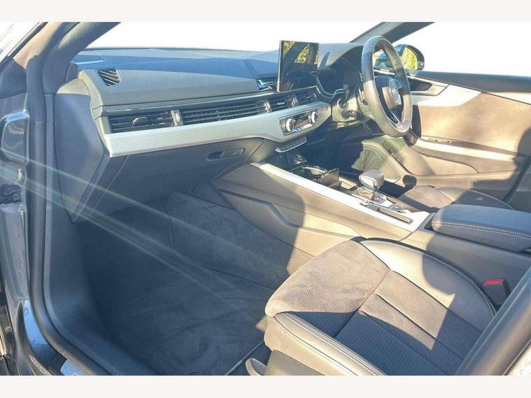 Audi connect safety and service (e-call), Audi drive select (Auto, Comfort, Dynamic and Individual), Audi smartphone interface, Audi virtual cockpit - 12.3" full colour digital instrument cluster, vehicle/engine speed, Radio/media information+Driver assistance systems, Automatic start-stop system with coasting functionality and efficiency programme, Bluetooth interface, Camera based traffic sign recognition, Electro-mechanical power steering, Email, calendar and text messages displayed via MMI, Front and rear parking sensors, Lane departure warning, MMI nav+ with MMI touch - 10.1" high resolution MMI display, touch sensitive, 3D map, route/country info, dynamic route guide, personal route assist, Power operated tailgate, Rear view camera, Service interval indicator, Voice control system, 54 litre fuel tank, Sports suspension lowered by 23mm, 8 passive loudspeakers, CD player, DAB digital radio reception, Two additional USB ports for rear passenger in rear centre console, Two SDXC card slots, Auto dimming door mirrors, Auto dimming rear view mirror, Body colour bumpers, Body colour door handles, Body colour front spoiler lip, Body colour side sill trim, Body coloured door mirrors, Electric adjustable heated door mirrors, Electric folding door mirrors, Electric front windows, Front fog lights, Honeycomb structure radiator grille in grained matt black, Kerb-view function for passenger side, LED headlights and rear lights with LED daytime running lights, LED side indicator lights integrated into door mirrors, LED third brake light, Matt aluminium silver tailpipe trim, Privacy glass, Rain and light sensors, Rear side wing doors, Rear wiper, S line badges on front wings, S line front and rear bumpers with side skirts, S Line rear diffuser in matt anthracite black with trim strip in matt aluminium silver, Side air inlets in grained matt black with matt aluminium silver inlay, Variable front intermittent wipers, Windscreen with acoustic glazing, 3 seat bench in 2nd row, 3 spoke high multifunction leather sport steering wheel with paddle shfit and S badging perforated leather grips, 4 way electric lumbar support for driver and front passenger, 40/20/40 split folding 3 seater rear bench seat, Adjustable steering column, Black cloth headlining, Black perforated leather gearknob, Contrast stitching on seats, steering wheel and gear lever gaiter, Deluxe 3 zone electronic climate control, Front centre armrest, Front head restraints, Front/rear floor mats, Heated front seats, Illuminated door sill trim with S logo, ISOFIX child seat mounting and top tether, Luggage compartment mat, Manual seat adjustment, Rear centre armrest, Rear headrests, Single front passenger seat, Stainless steel pedals and footrest, Sunvisors with vanity mirrors, LED interior light pack - A5/RS5, 3x3 point rear seatbelts, 6 airbags - Driver, front passenger, curtain and side airbags, Attention and drowsiness assist, Electromechanical parking brake, Electronic Stabilisation Control (ESC) including ABS, ASR and EDL, Front passenger airbag deactivation, Height adjustable front seatbelts, Hill hold assist, Manual child lock in rear doors, Multi collision brake assist, Pop-up bonnet for pedestrian protection, Pre sense city, Seatbelt monitoring, Tyre pressure warning, Variable restraint system, Warning triangle and first aid kit, Anti theft alarm system, Anti theft wheel bolts, Immobiliser, Keyless Go, Remote central locking, Matt brushed aluminium inlays, Tool kit, Tyre repair kit,