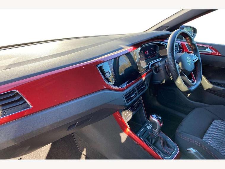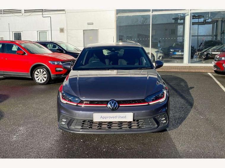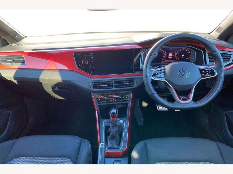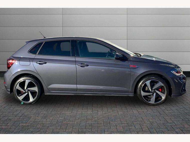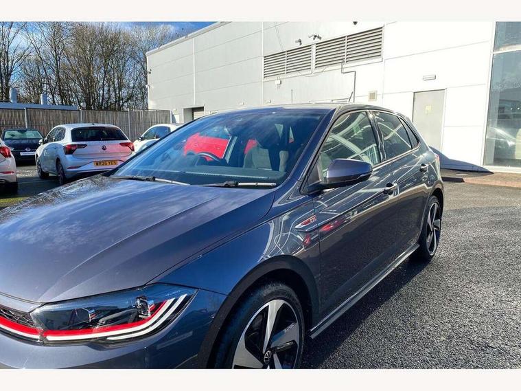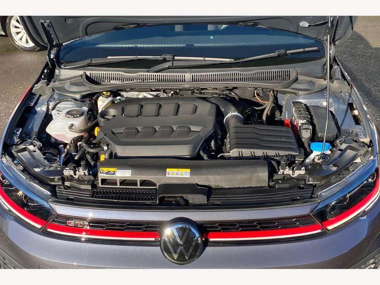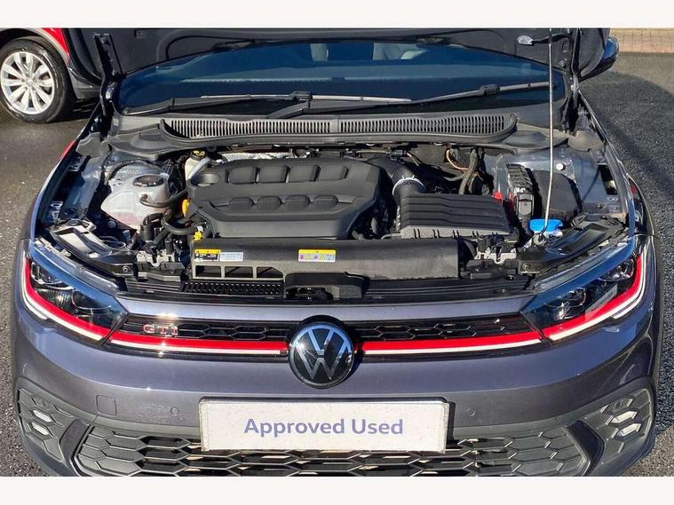 Adaptive cruise control with follow-to-stop and speed limiter, Bluetooth mobile phone interface, Digital Cockpit Pro with 10.25" Display, Driver alert system, Dynamic road sign display, Eco mode, Emergency call service, Power assisted speed sensitive steering, Preparation for We connect and We connect plus, Speedo and rev counter, electronic odometer, trip, service interval display and fuel gauge, Travel Assist - Lane keeping system and traffic jam assist, Travel assist including emergency assist, Trip computer, Warning signal and warning light for front and rear seatbelts not fastened, Washer fluid level indicator, Wireless app connect, Adaptive chassis control, Front wheel drive, Heavy duty rear axle, Rear shock absorpion sports version, Sports select suspension lowered by 15mm, Start-stop system with battery regeneration (recuperation - energy recovery during braking), DAB Digital radio, Diversity antenna for FM reception, Front and rear 6 speakers, Body colour bumpers, Body colour door handles, Electric front windows, Front scuff plates in aluminium with GTI logo, Heat insulating darkened glass in side and rear windows, Heat insulating glass windscreen, Power folding adjustable/heated exterior mirrors and front passenger exterior mirror lowering function, Rain sensor, Rear electric windows, Rear fog light, Rear side wing doors, Rear windscreen washer and wiper with interval delay, Sport bumpers with air intakes with honeycomb structure, Third brake light, Twin chrome exhaust tailpipes, 12V power socket in centre console, 2 USB-C ports in the front, 2 USB-C charging sockets on the center console in the rear, 3 rear head restraints, 60/40 split folding rear seat and rear seat bench not split, Air care climatronic air conditoning system with active combination filter and 2-zone temperature control, Black roof lining, Chrome plated radiator grille inserts, air vent surrounds and light switch surrounds, Door and side trim panel, Driver and front passenger seat height adjustment, Driver/passenger sunvisors with illuminated vanity mirrors, Front + rear carpet mats in recycled material, Front centre armrest, Front footwell illumination, Front seat backrest storage pockets, GTI sports gearshift knob in aluminium leather, Handbrake lever handle in leather, Headliner in recycled material, Isofix child seat preparation easy-fit (for two outer rear seats, and front passenger seat) compatible with I-size, LED interior light with switch off delay and dimmer, 2 reading lights front and rear, Luggage compartment cover, Luggage compartment floor, Luggage compartment lighting, Single front passenger seat, Stainless steel pedals, Standard pedal cluster, Three spoke leather wrapped multifunction sports steering wheel with shifting paddles, IQ LED matrix headlights pack - Polo, Light and sight pack - Polo GTI, 3 point height adj front seatbelts + pretensioners, 3x3 point rear seatbelts, ABS, Driver and front passenger airbag with front passenger airbag deactivation, Drivers and front passengers safety optimised head restraints, ESC (Electronic stability control) + EDL (Electronic Differntial lock) and ASR (Traction control), Extended and predictive pedestrian/ cyclist protection, Front and rear disc brakes with red brake calipers, Front curtain and side airbags with center airbag, Hill hold control, Manual child lock in rear doors, Two tone horn, Tyre pressure loss indicator, Alarm with interior protection, Anti-theft alarm system with interior monitoring, backup horn, and towing protection, Anti-theft wheel bolts, Electronic engine immobiliser, Chrome applications on rotary light, mirror adjustment, window regulator switches, outlet with frame in black, Low rolling resistance tyres,