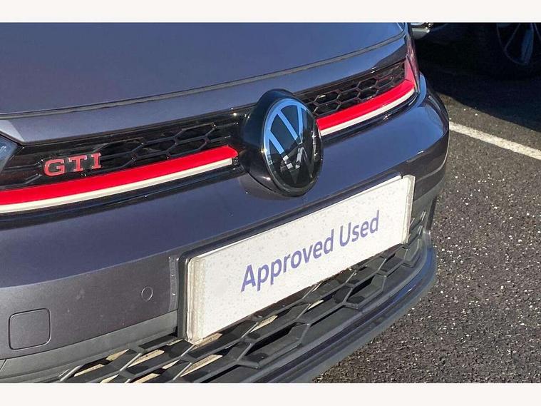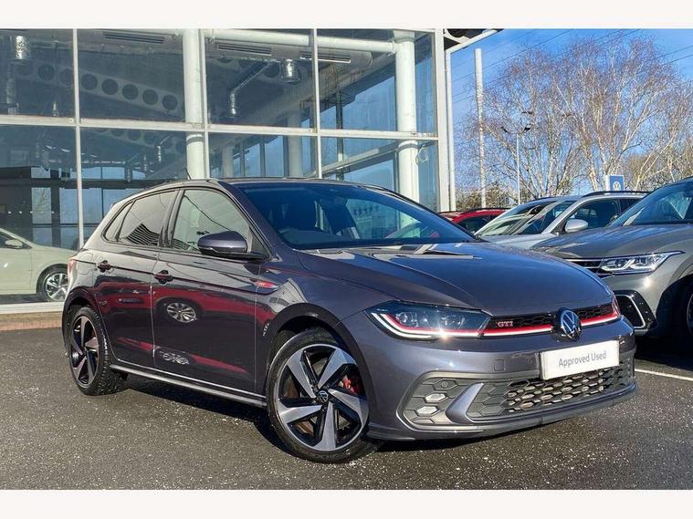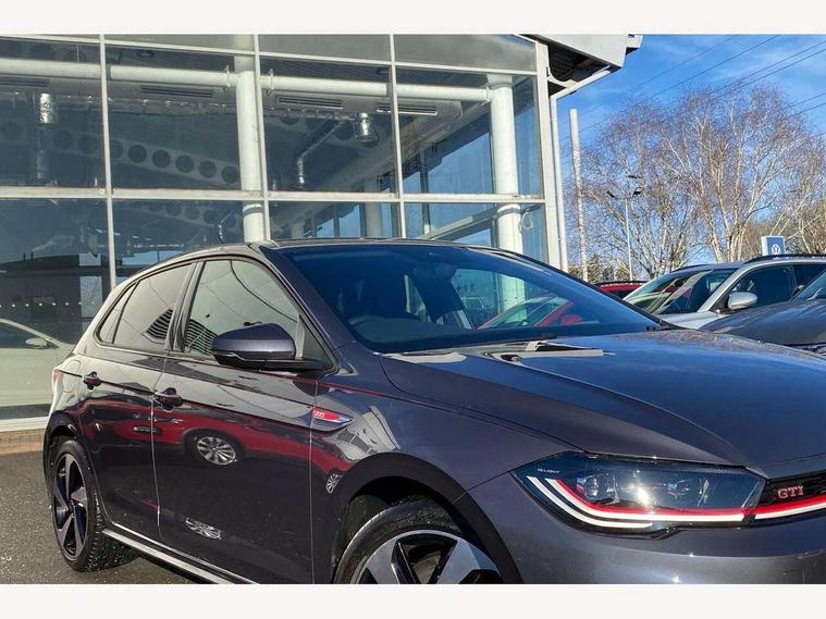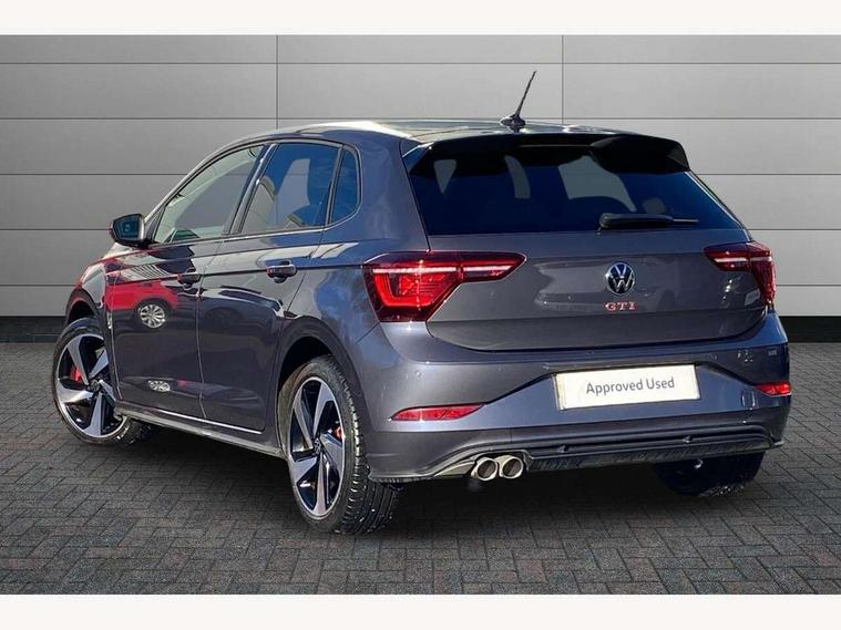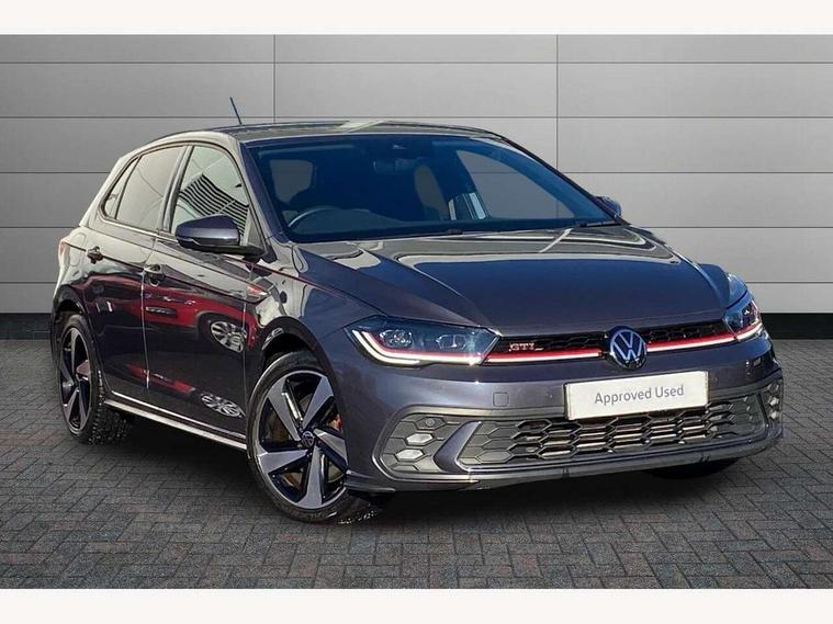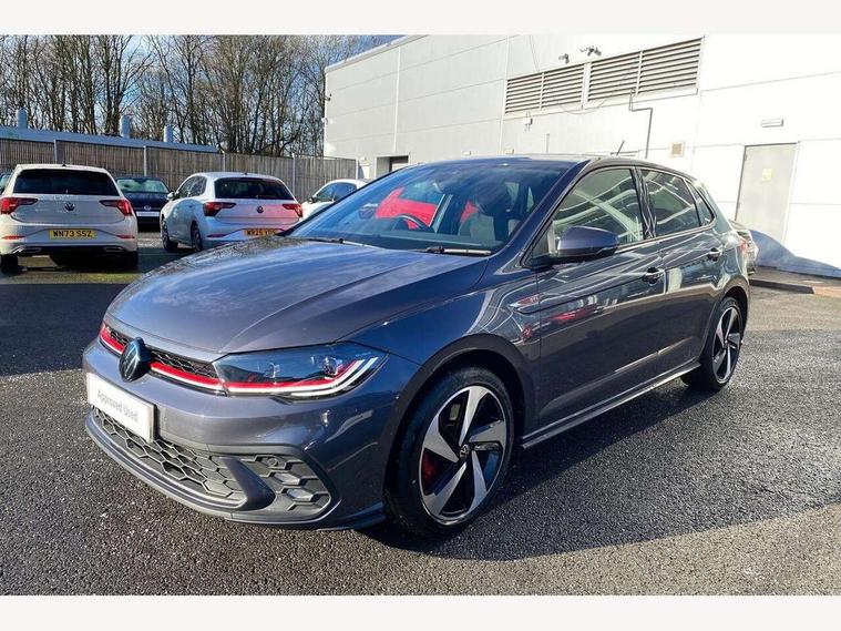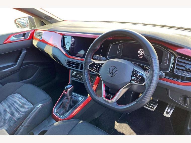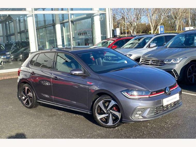 Adaptive cruise control with follow-to-stop and speed limiter, Bluetooth mobile phone interface, Digital Cockpit Pro with 10.25" Display, Driver alert system, Dynamic road sign display, Eco mode, Emergency call service, Power assisted speed sensitive steering, Preparation for We connect and We connect plus, Speedo and rev counter, electronic odometer, trip, service interval display and fuel gauge, Travel Assist - Lane keeping system and traffic jam assist, Travel assist including emergency assist, Trip computer, Warning signal and warning light for front and rear seatbelts not fastened, Washer fluid level indicator, Wireless app connect, Adaptive chassis control, Front wheel drive, Heavy duty rear axle, Rear shock absorpion sports version, Sports select suspension lowered by 15mm, Start-stop system with battery regeneration (recuperation - energy recovery during braking), DAB Digital radio, Diversity antenna for FM reception, Front and rear 6 speakers, Body colour bumpers, Body colour door handles, Electric front windows, Front scuff plates in aluminium with GTI logo, Heat insulating darkened glass in side and rear windows, Heat insulating glass windscreen, Power folding adjustable/heated exterior mirrors and front passenger exterior mirror lowering function, Rain sensor, Rear electric windows, Rear fog light, Rear side wing doors, Rear windscreen washer and wiper with interval delay, Sport bumpers with air intakes with honeycomb structure, Third brake light, Twin chrome exhaust tailpipes, 12V power socket in centre console, 2 USB-C ports in the front, 2 USB-C charging sockets on the center console in the rear, 3 rear head restraints, 60/40 split folding rear seat and rear seat bench not split, Air care climatronic air conditoning system with active combination filter and 2-zone temperature control, Black roof lining, Chrome plated radiator grille inserts, air vent surrounds and light switch surrounds, Door and side trim panel, Driver and front passenger seat height adjustment, Driver/passenger sunvisors with illuminated vanity mirrors, Front + rear carpet mats in recycled material, Front centre armrest, Front footwell illumination, Front seat backrest storage pockets, GTI sports gearshift knob in aluminium leather, Handbrake lever handle in leather, Headliner in recycled material, Isofix child seat preparation easy-fit (for two outer rear seats, and front passenger seat) compatible with I-size, LED interior light with switch off delay and dimmer, 2 reading lights front and rear, Luggage compartment cover, Luggage compartment floor, Luggage compartment lighting, Single front passenger seat, Stainless steel pedals, Standard pedal cluster, Three spoke leather wrapped multifunction sports steering wheel with shifting paddles, IQ LED matrix headlights pack - Polo, Light and sight pack - Polo GTI, 3 point height adj front seatbelts + pretensioners, 3x3 point rear seatbelts, ABS, Driver and front passenger airbag with front passenger airbag deactivation, Drivers and front passengers safety optimised head restraints, ESC (Electronic stability control) + EDL (Electronic Differntial lock) and ASR (Traction control), Extended and predictive pedestrian/ cyclist protection, Front and rear disc brakes with red brake calipers, Front curtain and side airbags with center airbag, Hill hold control, Manual child lock in rear doors, Two tone horn, Tyre pressure loss indicator, Alarm with interior protection, Anti-theft alarm system with interior monitoring, backup horn, and towing protection, Anti-theft wheel bolts, Electronic engine immobiliser, Chrome applications on rotary light, mirror adjustment, window regulator switches, outlet with frame in black, Low rolling resistance tyres,