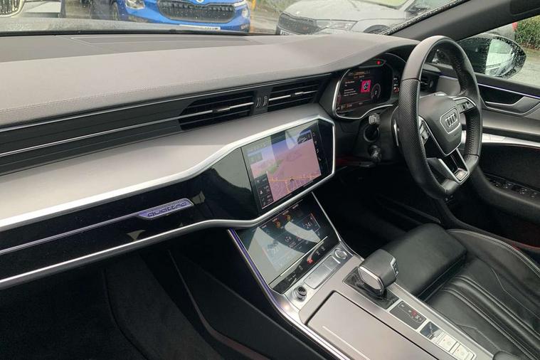 Amazon alexa Integration, Audi connect safety and service (e-call), Audi drive select, Audi parking system plus - acoustic and visual park assist system for front and rear, Audi phone box with wireless charging, Audi smartphone interface, Audi virtual cockpit - 12.3" high resolution LCD digital instrument cluster display, Automatic start/stop system with coasting functionality, Colour driver's information system display, Electric boot lid release, Lane departure warning system, MMI nav plus with MMI touch + 10.1" and 8.6" HD haptic touch screen/3D city models/country information/online map/route info and personal route assist, Operating buttons in black gloss, Power operated tailgate, Rear view camera, Service indicator, Voice control system, 3 pin 10 amp domestic charging cable, 52 litre fuel tank, Hybrid propulsion system, Quattro on demand, Type 2 mode 3 32 amp charging cable, Type 2 socket for AC charging, Audi music interface - 2 USB ports with charger and data functions, Audi sound system with 6 channel amplifier, 180 watt amplifying capacity and 10 loudspeakers including subwoofer, Auxiliary input socket, DAB digital radio module, Audi Beam uses LEDs to project the Audi Sport logo, Coming/leaving home animations in front and rear, Electrically adjustable heated and folding + automatically dimming exterior mirrors with memory function, Frameless auto dimming interior rear view mirror, Front and rear electric windows, Gloss black exterior mirror housings, Gloss black highlights on the exterior area of the Audi Single frame, Gloss black highlights on the front and rear bumpers, Gloss black highlights on the radiator grille, Gloss black highlights on the side windows trim strips, HD Matrix LED headlights with dynamic front and rear indicators, Headlight washers, Heat insulating darkened glass in side and rear windows, High gloss black radiator grille with chrome single frame surround, LED rear lights, Privacy glass with dark tinting on rear side windows and rear window, Rain and light sensors, Retractable rear spoiler, S line air inlet design with inlay in high gloss black, S Line badge on front fender, S line badge on front grille, S Line Black rear diffuser with chrome inlays and rear grille, S Line side skirts, Signature LED daytime running lights, Towbar preparation, Windscreen with acoustic glazing, 3 spoke flat bottom high multi-function leather steering wheel, 4 zone deluxe automatic climate control, 4-way electric lumbar support, 40/20/40 split folding 3 seater rear seat bench with rear centre armrest, Aluminium gear knob, Black cloth headlining, Electrically adjustable front seats - driver seat with memory, Front and rear headrests, Front centre armrest, Heated front seats, Height/reach adjust steering wheel, Illuminated door sill trims with S logo, Illuminated sun visors with vanity mirrors, ISOFIX child seat mounting and Top Tether with front passenger airbag deactivation, Leatherette upper instrument panel and door shoulders, S line front and rear floor mats with contrast stitching, Stainless steel pedals and foot rest, Tool kit and car jack, Valcona leather upholstery with diamond stitching and super sport seats S embossed logo, LED interior ambient lighting pack - A7, Non smoking pack - A7, Storage pack - A7, 3 point seatbelts on all seats, Audi pre-sense front, Driver and passenger airbags, Electromechanical parking brake, Electronic stabilisation control including ABS, ASR and EDL, Extended pedestrian protection measures, Hill hold assist, Red brake callipers, Seatbelt monitoring, Tyre pressure warning light, Warning triangle and first aid kit, Anti theft alarm with tow away protection, Anti-theft wheel bolts and wheel loosening detection, Immobiliser, Keyless Go, Preparation for tracking system, Remote central locking, Tyre repair kit,