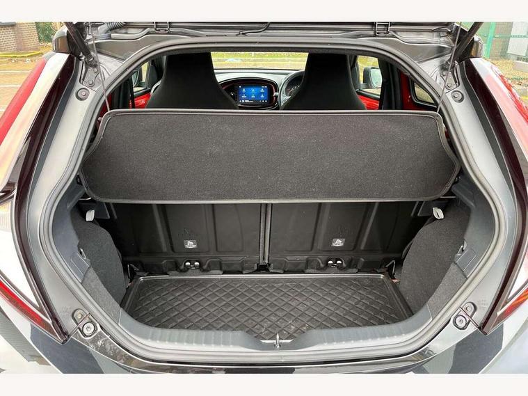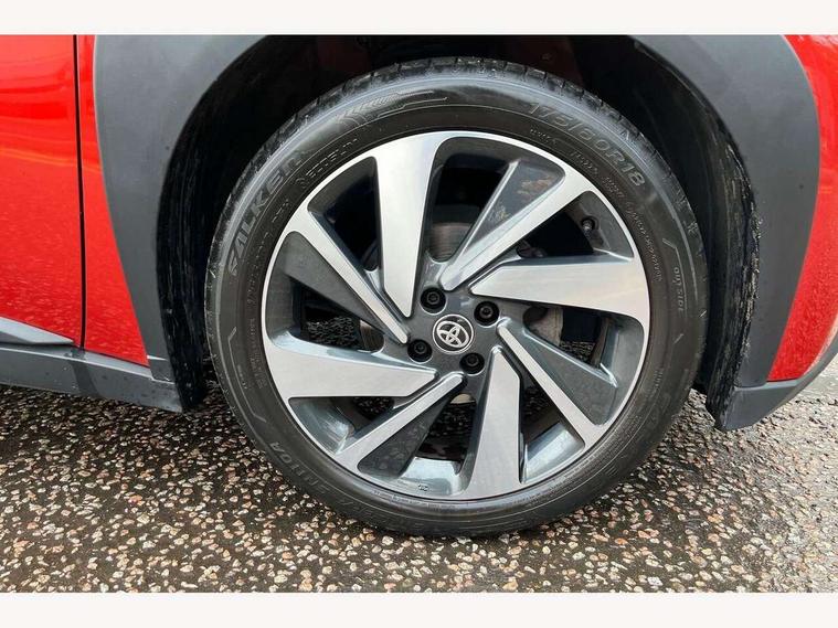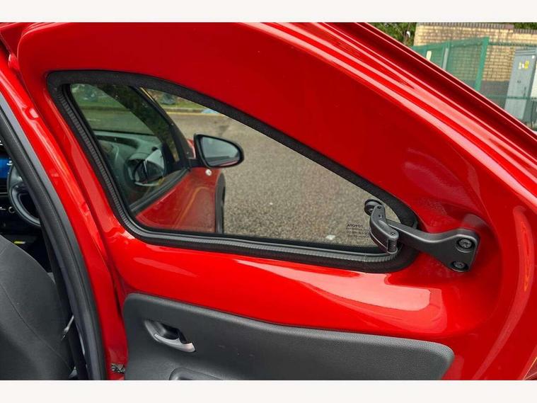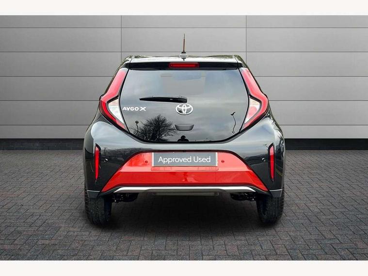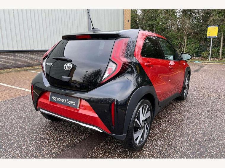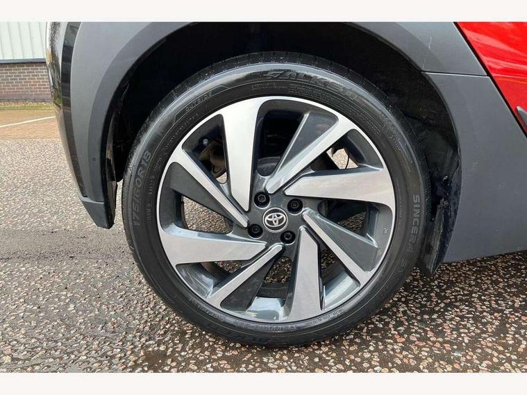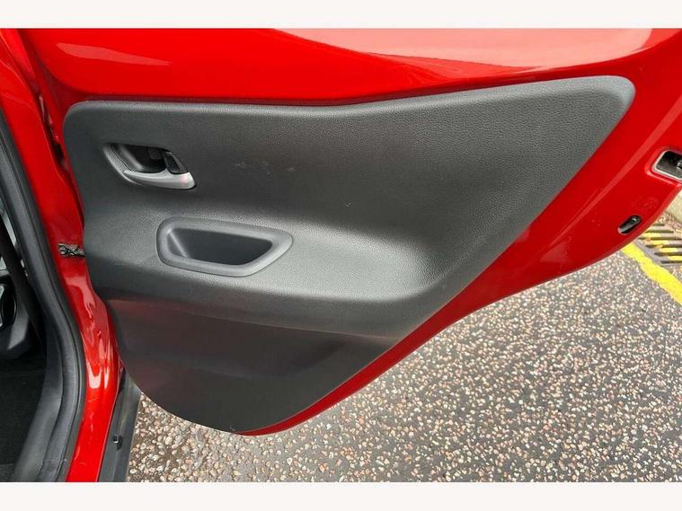 4.2" TFT colour screen, Adjustable speed limiter, Analogue speedometer, Bluetooth connectivity, Digital tachograph, Driver attention alert system, eCall emergency call system, Electric power steering, Front and rear parking sensors with auto brake, Intersection turn assist, Key reminder warning, Noise reduction kit, Pre collision system with emergency steering assist, Remote boot door release on key, Reversing camera with static guide lines, Smart entry and push button start, Speed limit display, Start and stop, Wireless charger, Wireless Smartphone Integration includes Apple CarPlay and Android auto, Vehicle Stability Control (VSC), 4 speakers, 9" HD multimedia display touch screen with Toyota smart connect, DAB digital audio broadcast, USB connector, Auto headlights, Auto wipers, Automatic headlights cut-off, Automatic high beam On/Off switch, Bicycle towing hook, Black fog light surrounds, Black side protection mouldings, Black wheel arch mouldings, Body colour door handles, Body coloured front bumper, Boot door scuff plate, Eclipse black rear bumper, Electric heated door mirrors, Follow me home headlights, Front and rear underruns in silver, Front fog lights, Front power windows, Gloss black door mirrors, Gloss black upper front grille, Headlight cut-off reminder, LED daytime running lights guide, LED front light guide, LED High mounted stop lamp, LED projector headlights, Manual day/night rear view mirror, Manual headlight levelling, Pagoda roof, Power adjustable door mirrors, Power back door, Privacy glass, Rain sensor, Rear combination lights LED bulb type, Rear side wing doors, Rear windscreen defogger, Rear windscreen wiper, Remote hazard lights system, Short antenna, Variable intermittent windscreen wipers, 12v power outlet - front, 2 seat bench in 2nd row, 3 spoke leather steering wheel, 50/50 split folding rear seat, Adhesive roof headlining, Adjustable speed limiter switch on steering wheel, Audio and telephone switches on steering wheel, Auto air conditioning, Black roof lining, Body colour satin anodised insert on steering wheel, Boot light, Centre room light, Chrome interior door handles, Chrome surround on air conditioning buttons, Clean air filter, Console box storage, Floor mats, Front and rear cup holders, Front head rest deco art, Front head restraints, Height adjustable driver seat, Intelligent adaptive cruise control switch on steering wheel, ISOFIX child restraint system on rear seats, Lane departure alert switch on steering wheel, Leather gearshift knob, Light blue ambient lighting in centre console, Manual tilt steering wheel, Manually reclining and sliding driver seat, Manually reclining and sliding front passenger seat, Multimedia switches on steering wheel, Partial synthetic leather upholstery, Pollen filter, Rear door pockets, Rear head restraints, Satin silver insert on gear shift knob, Single compartment glovebox with lights, Single front passenger seat, Soft tonneau cover, Sun visors with mirror on driver and passenger side, Voice recognition switch on steering wheel, Toyota safety sense pack - Aygo X, Anti lock braking system + Electronic brake force distribution, Child safety door lock, Emergency brake light signal (EBS), Hill start assist control (HAC), Passenger airbag on/off switch, Seat belt reminder for front and rear seats, Supplement restraints system (SRS) - 6 airbags, Traction control, Tyre pressure warning system, Immobiliser, Remote power door locks, Black wheel centre caps, Tyre repair kit,