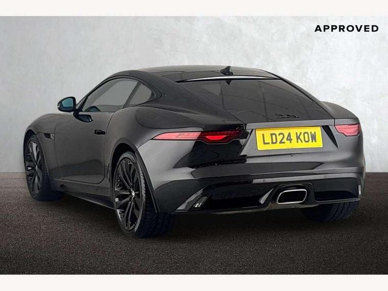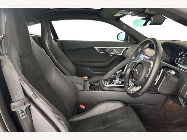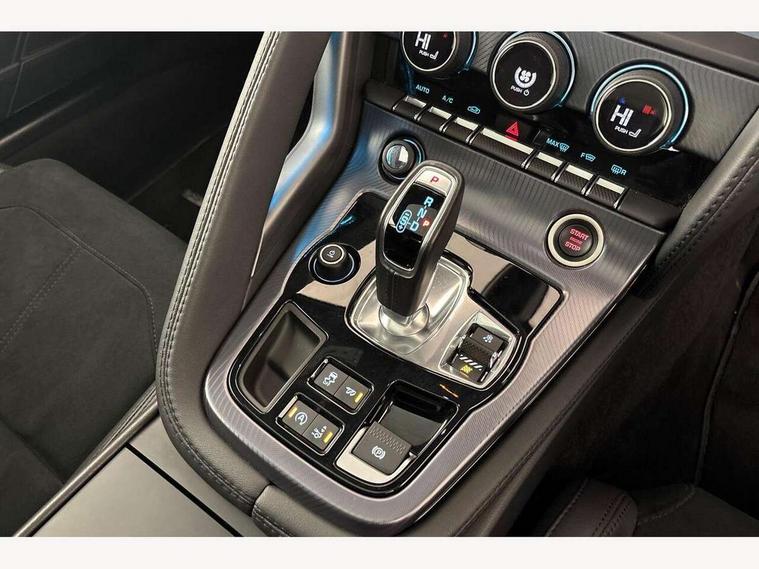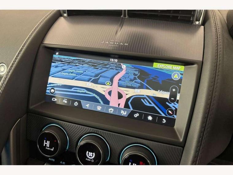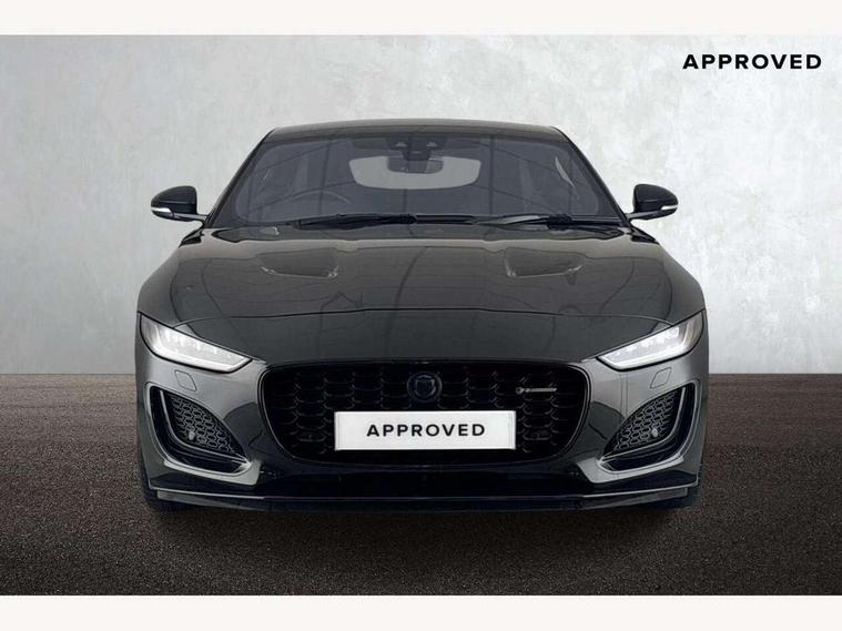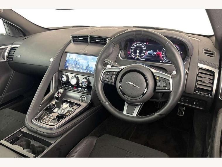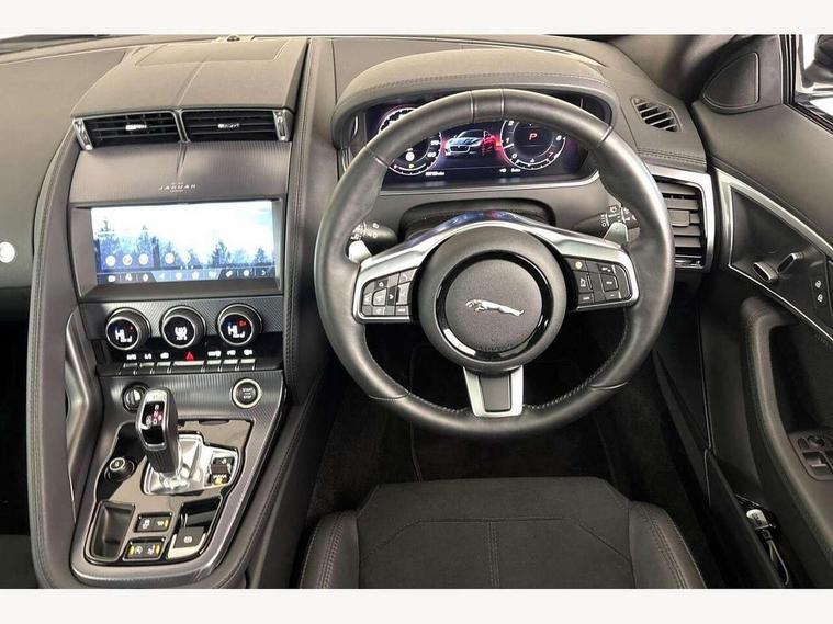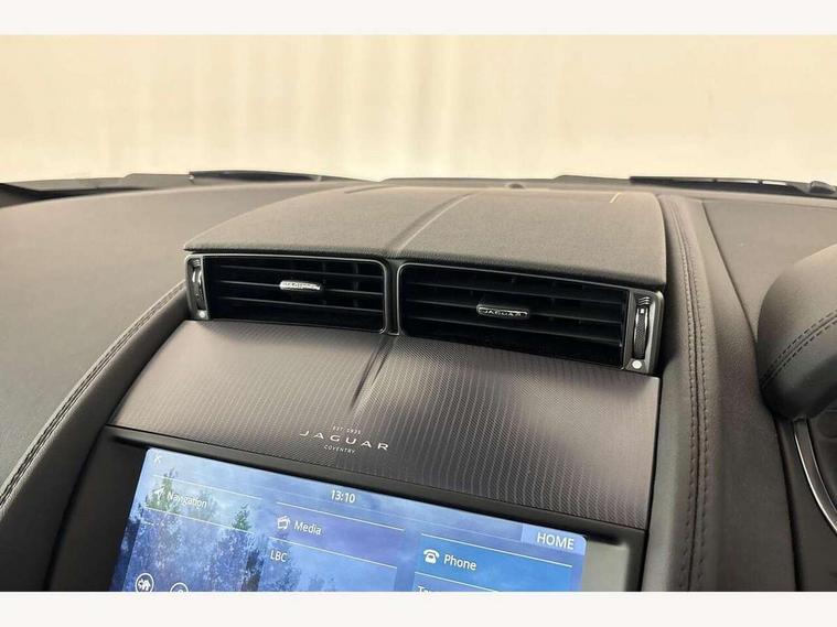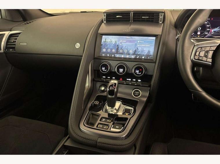 10" touch screen, Android Auto, Apple CarPlay, Bluetooth telephone connectivity, Boot entrapment release lever, Connected navigation pro, Cruise control + speed limiter, Driver condition monitor, E-call, Incontrol pro service, InControl remote premium, Interactive driver display, Lane departure warning system, Lane keep assist, PAS, Push button start, Rear view camera, Remote, Stop/start system, Traffic sign recognition with adaptive speed limiter, Trip computer, Open differential with torque vectoring by braking, Passive suspension, Audio remote control, Digital Audio Broadcast radio-DAB, InControl app, InControl protect, Meridian 770W surround sound system with 12 speakers, Adaptive driving beam, Animated directional indicators, Auto dimming rear view mirror, Automatic headlights, Chrome exhaust finisher, Electric front windows, F-Type badge, Fixed panoramic roof with manual black blind, Flush exterior door handles, Headlight washers, Infra red reflective glass, LED 3rd brake light, LED tail lights, Pixel LED headlights with signature DRL, Privacy glass, Quad outboard mounted exhaust pipes, R Dynamic badge, R-Dynamic exterior body kit, Rain sensing windscreen wipers, Rear boot, Solar attenuating windscreen, Static Cornering lights, Switchable active exhaust, Tinted glass, Bright metal foot pedals, Deployable front air vents, Front centre armrest, Front headrests, Jaguar sense, Low line cubby box, Lumbar support, Overhead console, Pollen filter, Power socket, Rain, Ice and snow mode, Silver gearshift paddles, Single front passenger seat, Twin front cupholders, USB with 12V socket in centre console, Climate pack - F-Type, Online pack - F-Type, Smartphone pack - F-Type, 6 airbags - Driver, front passenger, curtain and side airbags, Anti-lock braking system (ABS), DSC - Dynamic Stability Control, Electronic brake force distribution, Electronic parking brake, Emergency brake assist, Emergency braking, Front/rear seatbelt pre-tensioners, Pedestrian contact sensing and deployable bonnet, Seatbelt reminder for driver and front passenger, Tyre pressure monitoring system, Deadlocks, Drive away door locking, Engine immobiliser, Keyless entry, Locking wheel nuts, Perimetric and volumetric anti theft alarm, Remote central locking, Two stage unlocking, Valet mode, Delta aluminium centre console, Bespoke wheel roundels in gloss & satin black,