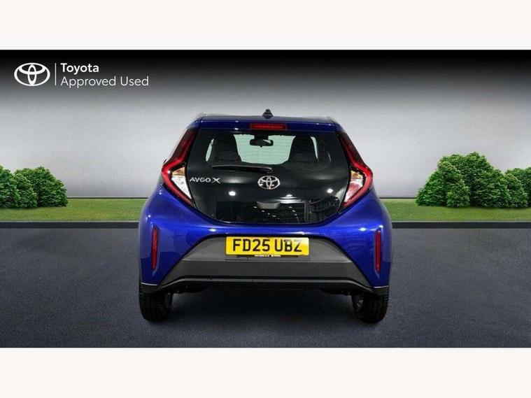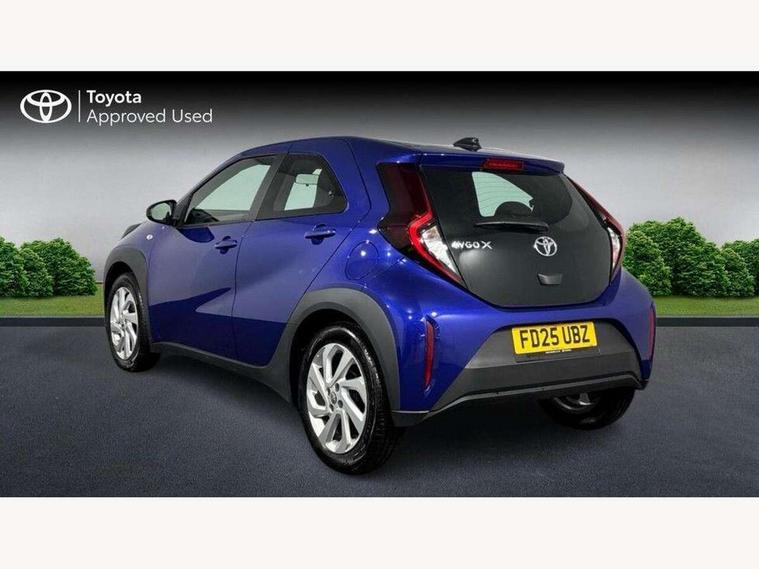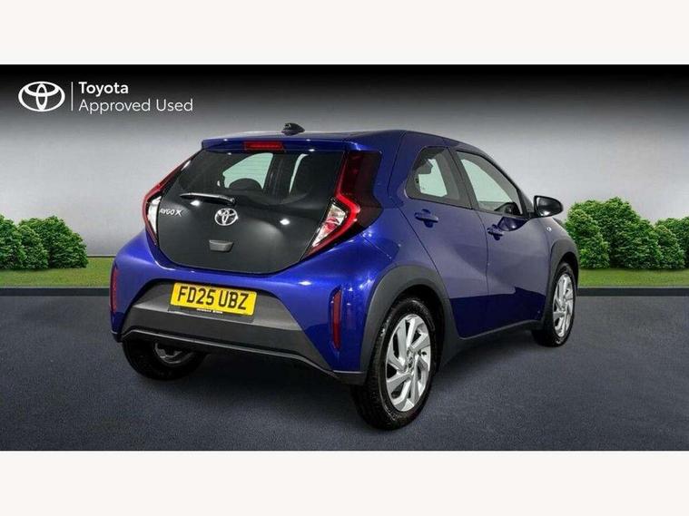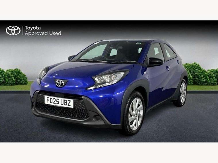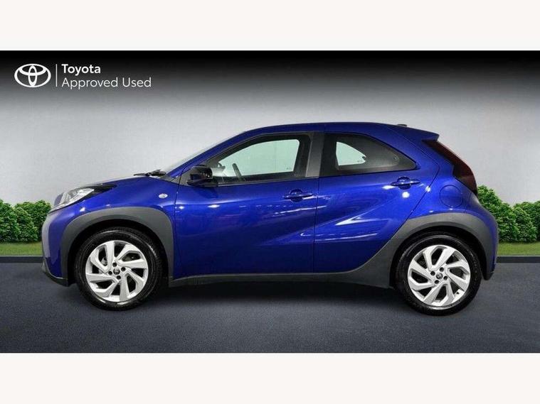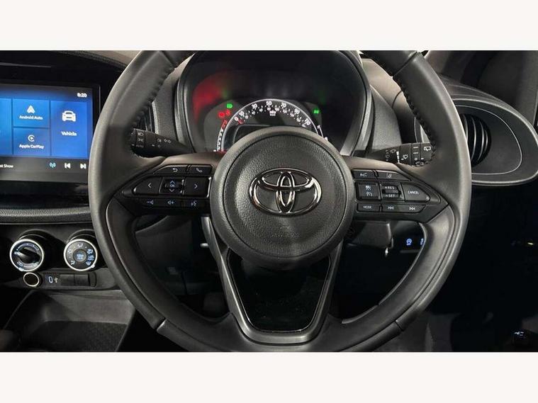 4.2" TFT colour screen, Adjustable speed limiter, Analogue speedometer, Bluetooth connectivity, Digital tachograph, Driver attention alert system, eCall emergency call system, ECO-driving indicator, Electric power steering, Intersection turn assist, Key reminder warning, Noise reduction kit, Pre collision system with emergency steering assist, Reversing camera with static guide lines, Smart phone integration with Apple car play/Android Auto, Speed limit display, Start and stop, Vehicle Stability Control (VSC), 4 speakers, 9" HD multimedia display touch screen with Toyota smart connect, DAB digital audio broadcast, USB connector, Auto headlights, Automatic headlights cut-off, Bicycle towing hook, Black lower front grille, Black rear bumper, Black side protection mouldings, Black upper front grille, Black wheel arch mouldings, Body colour door handles, Body coloured front bumper, Boot door scuff plate, Electric heated door mirrors, Follow me home headlights, Front power windows, Gloss black door mirrors, Headlight cut-off reminder, LED daytime running lights, LED front light guide, LED High mounted stop lamp, Manual day/night rear view mirror, Manual headlight levelling, Pagoda roof, Power adjustable door mirrors, Power back door, Projector halogen headlights, Rain sensor, Rear combination lights LED bulb type, Rear side wing doors, Rear windscreen defogger, Rear windscreen wiper, Short antenna, Variable intermittent windscreen wipers, 12v power outlet - front, 2 seat bench in 2nd row, 3 spoke leather steering wheel, 50/50 split folding rear seat, Adhesive roof headlining, Adjustable speed limiter switch on steering wheel, Audio and telephone switches on steering wheel, Black insert on steering wheel, Boot light, Centre room light, Chrome interior door handles, Chrome surround on air conditioning buttons, Clean air filter, Fabric upholstery, Floor mats, Front and rear cup holders, Front head rest deco art, Front head restraints, Gear shift indicator, Height adjustable driver seat, Intelligent adaptive cruise control switch on steering wheel, ISOFIX child restraint system on rear seats, Lane departure alert switch on steering wheel, Leather gearshift knob, Light grey roof lining, Manual air conditioning, Manual tilt steering wheel, Manually reclining and sliding driver seat, Manually reclining and sliding front passenger seat, Multimedia switches on steering wheel, Pollen filter, Rear door pockets, Rear head restraints, Resin console box storage, Satin silver insert on gear shift knob, Silver stitching on gear shift knob, Single compartment glovebox with lights, Single front passenger seat, Soft tonneau cover, Sun visors with mirror on driver and passenger side, Voice recognition switch on steering wheel, Toyota safety sense pack - Aygo X, Anti lock braking system + Electronic brake force distribution, Child safety door lock, Emergency brake light signal (EBS), Hill start assist control (HAC), Passenger airbag on/off switch, Seat belt reminder for front and rear seats, Supplement restraints system (SRS) - 6 airbags, Traction control, Tyre pressure warning system, Immobiliser, Remote power door locks, Black air vent surround, Black wheel centre caps, Tyre repair kit,