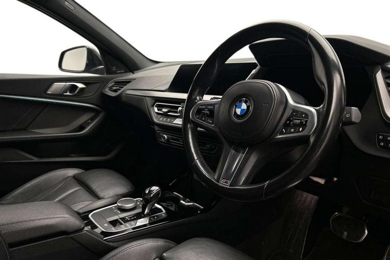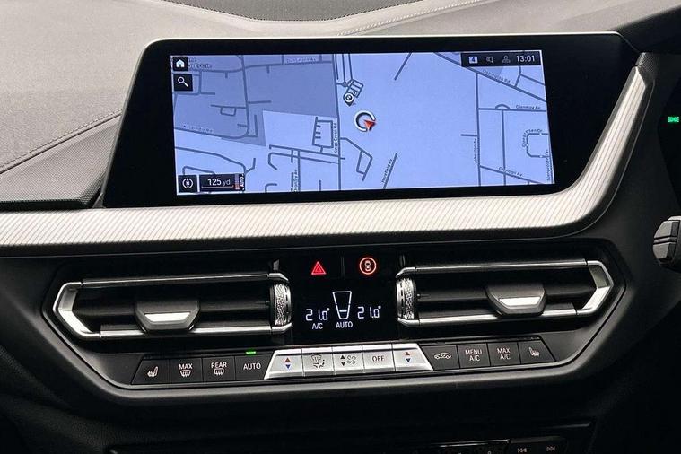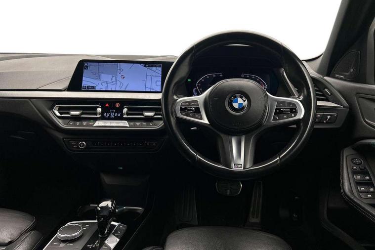 Active guard plus, Attentiveness assist, BMW Online services, BMW Teleservices, Check Control warning system for monitoring of lights and door/luggage compartment open warning, Connected eDrive Services, Eco pro mode, Integrated owners handbook, Oil sensor for level and grade, On board computer, Optimum shift indicator, Personal Profile, Pull away assistant, Speed limiter, Aluminium lightweight construction, Anti roll bar front and rear, Balancer shaft, Double VANOS, Drive Performance Control, Electronic differential lock, High precision injection, M sport suspension, Petrol Particulate Filter, VALVETRONIC engine management, Bluetooth audio streaming, DAB Digital radio, Auto dimming rear view mirror, Automatic headlight beam throw control, Automatic windscreen wipers and automatic headlight, Body colour door handles, Body colour mirror caps, Chrome 'M' logo side designation, Chrome exhaust tailpipe in single, round (Exhaust tailpipe, stainless steel - single, round), Chrome kidney grille frame with Satin Aluminium struts, Direction indicator side lights in exterior mirrors, Electric folding and anti dazzle exterior mirrors, Fading support, Follow me home headlights, Front and rear bumper system with replaceable deformation elements, Front and rear electric windows with open and close fingertip control, anti trap facility and comfort closing, Front door sill finishers in black plastic with M designation in metallic look, Green tinted heat protection glazing, Heated, electrically adjustable exterior mirror aspheric on driver side, convex on passenger side, High gloss shadowline window frame, Recess cover mirror frames and B/C pillar embelisher trim, High level third brake light, LED daytime running lights, LED eyebrow turn indicators, LED front fog lights, Lightweight engineering, Matt black air guide grilles, Model designation on right side of tailgate, Nearside reverse light in rear light cluster, Preparation for high beam assistant, Rain sensor including auto headlights activation, Rear fog lights, Rear window wiper, Shark fin antenna, Visible VIN plate, Welcome lighting, 12V power socket in centre console, 3 rear seat head restraints, 3 spoke M sports design leather steering wheel finished in nappa leather with specific M badge, Anthracite headlining, Anthracite Velour floor mats, Child seat ISOFIX attachment for two outer rear seats and front passenger seat with anchorage points, Conditioned based service, Dakota leather upholstery with perforation and contrast stitching, Driver and front passenger seat heating, Folding rear clothes hook, Four grab handles integrated in roof lining, Front and rear door pockets, Front and rear door pockets with bottle holders, Front and rear side armrest integrated into door trim, Front Armrest foldable with integrated storage compartment, Front sports seats with electric side bolster adjustment, Glove compartment, Height adjustable front head restraints, Manual adjust steering wheel, Multi-function controls for steering wheel, Storage compartment in centre console, Sun visors with vanity mirrors and insert tab, Two zone automatic air conditioning, Additional interior lighting pack - 1 Series, Connected pack professional - 1 Series, Extended storage pack - 1 Series, Interior lights pack - 1 Series, Luggage compartment pack - 1 Series, M Sport exterior styling aerodynamics pack - 1 Series, 2 tone horn, 3 point seatbelts on all seats, front pyrotechnic belt tensioners, stopper and belt force limiters, rear coded belt buckles, Airbags - front driver/passenger, front & rear curtain, front side, Anti lock braking system (ABS) with brake assist, BMW emergency call, Brake drying, Braking readiness, Crash sensor activating central locking release, hazard warning lights, fuel cut off, interior lighting + activation of safety battery terminal clamp, Driver and front passenger seat belt security check, Dynamic stability control + (DSC+), Dynamic Traction Control - DTC, Electrically operated hand brake, Front and rear disc brakes, Front passenger manual airbag deactivation, Seatbelt warning, Side impact protection, Tyre pressure monitoring system, Warning triangle and first aid kit, Automatic drive away locking facility, Central locking switch for all doors, fuel filler cap and luggage compartment, Deadlocking function system to all doors, Locking wheel bolts, Remote control with integrated key with High-gloss Black inlay and M designation and 1 button for open/ close lock, window, open luggage compartment, Start/stop button with comfort go keyless engine start and auto start stop deactivation button, Thatcham Cat.1 alarm and immobiliser, Contrast stitching on instrument panel, Reduced rolling resistance tyres,