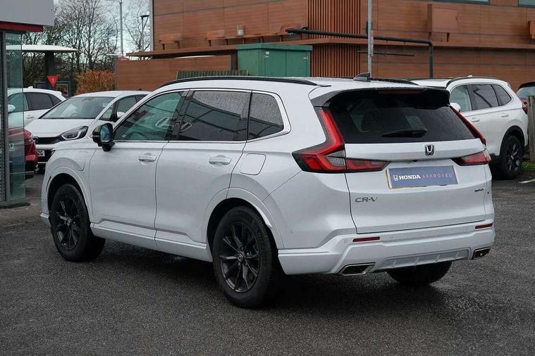 10.2" Multi information display, 4 x front 4 x rear 4 x side parking sensors, Active lane change assist, Adaptive cruise control with Cornering speed assist, Adjustable speed limiter, Agile handling assist, BLIS (Blind Spot Information System) with Cross Traffic Monitor, Bluetooth hands free telephone connection, Crossing traffic warning front, Drive Mode (EV, Econ, Sport, Normal, Snow, Tow), Driver attention monitoring system, E-call, eCall emergency call system, Electric power steering, Emergency stop signalling system, Forward collision warning, Handfree power tailgate with kick sensor and walk away close, Head up Display, HEV mode, Honda 360 sensing, Honda CONNECT navigation with My Honda+ 9" touchscreen, AM/FM/DAB, Apple Carplay and Android Auto, live traffic info, Honda parking pilot, Intelligent speed limiter, Lane change collision mitigation, Lane departure warning system, Lane keep assist system, Lane watch, Lead car departure notification system, Low speed following, Power meter, Road departure mitigation, Traffic jam assist, Traffic sign recognition, Wireless apple carplay, Wireless charging, Adaptive performance damper, Vehicle stability assist, 12 speakers, 1X USB (A/2.5A) and 1x Charger (C/3A) on Front, Bose premium sound system, Centre speakers, DAB+ radio, Dashboard centre speaker, Front tweeters, Rear USB 2x Charger (C/3A), Steering wheel mounted controls, Subwoofer, Active cornering lights, Adaptive driving beam, Auto dimming rear view mirror, Auto headlight adjuster, Auto headlights, Auto wipers, Black door mirror caps, Black paint + exculsive grille, Black Shark-fin antenna, Body colour bumpers, Body colour door handles, Body colour plus black colour roof spoiler, Electrically adjustable and heated door mirrors, Electrically folding door mirrors, Exhaust pipe finisher, Exterior mirror tilt for reverse, Front and rear electric windows, Front LED Indicator lights, Front turn type led with sequential, Headlight auto on/off timer, High gloss black window garnish, LED 3rd brake light, LED daytime running lights, LED front fog lights, LED Headlights, LED rear lights, Multi view camera system in door mirrors, Panoramic opening glass sunroof, Privacy glass, Rain sensor, Rear side wing doors, Rear wiper, Roof rails, Trailer stability assist, Welcome home function, 3 seat bench in 2nd row, 4 way driver lumbar support, 4 way electrically adjustable passenger seat without height adjust, 60/40 split folding rear seat, 8 way electrically adjustable drivers seat + mirror memory, Accessory sockets in Front & Trunk, Air conditioning - Rear vent, Ambient light in roof, Cargo net hooks, Courtesy lights, Dark roof lining, Driver and front passenger seat armrests, Driver/passenger front seatback pockets, Driver/passenger sunvisors and vanity mirrors, Driver/passenger sunvisors with illuminated vanity mirrors, Dual zone automatic climate control, Film layered honeycomb metal interior panels, Footwell ambient interior light front and rear, Front and rear ambient light (door handle&door line) and front cup holder, Front centre armrest, Front map lights, Front ventilated seats, Genuine leather steering wheel, Heated front seats, Heated rear seats, Heated steering wheel, Hybrid emblem, I-Size ISO Fix Points, Instrument panel with garnish wood film, Leather upholstery, Luggage floor box, Meter illumination, Platinum chrome interior door handles, Rear centre armrest, Rear headrests, Rear reading lights, Reclining rear seats, Single front passenger seat, Sport pedals, Sunglasses holder with mirror, Synthetic headrest, Tilt/telescopic adjustable steering wheel, Tonneau cover, Trunk light, Exclusive styling with sport paint pack - CR-V, 5 x 3 point seatbelts, ABS/EBD, Anti-whiplash front headrests, Brake assist function, Collision mitigation braking system, Deflation detection system, Driver airbag, Driver SRS airbag (single stage inflation), Electronic parking brake with auto hold, Front and rear collision mitigation throttle control, Front and rear curtain airbags, Front and rear seat belts with emergency locking retractor (ELR), Front centre airbag, Front passenger airbag, Front side airbags, Hill descent control, Hill start assist, Knee airbags (DR) and (AS), Low speed brake system, Manual child lock in rear doors, Paddle deceleration control, Passenger SRS airbag with cut off switch, Rear side airbags, Honda super locks, Immobiliser, Mirrors and windows key fob operation, Remote central locking with 2 key fobs, Security alarm, Selectable door unlock, Smart entry + Smart start, Tilt sensors, Ultrasonic security sensor, Flat tyre solution temper tyre/repair kit,
