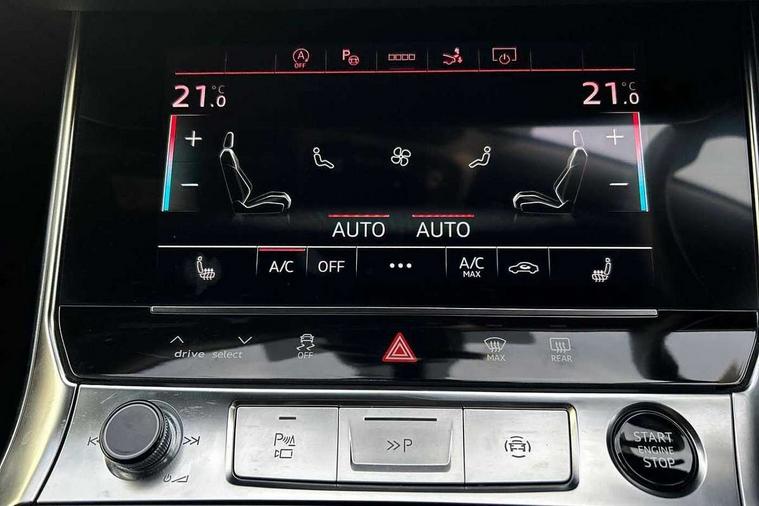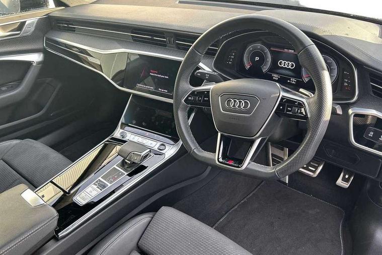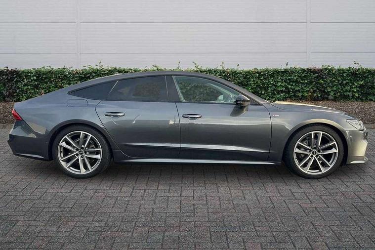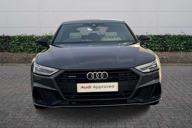Audi connect safety and service (e-call), Audi connect with Amazon Alexa Integration, Audi drive select, Audi parking system plus - acoustic and visual park assist system for front and rear, Audi smartphone interface, Audi virtual cockpit - 12.3" high resolution LCD digital instrument cluster display, Automatic start/stop system with coasting functionality, Bluetooth interface, Colour driver's information system display, Electric boot lid release, Lane departure warning system, MMI nav plus with MMI touch + 10.1" and 8.6" HD haptic touch screen/3D city models/country information/online map/route info and personal route assist, Operating buttons in black, glass look with haptic feedback, Power operated tailgate, Progressive steering, Rear view camera, Service indicator, Voice control system, 24 litre AdBlue tank, Diesel particulate filter, Sports suspension, Audi music interface - 2 USB ports with charger and data functions, Audi sound system with 6 channel amplifier, 180 watt amplifying capacity and 10 loudspeakers including subwoofer, Auxiliary input socket, DAB digital radio module, Coming/leaving home animations in front and rear, Frameless auto dimming interior rear view mirror, Front and rear electric windows, Gloss black highlights on the exterior area of the Audi Single frame, Gloss black highlights on the front and rear bumpers, Gloss black highlights on the radiator grille, Gloss black highlights on the side windows trim strips, HD Matrix LED headlights with dynamic front and rear indicators, Headlight washers, Heat insulating glass in side and rear windows, Rain and light sensors, Rear side wing doors, Rear wiper, Retractable rear spoiler, S line air inlet design with inlay in high gloss black, S Line badge on front fender, S line badge on front grille, S Line Black rear diffuser with chrome inlays and rear grille, S Line side skirts, Signature LED daytime running lights, Third brake light, Towbar preparation, Windscreen with heat-insulating glass, 2 zone deluxe electronic climate control, 4-way electric lumbar support, 40/20/40 split folding 3 seater rear seat bench with rear centre armrest, Black cloth headlining, Electrically adjustable front seats - driver seat with memory, Front and rear headrests, Front centre armrest, Heated front seats, Height/reach adjust steering wheel, Illuminated door sill trims with S logo, Illuminated sun visors with vanity mirrors, ISOFIX child seat mounting and top tether in front and outer rear seats with front passenger airbag deactivation, Leather gear knob, Leatherette upper instrument panel and door shoulders, Luggage compartment floor, S line front and rear floor mats with contrast stitching, Single front passenger seat, Stainless steel pedals and foot rest, Tool kit and car jack, LED interior ambient lighting pack - A7, Non smoking pack - A7, 3 point seatbelts on all seats, Audi pre-sense front, Driver and passenger airbags, Electromechanical parking brake, Electronic stabilisation control including ABS, ASR and EDL, Extended pedestrian protection measures, Hill hold assist, Manual child lock in rear doors, Seatbelt monitoring, Tyre pressure warning light, Warning triangle and first aid kit, Anti theft alarm with tow away protection, Anti-theft wheel bolts and wheel loosening detection, Immobiliser, Keyless Go, Preparation for tracking system, Remote central locking, Carbon twill inlays, 20" 5 double arm design Audi sport cast aluminium high sheen matt grey look alloy wheels,