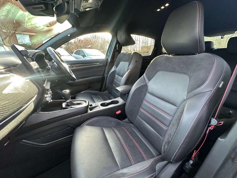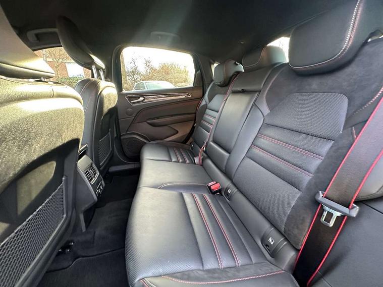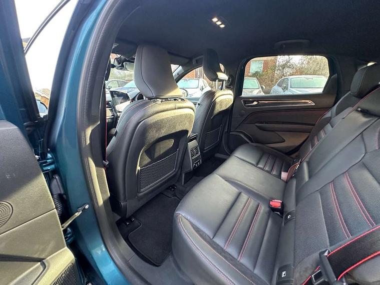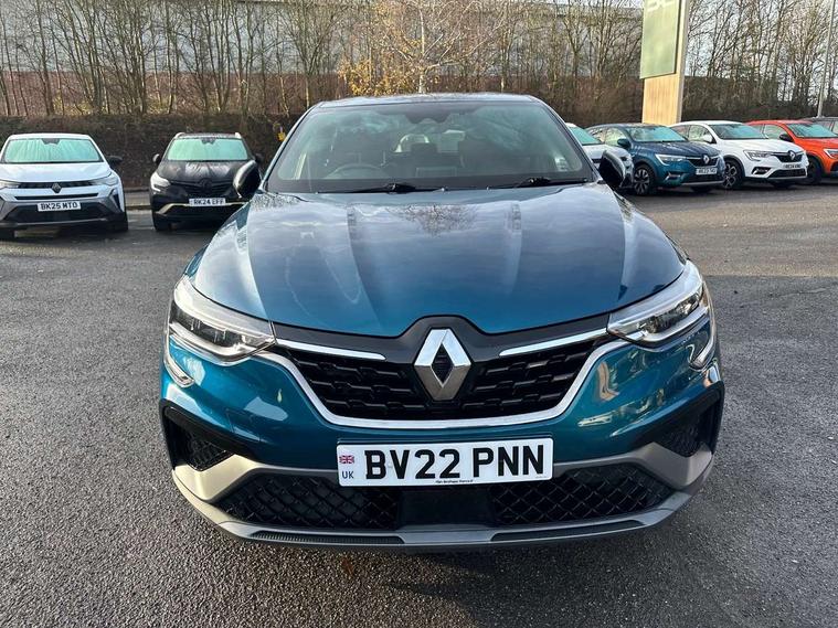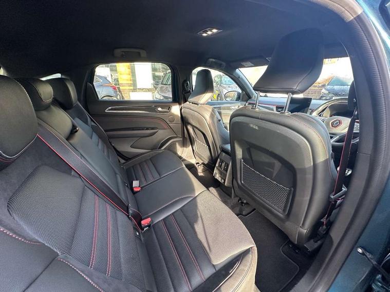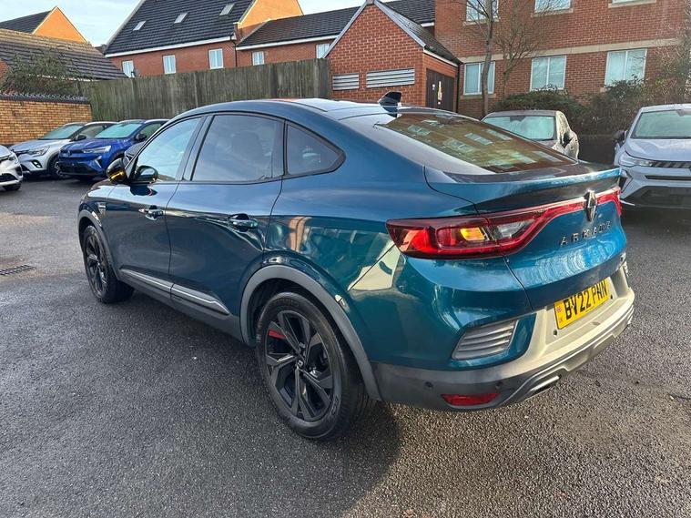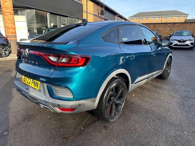 7" TFT Driver information display, Blind spot warning, Bluetooth system, EASY LINK 9.3" portrait touchscreen with navigation, Google search and traffic information, eCall emergency call system, Eco mode, EV button to activate pure mode, Front and rear parking sensors, Gear change indicator, Lane departure warning, Lane keep assist, Multi-sense - 3 driving modes and 8 ambient lighting, Rear cross traffic alert, Rear view camera, Renault automatic emergency assist, Smartphone integration compatible with Apple CarPlay and Android Auto, Traffic sign recognition with over speed prevention, Trip computer, Variable assistance electric power steering, Wireless phone charger, DAB radio, USB port, 3rd brake light, Auto dimming rear view mirror, Automatic headlights, Automatic high / low beam, Automatic windscreen wipers with rain sensor, Black side door protection with gun metal insert, Body coloured bumpers, C-shaped LED front signature lighting, Chrome decopart on wing (fender molding) with R.S. Line badge, Double chromed exhaust tailpipes elements, Extra tinted rear windows and tailgate, Frameless rear view mirror, Front and rear electric windows, Front bumper with F1 blade and honeycomb front grille, Front driver window with one touch facility and anti-pinch function, Front grille with chrome on upper part, Full LED headlights, Glossy black door mirror and lower window lining, Gun Metal front and rear skid plates, Heated rear window, R.S. Line badges on front wing and hatch door, Rain sensor, Rear windscreen wiper, Shiny black shark fin antenna, Side mirrors adjustable electrically, electrically foldable, with defrosting and temperature sensor, automatically foldable at vehicle closure, 3 seat bench in 2nd row, 60:40 split and fixed base rear seats, Aluminium pedals, Automatic climate control with combined filter, humidity sensor and AQS, Black interior roof lining, Carbon style dashboard, Central console with storage, Driver's seat height adjustment, Electrically adjustable front seats, Front and rear head restraints, Height and reach adjustable steering wheel, ISOFIX child seat fixing points on rear outermost seats, LED front and rear roof lights, Passenger seat height adjuster, R.S. line black suede-leather upholstery with red/grey stiching, R.S. Line perforated leather steering wheel with red/black harmony and R.S. Line badge, Rear air vents, Red inserts on air vents, Single front passenger seat, Parking Pack - Hands-free parking & flank protection - Arkana, Winter pack - Arkana, 3x3 point rear seat belts, ABS+EBA, Active emergency braking system, B Brake Mode - One pedal driving with increased regenerative braking, Distance warning alert, Driver airbag, Driver and passenger front and side airbag deactivation, Driver and passenger side airbags, Driver height adjustable seat belt, Electronic parking brake with auto hold, ESC (Electronic Stability Control), Front and rear no seatbelt warning sound, Front curtain airbags, Front head airbags, Hill start assist, Passenger airbag, Tyre pressure warning light, Anti drill door locks and locking fuel cap, Central door locking, Deadlocking system, Hands free keycard with Keyless access and start, RAID (Renault Anti-Intruder Device) automatic door locking, Rear side wing door and window child locking function (front driver door control panel), Superlocking, Thatcham alarm, 18" Silverstone diamond alloy wheels with red inserts,