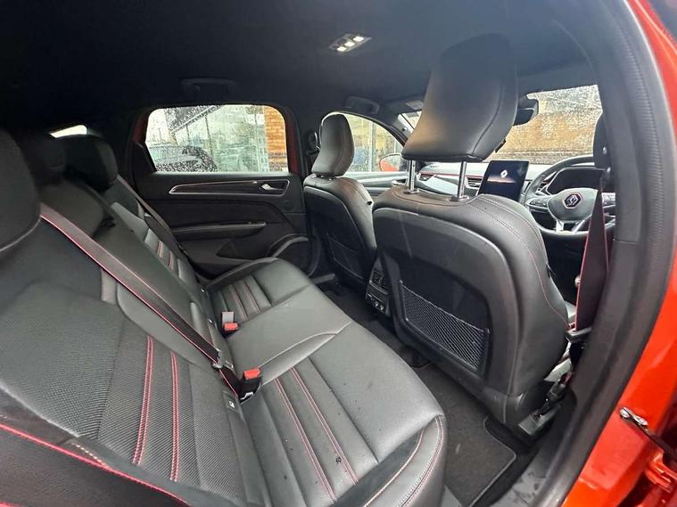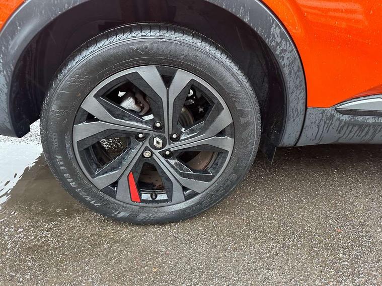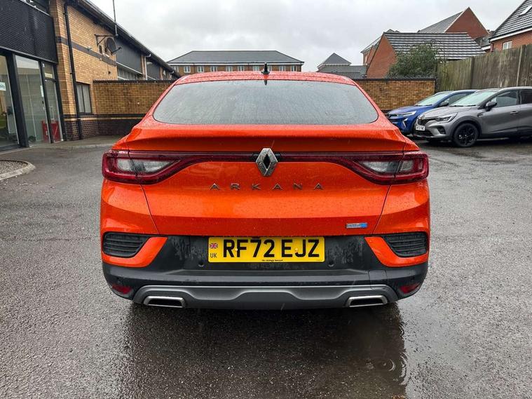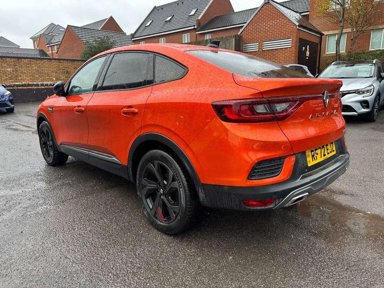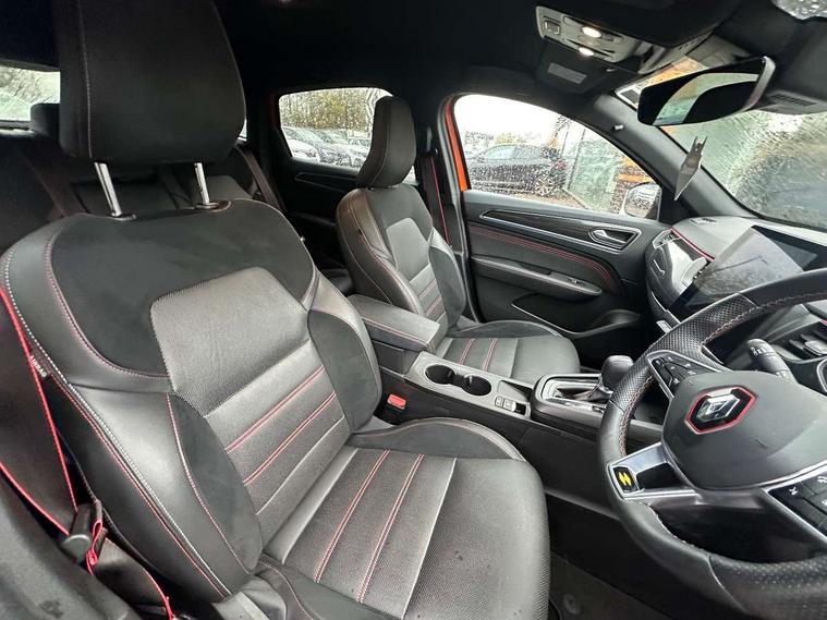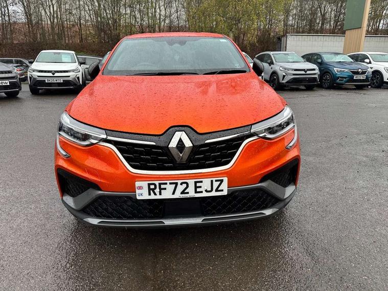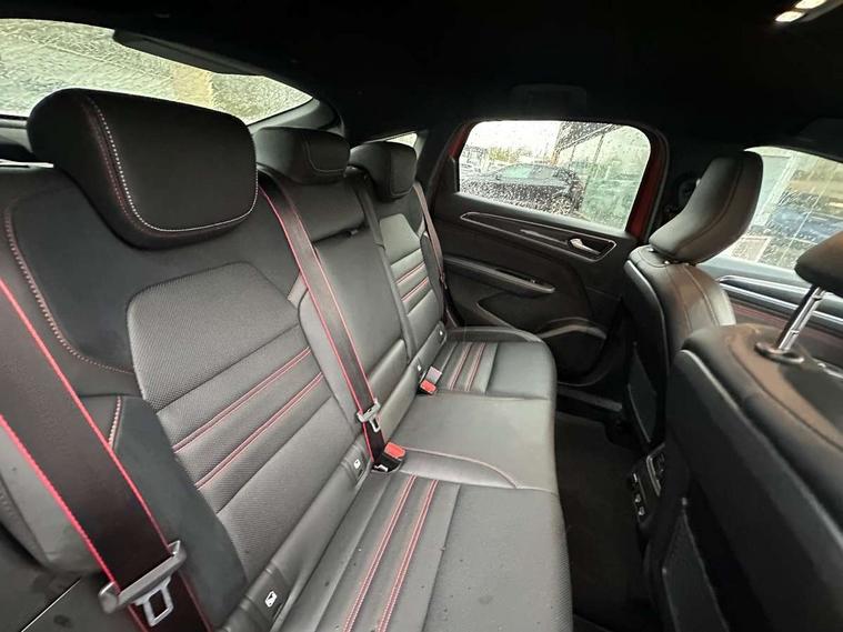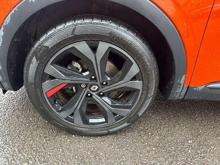 7" TFT Driver information display, Blind spot warning, Bluetooth system, EASY LINK 9.3" portrait touchscreen with navigation, Google search and traffic information, eCall emergency call system, Eco mode, EV button to activate pure mode, Front and rear parking sensors, Gear change indicator, Lane departure warning, Lane keep assist, Multi-sense - 3 driving modes and 8 ambient lighting, Rear cross traffic alert, Rear view camera, Renault automatic emergency assist, Smartphone integration compatible with Apple CarPlay and Android Auto, Traffic sign recognition with over speed prevention, Trip computer, Variable assistance electric power steering, Wireless phone charger, DAB radio, USB port, 3rd brake light, Auto dimming rear view mirror, Automatic headlights, Automatic high / low beam, Automatic windscreen wipers with rain sensor, Black side door protection with gun metal insert, Body coloured bumpers, C-shaped LED front signature lighting, Chrome decopart on wing (fender molding) with R.S. Line badge, Double chromed exhaust tailpipes elements, Extra tinted rear windows and tailgate, Frameless rear view mirror, Front and rear electric windows, Front bumper with F1 blade and honeycomb front grille, Front driver window with one touch facility and anti-pinch function, Front grille with chrome on upper part, Full LED headlights, Glossy black door mirror and lower window lining, Gun Metal front and rear skid plates, Heated rear window, R.S. Line badges on front wing and hatch door, Rain sensor, Rear windscreen wiper, Shiny black shark fin antenna, Side mirrors adjustable electrically, electrically foldable, with defrosting and temperature sensor, automatically foldable at vehicle closure, 3 seat bench in 2nd row, 60:40 split and fixed base rear seats, Aluminium pedals, Automatic climate control with combined filter, humidity sensor and AQS, Black interior roof lining, Carbon style dashboard, Central console with storage, Driver's seat height adjustment, Electrically adjustable front seats, Front and rear head restraints, Height and reach adjustable steering wheel, ISOFIX child seat fixing points on rear outermost seats, LED front and rear roof lights, Passenger seat height adjuster, R.S. line black suede-leather upholstery with red/grey stiching, R.S. Line perforated leather steering wheel with red/black harmony and R.S. Line badge, Rear air vents, Red inserts on air vents, Single front passenger seat, Parking Pack - Hands-free parking & flank protection - Arkana, Winter pack - Arkana, 3x3 point rear seat belts, ABS+EBA, Active emergency braking system, B Brake Mode - One pedal driving with increased regenerative braking, Distance warning alert, Driver airbag, Driver and passenger front and side airbag deactivation, Driver and passenger side airbags, Driver height adjustable seat belt, Electronic parking brake with auto hold, ESC (Electronic Stability Control), Front and rear no seatbelt warning sound, Front curtain airbags, Front head airbags, Hill start assist, Passenger airbag, Tyre pressure warning light, Anti drill door locks and locking fuel cap, Central door locking, Deadlocking system, Hands free keycard with Keyless access and start, RAID (Renault Anti-Intruder Device) automatic door locking, Rear side wing door and window child locking function (front driver door control panel), Superlocking, Thatcham alarm, 18" Silverstone diamond alloy wheels with red inserts,