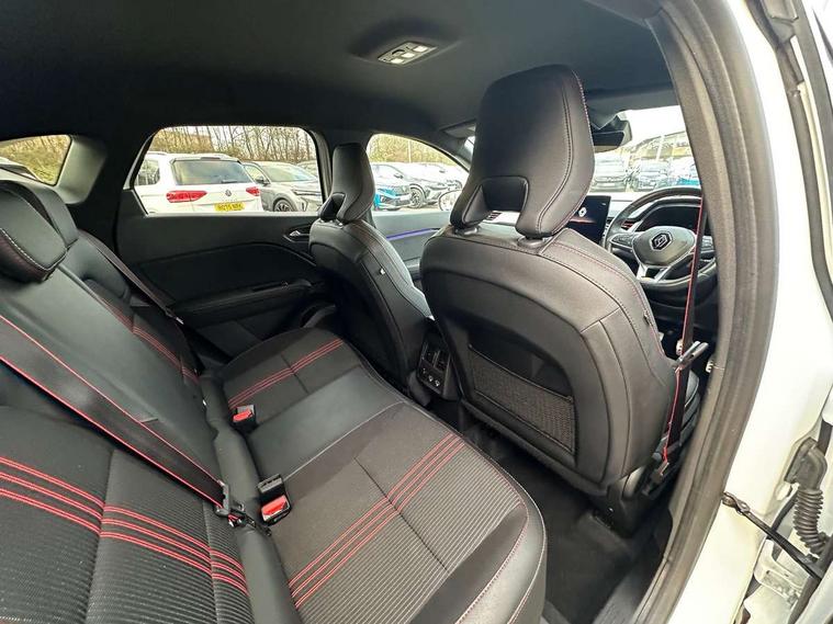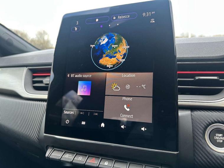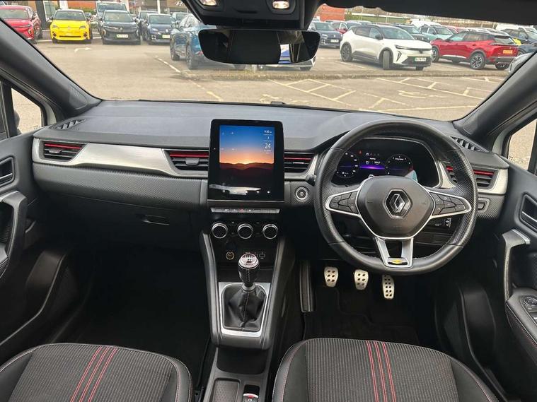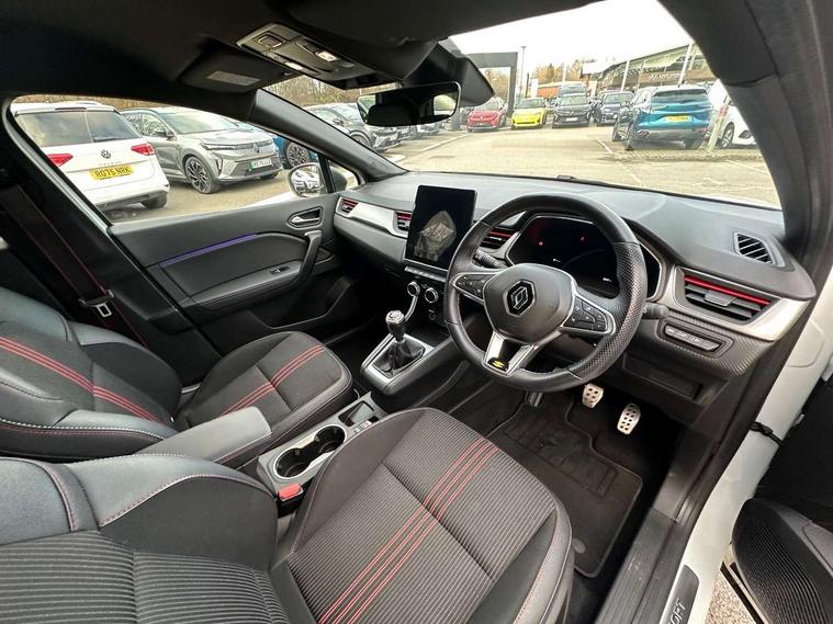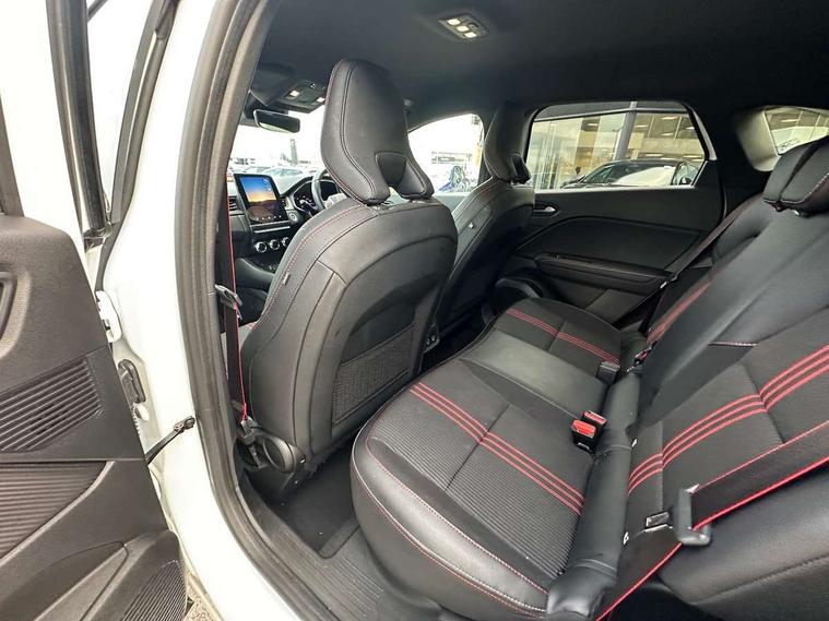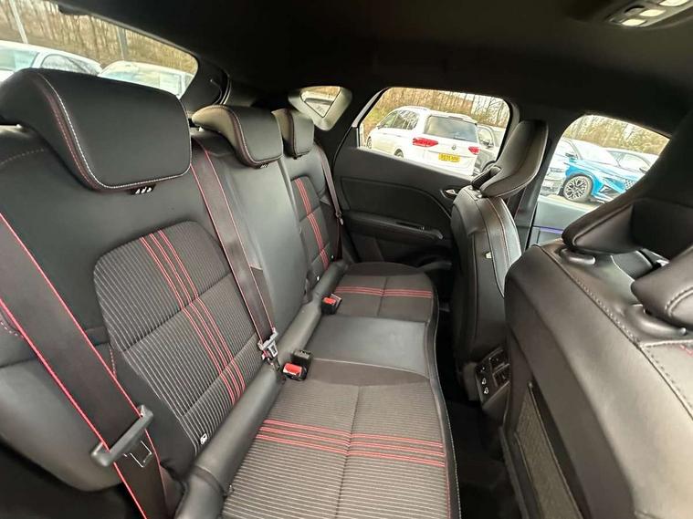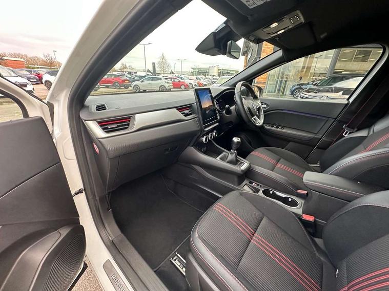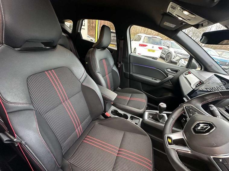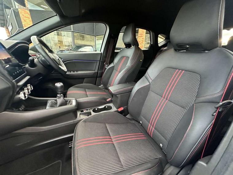 7" TFT Driver information display, Cruise control + speed limiter, EasyLink 9.3" portrait touchscreen with navigation, google search and traffic information, Eco mode, Front and rear parking sensors with rear view camera, Gear change indicator, Lane departure warning system, Lane keep assist, Multisense with 3 driving modes + 8 ambient lighting colours, Renault automatic emergency assist, Smartphone integration compatible with Apple CarPlay and Android Auto, Traffic sign recognition with over speed prevention, Trip computer, Variable assistance power steering, DAB Radio with Bluetooth and USB, Aluminium Renault sport door sills, Auto dimming rear view mirror, Automatic front wipers with rain sensors, Automatic headlights, Automatic high/low beam, Black side door protection with chrome effect, Body colour door handles, Body coloured bumpers, Body coloured door mirrors, C Shaped LED front and rear lighting signatures with 3D effect on the rear lights, Double chromed exhaust tailpipes element, Drivers one touch window with anti-pinch feature, Extra tinted glass in rear windows and tailgate, Frameless rear view mirror, Front and rear electric windows, Front bumper with F1 blade and honeycomb front grille, Front grille with chrome upper trim, Full LED headlights, Grey front and rear skid plate, LED daytime running lights, LED front fog lights, LED high level brake lights, LED rear fog light, Longitudinal roof bars, Rear side wing doors, Rear wiper, RS Line badges on front wing and hatch door, Shark fin antenna, 12V Accessory socket, 3 rear headrests, 60/40 split and fixed base rear seat bench, Aluminium pedals, Automatic climate control with one touch demist function and air quality regulator, Centre console storage tray, Dark roof lining, Front head restraints, Glovebox, Heating system with pollen filter, Height adjustable driver's seat, Height adjustable passenger seat, Height/reach adjust steering wheel, ISOFIX child seat fixing points on rear outermost seats, LED front roof lights, Middle console with armrest and storage, Modular boot floor, Perforated leather steering wheel with red stitching and RS Line badge, Rear air vents, Red insert on air vent, RS Line sport synthetic leather/cloth upholstery, Single front passenger seat, Sliding rear bench, 3 rear seatbelts, ABS+EBA, AEBS, Distance warning alert, Driver and front passenger, side, head and curtain airbags, Driver height adjustable seat belt, Electric parking brake with auto hold function, Electronic stability control, Front and rear no seatbelt warning sound, Front dash warning indicator in case of heavy braking, Front driver and passenger side airbag deactivation, Hill start assist, Rear door and window child locking function for rear door, Tyre pressure warning light, Anti drill door locks and locking fuel cap, Central door locking, Deadlocking system, Hands free keycard with push button and start/stop function, RAID (Renault Anti-Intruder Device) automatic door locking, Carbon style soft touch dashboard, 18" Le castellete diamond cut alloy wheels,