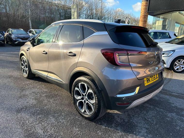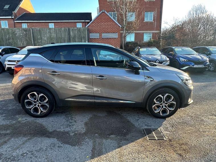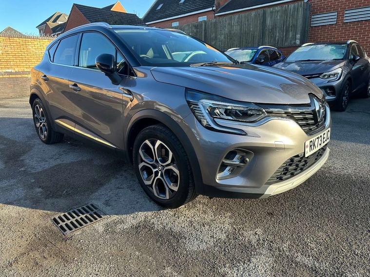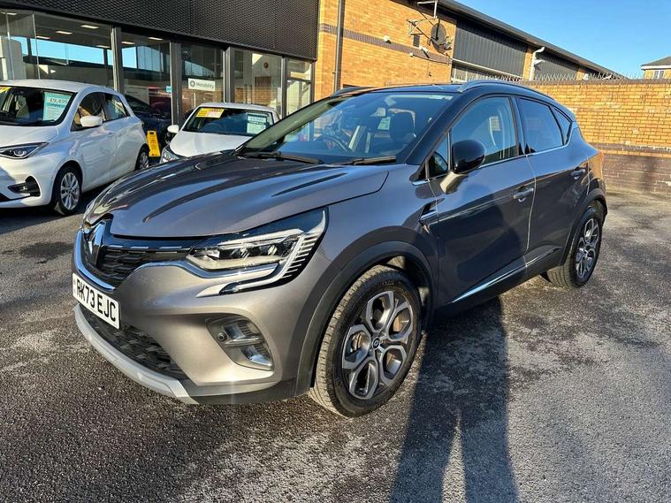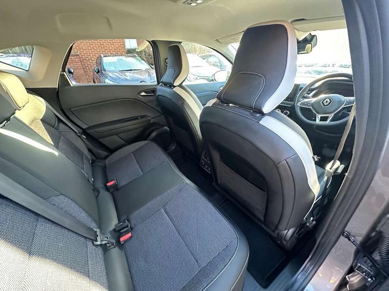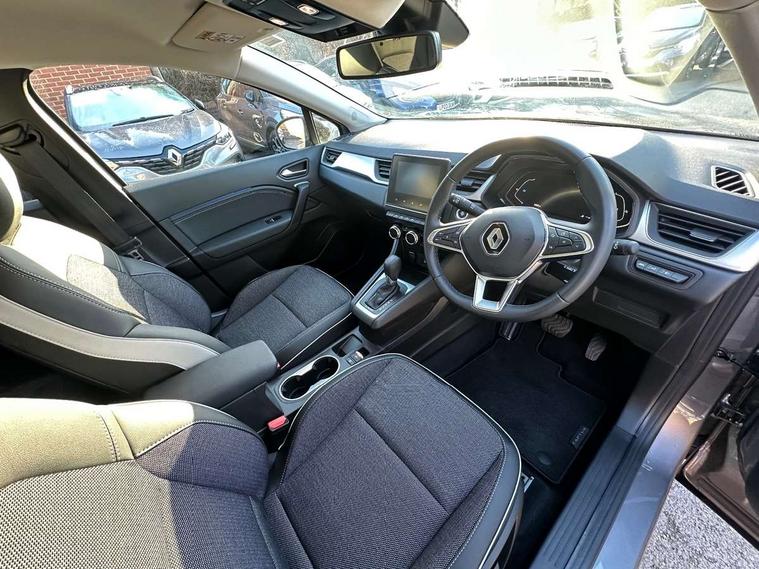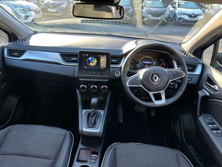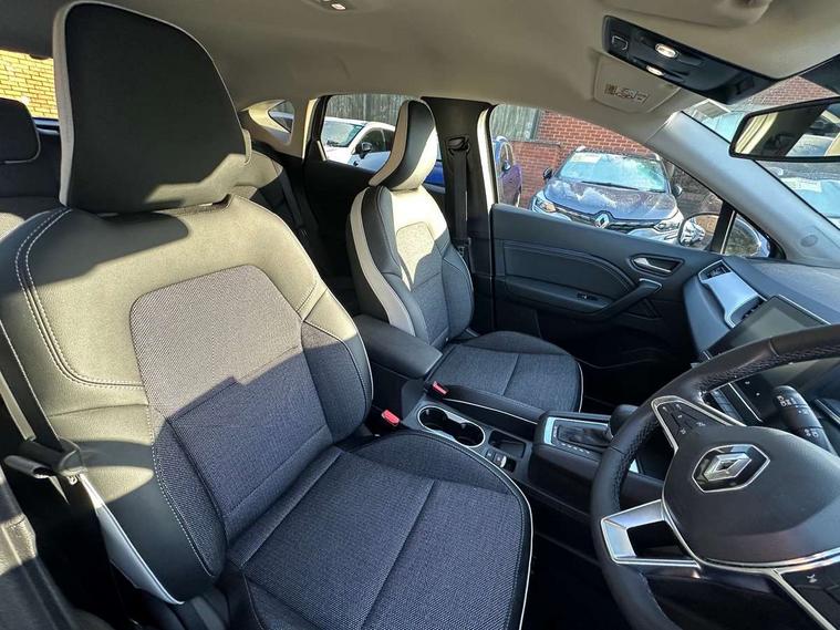 7" TFT Driver information display, Cruise control + speed limiter, EasyLink 7" touchscreen with navigation, google search and traffic information, Eco mode, EV button to activate pure mode, Front and rear parking distance sensors, Gear change indicator, Lane departure warning system, Lane keep assist, Multisense with 3 driving modes + 8 ambient lighting colours, Rear view camera, Renault automatic emergency assist, Smartphone integration compatible with Apple CarPlay and Android Auto, Traffic sign recognition with over speed prevention, Trip computer, Variable assistance power steering, DAB Radio with Bluetooth and USB, 2 reverse gear LED lamps and 1 rear LED fog lamp in the bumper, Auto dimming rear view mirror, Automatic front wipers with rain sensors, Automatic headlights, Automatic high/low beam, Black side door protection with chrome effect, Body colour door handles, Body coloured bumpers, Body coloured door mirrors, C Shaped LED front and rear lighting signatures with 3D effect on the rear lights, Chrome around front air deflectors, on front wing deco element and window lining, Day time running light, Drivers one touch window with anti-pinch feature, Extra tinted glass in rear windows and tailgate, Front and rear electric windows, Front grille with chrome upper trim, Full LED headlights with LED rear lights, Grey front and rear skid plate, LED high level brake lights, LED rear fog lights, LED turn indicators on door mirrors, Longitudinal roof bars, Rear side wing doors, Rear wiper, Shark fin antenna, 12V Accessory socket, 60/40 split and fixed base rear seat bench, Automatic climate control with one touch demist function and air quality regulator, Central rear LED rooflight with 3 reading lights, Front head restraints, Glovebox, Heating system with pollen filter, Height adjustable driver's seat, Height adjustable passenger seat, Height/reach adjust steering wheel, ISOFIX child seat fixing points on rear outermost seats, LED front roof lights, Middle console with armrest and storage, Modular boot floor, Rear air vents, Rear head restraints, Single front passenger seat, Sliding rear bench, Synthetic leather steering wheel, Synthetic leather/cloth upholstery, 3 rear seatbelts, ABS+EBA, AEBS - active emergency braking system, B Brake Mode - One pedal driving with increased regenerative braking, Distance warning alert, Driver and front passenger and 3 rear passengers seatbelt reminder, Driver and front passenger, side, head and curtain airbags, Driver height adjustable seat belt, Electric parking brake with auto hold function, Electronic stability control, Front dash warning indicator in case of heavy braking, Front driver and passenger side airbag deactivation, Hill start assist, Manual passenger airbag deactivation function, Rear door and window child locking function for rear door, Tyre pressure warning light, Anti drill door locks and locking fuel cap, Central door locking, Deadlocking system, Hands free keycard with push button and start/stop function, RAID (Renault Anti-Intruder Device) automatic door locking, Black soft touch dashboard, 18" Pasadena diamond cut alloy wheels with grey inserts,