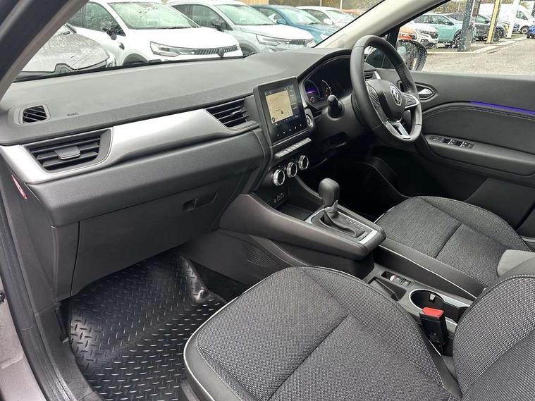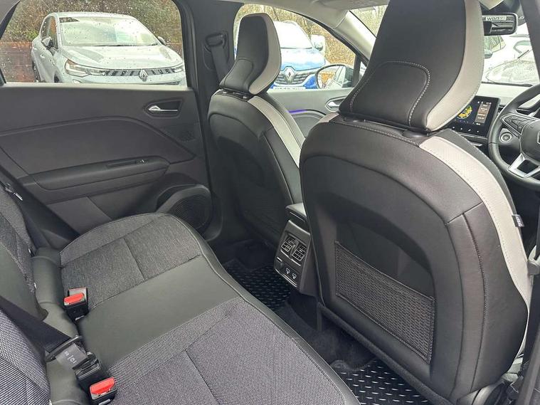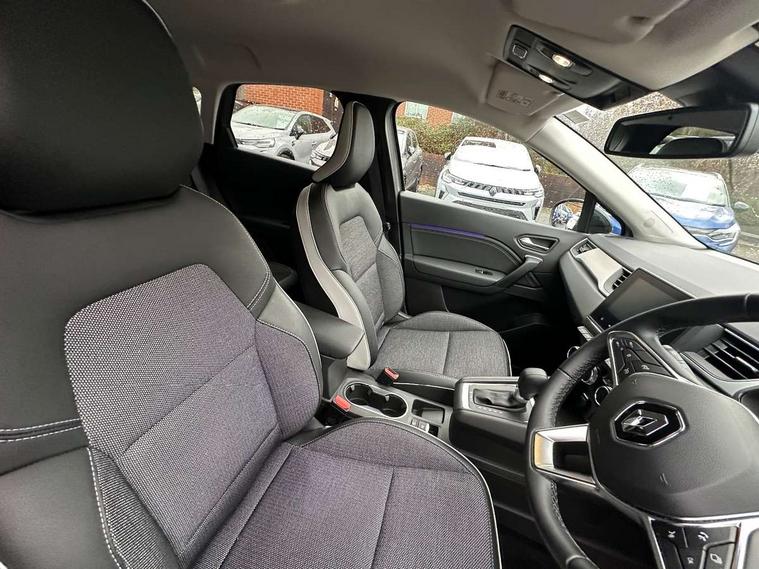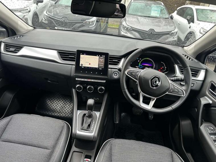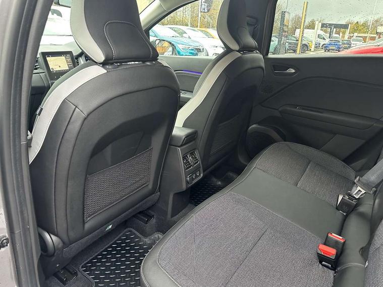 7" TFT Driver information display, Cruise control + speed limiter, EasyLink 7" touchscreen with navigation, google search and traffic information, Eco mode, EV button to activate pure mode, Front and rear parking distance sensors, Gear change indicator, Lane departure warning system, Lane keep assist, Multisense with 3 driving modes + 8 ambient lighting colours, Rear view camera, Renault automatic emergency assist, Smartphone integration compatible with Apple CarPlay and Android Auto, Traffic sign recognition with over speed prevention, Trip computer, Variable assistance power steering, DAB Radio with Bluetooth and USB, 2 reverse gear LED lamps and 1 rear LED fog lamp in the bumper, Auto dimming rear view mirror, Automatic front wipers with rain sensors, Automatic headlights, Automatic high/low beam, Black side door protection with chrome effect, Body colour door handles, Body coloured bumpers, Body coloured door mirrors, C Shaped LED front and rear lighting signatures with 3D effect on the rear lights, Chrome around front air deflectors, on front wing deco element and window lining, Day time running light, Drivers one touch window with anti-pinch feature, Extra tinted glass in rear windows and tailgate, Front and rear electric windows, Front grille with chrome upper trim, Full LED headlights with LED rear lights, Grey front and rear skid plate, LED high level brake lights, LED rear fog lights, LED turn indicators on door mirrors, Longitudinal roof bars, Rear side wing doors, Rear wiper, Shark fin antenna, 12V Accessory socket, 60/40 split and fixed base rear seat bench, Automatic climate control with one touch demist function and air quality regulator, Central rear LED rooflight with 3 reading lights, Front head restraints, Glovebox, Heating system with pollen filter, Height adjustable driver's seat, Height adjustable passenger seat, Height/reach adjust steering wheel, ISOFIX child seat fixing points on rear outermost seats, LED front roof lights, Middle console with armrest and storage, Modular boot floor, Rear air vents, Rear head restraints, Single front passenger seat, Sliding rear bench, Synthetic leather steering wheel, Synthetic leather/cloth upholstery, 3 rear seatbelts, ABS+EBA, AEBS - active emergency braking system, B Brake Mode - One pedal driving with increased regenerative braking, Distance warning alert, Driver and front passenger and 3 rear passengers seatbelt reminder, Driver and front passenger, side, head and curtain airbags, Driver height adjustable seat belt, Electric parking brake with auto hold function, Electronic stability control, Front dash warning indicator in case of heavy braking, Front driver and passenger side airbag deactivation, Hill start assist, Manual passenger airbag deactivation function, Rear door and window child locking function for rear door, Tyre pressure warning light, Anti drill door locks and locking fuel cap, Central door locking, Deadlocking system, Hands free keycard with push button and start/stop function, RAID (Renault Anti-Intruder Device) automatic door locking, Black soft touch dashboard, 18" Pasadena diamond cut alloy wheels with grey inserts,