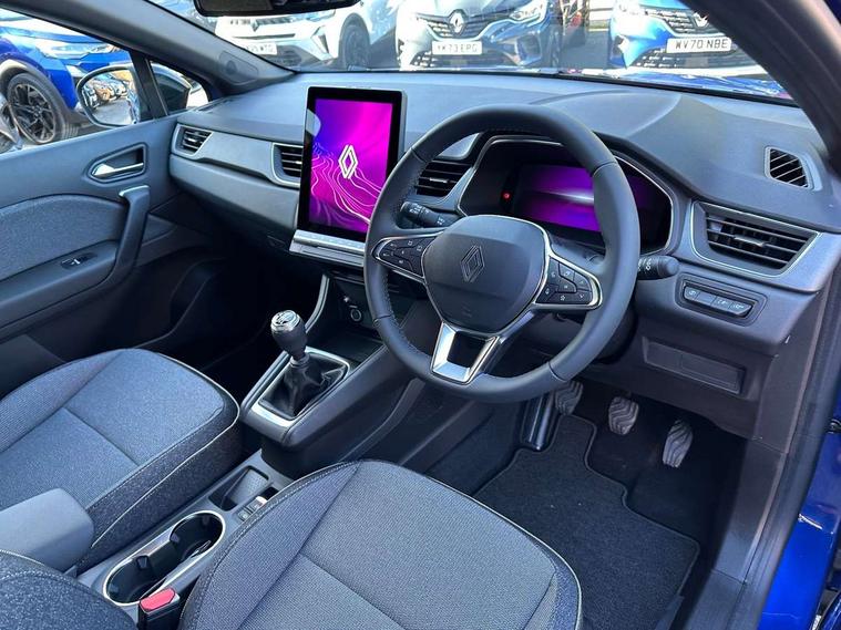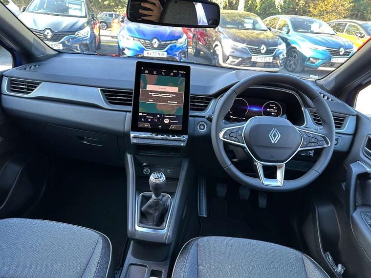 10.25" digital driver display, 10.4" OpenR link touchscreen with with built in Google Automotive Services and navigation, 2 front USB-C ports, 2 rear USB-C ports, Cruise control + speed limiter, Driver attention alert system, Driver drowsiness alert system, e-Call automatic emergency assist, Emergency lane keep assist including solid line, oncoming traffic and road edge detection, Engine start button, Front and rear parking distance sensors, Front safe stopping distance warning, Gear change indicator, Intelligent speed assistance include traffic sign recognition with speed alert, Lane departure warning system, Multisense with 4 driving modes and upto 48 ambient lighting colours, Navigation system with built in google maps, Outside temperature display, Performance mode selector - multisense 4 driving modes (sport, comfort, perso and eco), Power assisted steering, QR code fireman access for technical information, Rear view camera, Service interval indicator, Side parking sensors, Trip computer, Voice control for navigation system with built in google assistant, Wifi smartphone integration compatible with Apple CarPlay and Android Auto, Wireless phone charger, Speed limiter 111mph, 6 speakers inc 2 boomer + 2 tweeter + 2 bicone, DAB radio with Bluetooth, 2 reversing lights, Auto dimming rear view mirror with light and rain sensor - black, Automatic front wipers with rain sensors, Automatic headlights, Automatic high/low beam, Body colour door handles, Body colour F1 blade, Body coloured bumpers, Body coloured door mirrors, Chrome around front air deflectors, on front wing deco element and window lining, Dark tinted glass in rear windows and tailgate, Drivers one touch window with anti-pinch feature, Electrically folding door mirrors, Flush and longitudinal roof bars, Front and rear electric windows, Full LED front and signature rear lights, Heated door mirrors, Heated rear windscreen, LED daytime running lights, LED high level brake lights, LED rear fog lights, LED turn indicators on door mirrors, Radiator grille with 3D graphic black upper part with body tone graphics, Rear side wing doors, Rear wiper, Shark fin antenna, 12v power outlet - front, 2 front roof LED lights and central rear roof light with 3 reading LED lights, 3 bench rear seats in 2nd row, Automatic air conditioning with one touch demist function and air quality regulator, Flying console with central storage, sliding armrest and 2 rear air vents, Front head restraints, Glovebox, Heating system with pollen filter, Height adjustable driver's seat, Height adjustable passenger seat, Height/reach adjust steering wheel, ISOFIX child seat fixing points on rear outermost seats, Marled fabric upholstery, Modular boot floor, Multifunctional steering wheel, Rear head restraints, Rear seats - 1/3:2/3 foldable sliding bench, Single front passenger seat, Sunvisor with mirror and light, Synthetic leather steering wheel, 3 rear seatbelts, ABS+EBA, Active emergency braking system - Urban, pedestrian/cyclist with junction function, Collision avoidance braking, Distance warning alert, Driver and front passenger airbags, Driver and front passenger and 3 rear passengers seatbelt reminder, Driver height adjustable seat belt, Electric parking brake with auto hold function, Electronic stability control, Front dash warning indicator in case of heavy braking, Front driver and passenger side airbag deactivation, Hill start assist, Manual passenger airbag deactivation function, My safety shield - ability to personalise ADAS features at press of a button, Outer rear safety seat belts, Rear door and window child locking function for rear door, Side airbags, Tyre pressure warning light, Alarm, Hands free keycard with Keyless access and start, Immobiliser, Locking fuel cap, Locking wheel nuts, RAID (Renault Anti-Intruder Device) automatic door locking, Remote central locking, Superlocking, Black soft touch dashboard, Granite grey decorative upper strip, 18" Black hole alloy wheels,