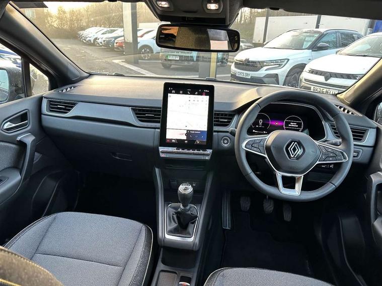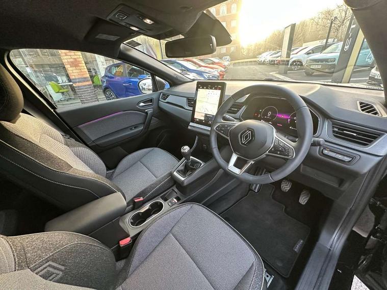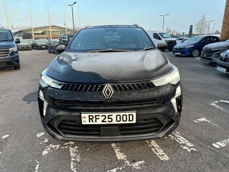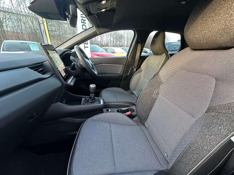 10.25" digital driver display, 10.4" OpenR link touchscreen with with built in Google Automotive Services and navigation, 2 front USB-C ports, 2 rear USB-C ports, Cruise control + speed limiter, Driver attention alert system, Driver drowsiness alert system, e-Call automatic emergency assist, Emergency lane keep assist including solid line, oncoming traffic and road edge detection, Engine start button, Front and rear parking distance sensors, Front safe stopping distance warning, Gear change indicator, Intelligent speed assistance include traffic sign recognition with speed alert, Lane departure warning system, Multisense with 4 driving modes and upto 48 ambient lighting colours, Navigation system with built in google maps, Outside temperature display, Performance mode selector - multisense 4 driving modes (sport, comfort, perso and eco), Power assisted steering, QR code fireman access for technical information, Rear view camera, Service interval indicator, Side parking sensors, Trip computer, Voice control for navigation system with built in google assistant, Wifi smartphone integration compatible with Apple CarPlay and Android Auto, Wireless phone charger, Speed limiter 111mph, 6 speakers inc 2 boomer + 2 tweeter + 2 bicone, DAB radio with Bluetooth, 2 reversing lights, Auto dimming rear view mirror with light and rain sensor - black, Automatic front wipers with rain sensors, Automatic headlights, Automatic high/low beam, Body colour door handles, Body colour F1 blade, Body coloured bumpers, Body coloured door mirrors, Chrome around front air deflectors, on front wing deco element and window lining, Dark tinted glass in rear windows and tailgate, Drivers one touch window with anti-pinch feature, Electrically folding door mirrors, Flush and longitudinal roof bars, Front and rear electric windows, Full LED front and signature rear lights, Heated door mirrors, Heated rear windscreen, LED daytime running lights, LED high level brake lights, LED rear fog lights, LED turn indicators on door mirrors, Radiator grille with 3D graphic black upper part with body tone graphics, Rear side wing doors, Rear wiper, Shark fin antenna, 12v power outlet - front, 2 front roof LED lights and central rear roof light with 3 reading LED lights, 3 bench rear seats in 2nd row, Automatic air conditioning with one touch demist function and air quality regulator, Flying console with central storage, sliding armrest and 2 rear air vents, Front head restraints, Glovebox, Heating system with pollen filter, Height adjustable driver's seat, Height adjustable passenger seat, Height/reach adjust steering wheel, ISOFIX child seat fixing points on rear outermost seats, Marled fabric upholstery, Modular boot floor, Multifunctional steering wheel, Rear head restraints, Rear seats - 1/3:2/3 foldable sliding bench, Single front passenger seat, Sunvisor with mirror and light, Synthetic leather steering wheel, 3 rear seatbelts, ABS+EBA, Active emergency braking system - Urban, pedestrian/cyclist with junction function, Collision avoidance braking, Distance warning alert, Driver and front passenger airbags, Driver and front passenger and 3 rear passengers seatbelt reminder, Driver height adjustable seat belt, Electric parking brake with auto hold function, Electronic stability control, Front dash warning indicator in case of heavy braking, Front driver and passenger side airbag deactivation, Hill start assist, Manual passenger airbag deactivation function, My safety shield - ability to personalise ADAS features at press of a button, Outer rear safety seat belts, Rear door and window child locking function for rear door, Side airbags, Tyre pressure warning light, Alarm, Hands free keycard with Keyless access and start, Immobiliser, Locking fuel cap, Locking wheel nuts, RAID (Renault Anti-Intruder Device) automatic door locking, Remote central locking, Superlocking, Black soft touch dashboard, Granite grey decorative upper strip, 18" Black hole alloy wheels,