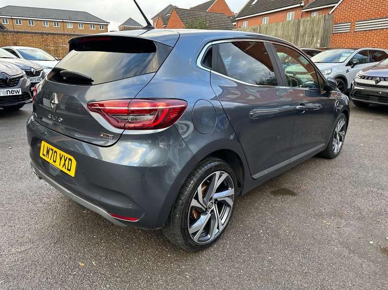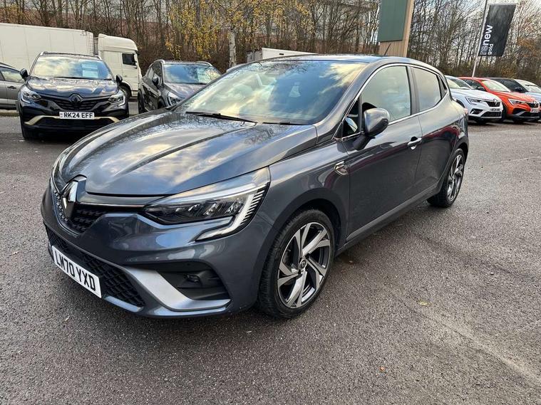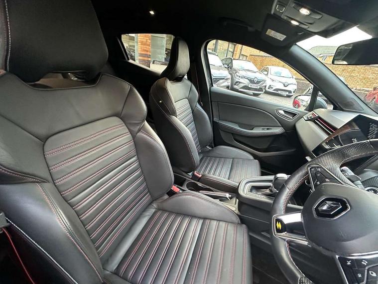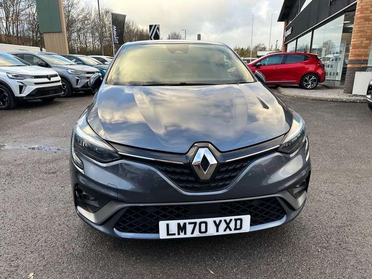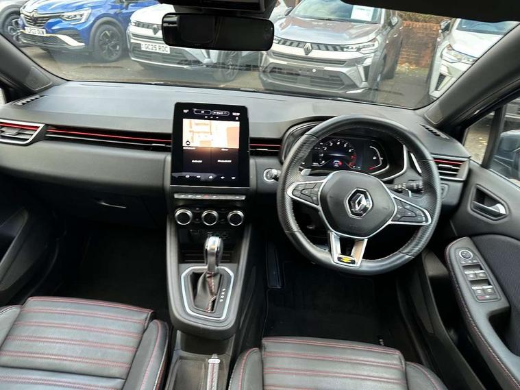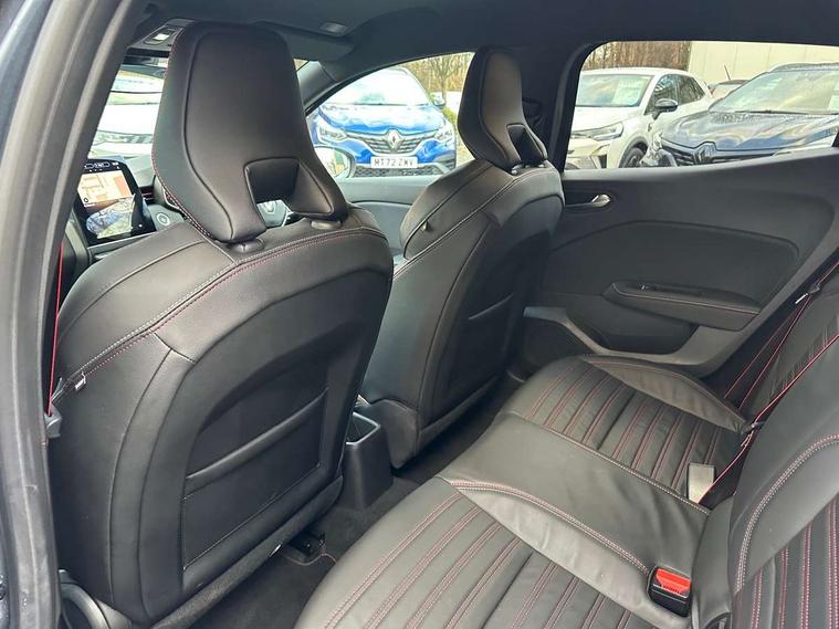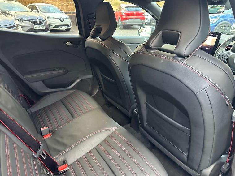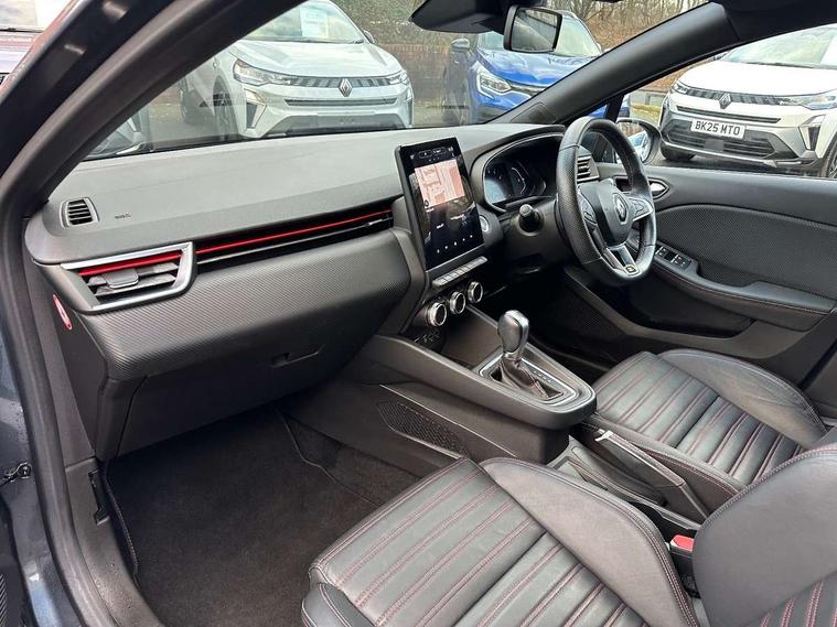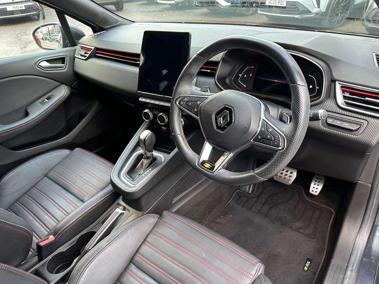 E-call, Easy link 9.3" screen with nav, 4x20W amp, DAB double tuner, 2xUSB, 1xJack/Bluetooth, and smartphone integration plus - Apple CarPlay/Android Auto, Eco mode, Gear change indicator, Lane departure warning system, Over speed prevention, Traffic sign recognition, Trip computer, Variable assistance electric PAS, Sound auditorium, Automatic headlights + automatic windscreen wipers, Black headlamp surrounds, Body colour door handles, Body colour door mirrors, Body coloured bumpers, Body coloured rear spoiler, Chrome window surround, Drivers one touch window with anti-pinch feature, Electric adjustable/heated/folding door mirrors, Electric front windows, Electric rear windows, Exterior rear hidden door handles, Extra tinted glass on rear windows + tailgate, Full C-shape LED front and rear signature lighting, Full LED front and rear headlamps integrating daytime running lights at the front and rear, Gun Metal insert on lower side doors with Clio embossing, LED front fog lights, Rear fog lights, Rear wiper, RS Line badging, RS Line exterior styling, RS Line side marker chrome, RS Line sports front bumper, RS Line sports lower grill, RS Line sports rear bumper sport with chrome oval exhaust pipe, Variable speed on front windscreen wipers, 12V Accessory socket, 3 rear height adjustable headrests, 6.2L front glovebox, 60/40 split rear seats, Air recirculation control, Auto climate control, Dark roof lining and aluminimum pedal set, Driver's seat height adjustment, Front cupholders, Front decor strip in red, Front door storage bin, Height adjustable front headrests, Height/reach adjust steering wheel, Isofix system on outer rear seats, Multi function steering wheel, Pollen filter, RS branded top grain leather steering wheel, RS Line cloth upholstery with striped and red contrast stitching, RS Line Interior trim including airvent stripe and gearshifter in red, System for Restraint and Protection SRP-front seats, Exterior chrome pack - Clio, 3 point seatbelts on all rear seats, ABS+EBD+Brake assist, Automatic emergency braking system, Curtain airbags, Distance warning alert, Driver and passenger front and side airbag deactivation, Driver/Front Passenger airbags, ESC - Electronic Stability Control + traction control, Front side airbags(head+thorax), Height adjustable driver's seatbelt, Hill start assist, Seatbelt warning, Tyre pressure warning, Automatic door locking, Central door locking, Child lock control of rear doors and windows, Deadlocking system, Hands free key card with push button, start and stop function, Locking fuel filler cap, RAID (Renault Anti-Intruder Device) with automatic door locking, Remote central locking, Thatcham Cat 2 engine immobiliser, 17" RS diamond cut alloy wheels,