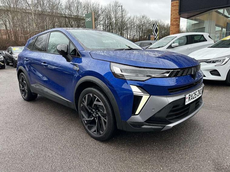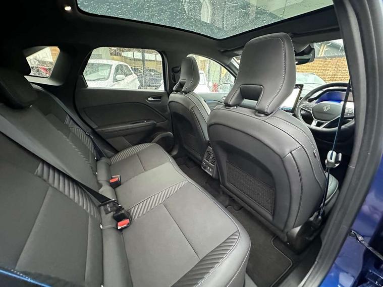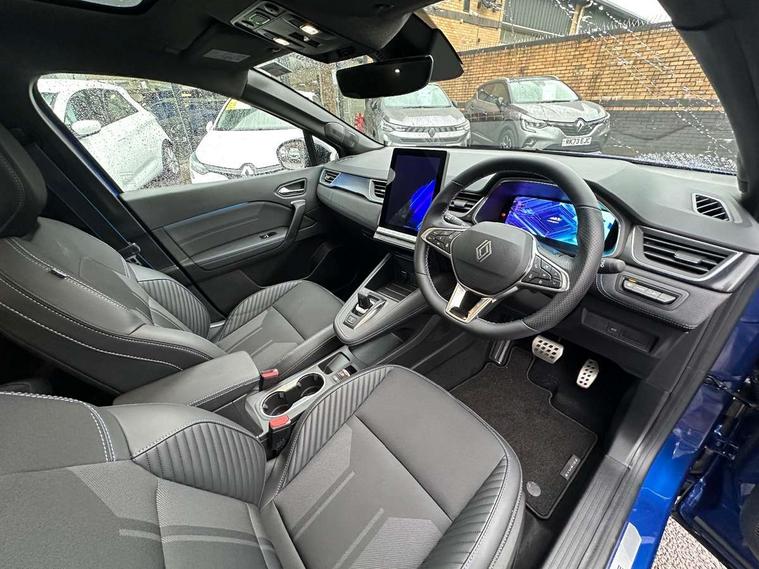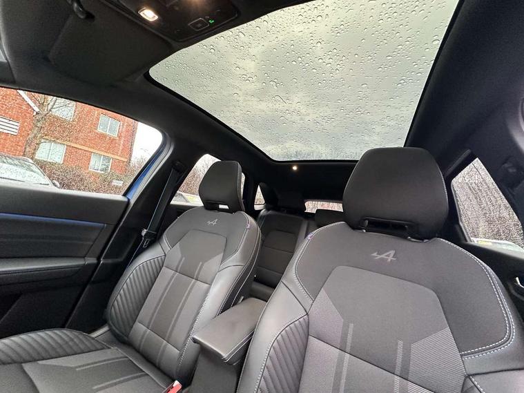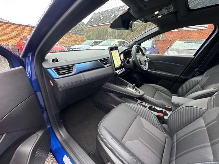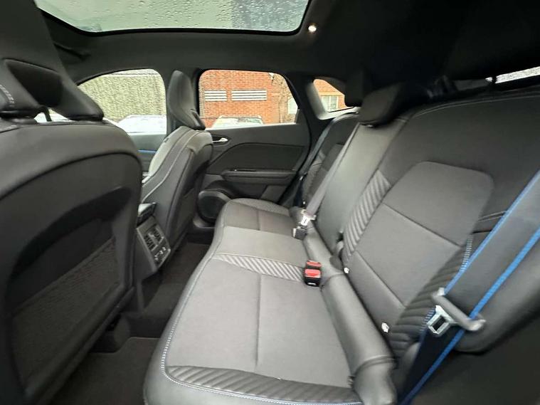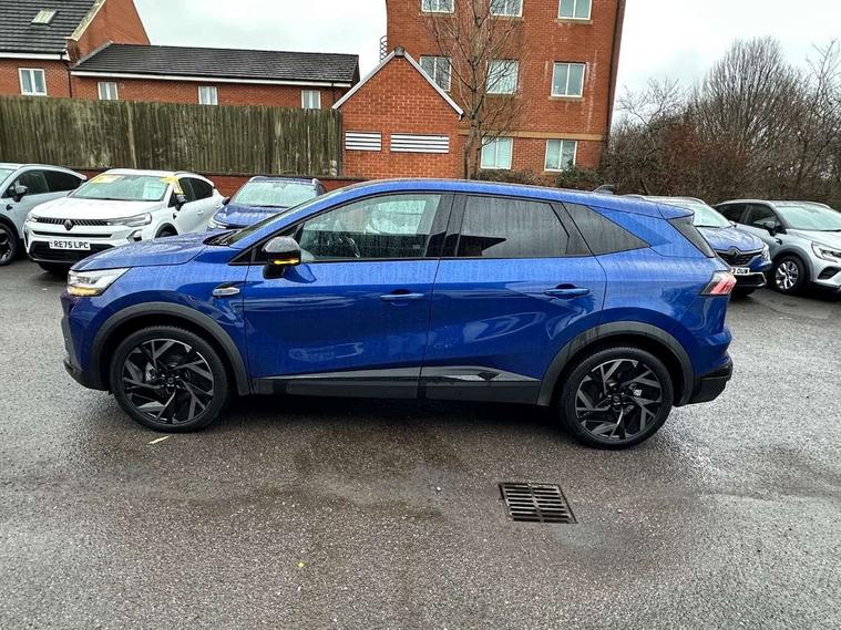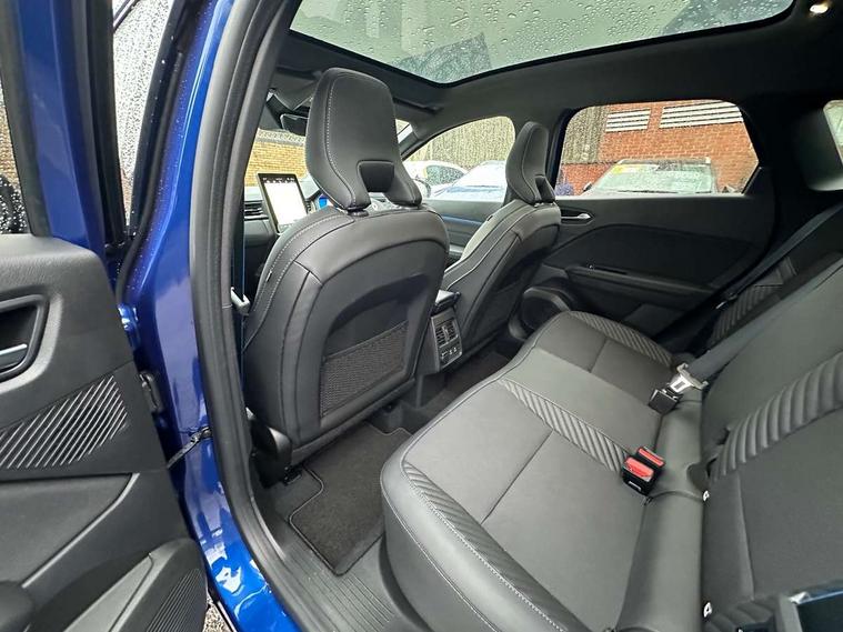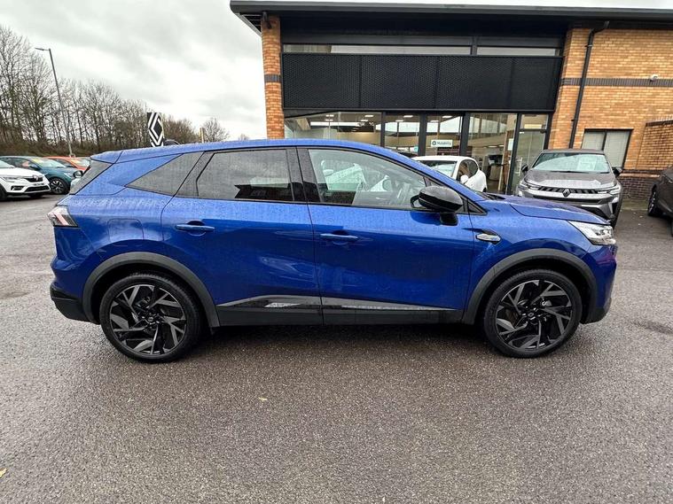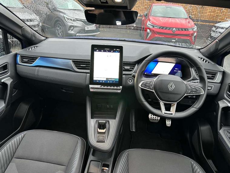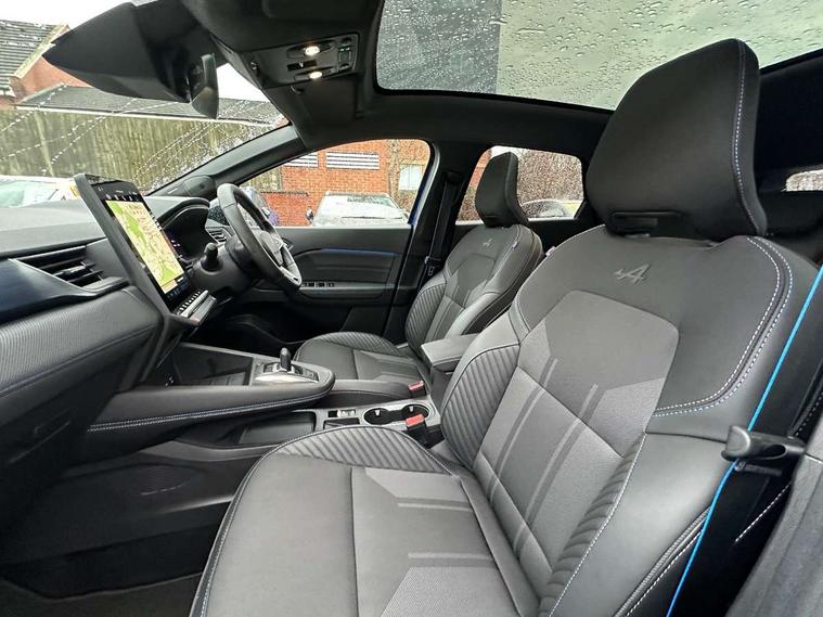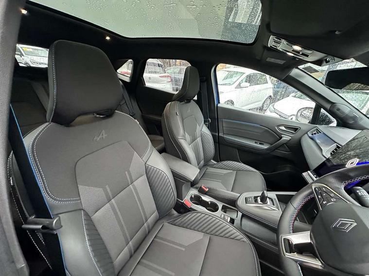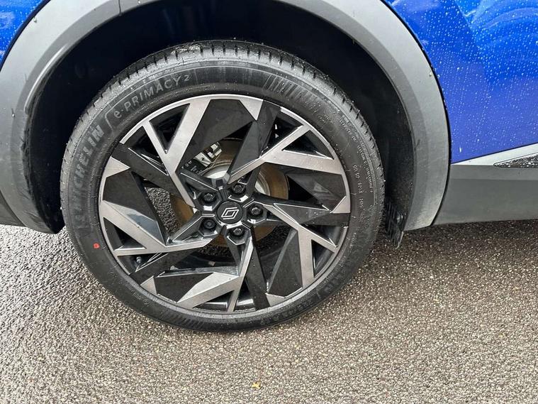 10.25" digital driver display, 10.4" OpenR link touchscreen with with built in Google Automotive Services, 9-speaker premium Harman Kardon audio system and navigation, 360 around view 3D camera, Adaptive cruise control with speed limiter, Blind spot warning and rear detection, Driver attention alert system, Eco mode driving function, Engine start button, Exterior temperature display, Front, rear and side parking sensors, Front/rear detection with emergency lane keep assist incl. solid line, oncoming traffic and road edge detection, Gear change indicator, Hands free parking, Internet access/wi-fi hotspot, Lane centering assist, Lane change warning, Lane departure warning, My safety switch - ability to personalise ADAS features at press of a button, PAS, Performance mode selector - multisense 4 driving modes (sport, comfort, perso and eco), Power hands-free tailgate opening, Qrescue, Rear cross traffic/pedestrian alert with rear braking assitance, Renault automatic emergency assist, Service interval indicator, Traffic sign recognition with overspeed prevention, Trip computer, Voice control for navigation system with built in google assistant, Wifi smartphone integration compatible with Apple CarPlay and Android Auto, Wireless phone charger, 2 front and 2 rear USB-C ports, DAB radio with Bluetooth, Automatic headlights, Automatic high / low beam, Automatic windscreen wipers with rain sensor, Dark tinted rear windows and tailgate, Electric adjustable/heated/auto folding door mirrors, Esprit alpine exterior styling, Frameless auto dimming rear view mirror, Front and rear electric windows with driver window one touch facility and anti pitch function, Front matte grey and rear skid plates, Full LED front and rear lights, Gloss black window surround, Heated rear window, LED daytime running lights, LED rear fog lights, LED third brake light, Matte grey F1 blade, Radiator grille with 3D graphics in black upper part with grey graphics and body tone lower part, Rear side wing doors, Rear wiper, Shark fin antenna, Solarbay opacifying panoramic sunroof, Twin reversing lights, 12v power outlet - front, 2 front roof LED lights and central rear rooflight with 3 reading LED lights, 3 seat bench in 2nd row, 48 ambient lighting colours, Aluminium sports pedals, Automatic air conditioning with one touch quick demist function and air quality regulator, Driver and front passenger seat with electric height adjustment, Esprit alpine interior styling, Flying console with central storage, sliding armrest and 2 rear air vents, Front and rear head restraints, Front seats manual lumbar adjustment, Heated front seats, Heated synthetic leather steering wheel, Height and depth adjustable steering wheel, ISOFIX child seat fixing points on rear outermost seats, Luggage compartment light, Modular boot floor, Multifunctional steering wheel, Rear seats - 1/3:2/3 foldable sliding bench, Recycled jacquard madama fabric upholstery, Single front passenger seat, Sunvisor with mirror and light, 3x3 point rear seatbelts, Abs with emergency brake assist, Active emergency braking system - Urban and pedestrian/cyclist, Adjustable driver and passenger safety seat belts, Approaching vehicle sound for pedestrians, Collision avoidance braking, Distance warning alert, Driver and front passenger and 3 rear passengers seatbelt reminder, Driver and front passenger, side, head and curtain airbags, Electronic parking brake with auto hold function, Electronic Stability Programme, Front passenger airbag deactivation, Front seatbelt pretensioners, Hill start assist, Occupant safe exit, Rear window and door child locking function, Tyre pressure warning light, Alarm/immobiliser, Hands free keycard with Keyless access and start, Locking wheel nuts, Remote central locking, Super locking system, Brushed blue decorative upper strip, Lower textile strip on dashboard with red, white and blue flag, 19" Esprit alpine elixir alloys wheels,