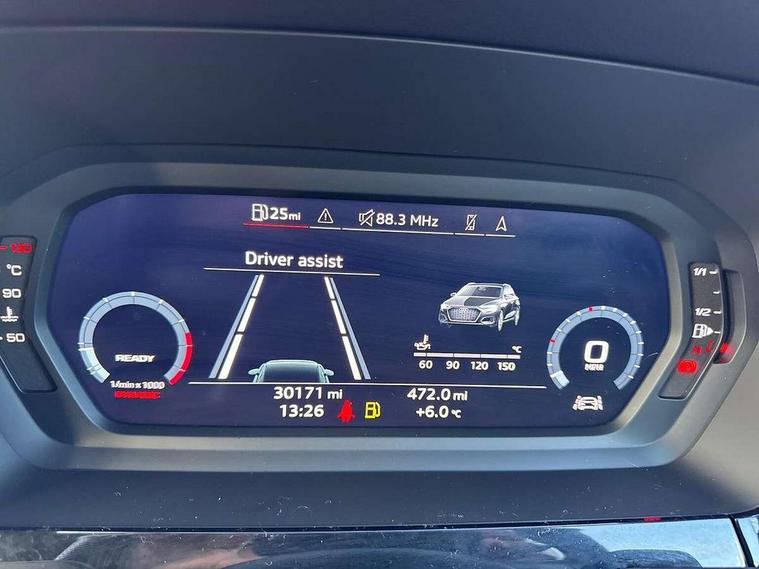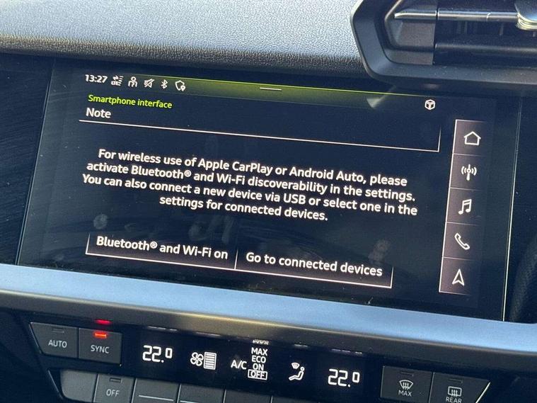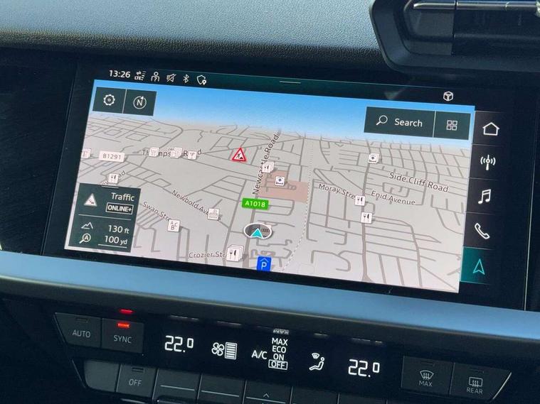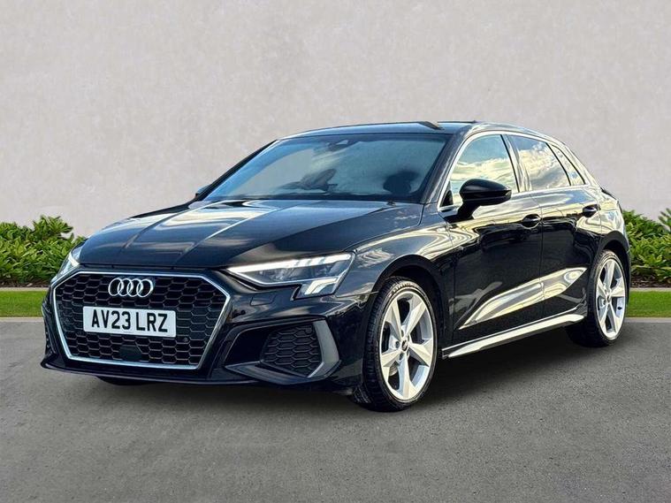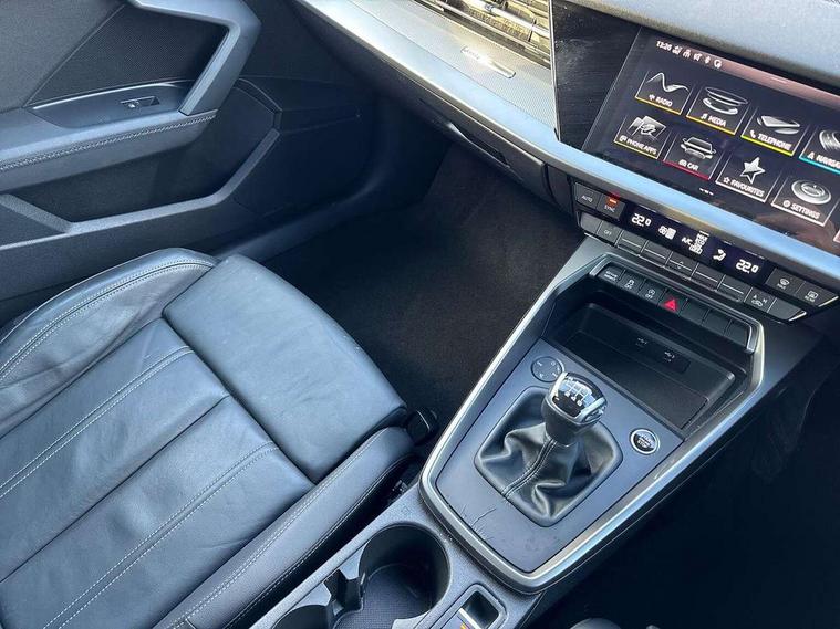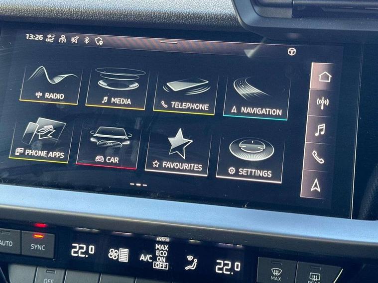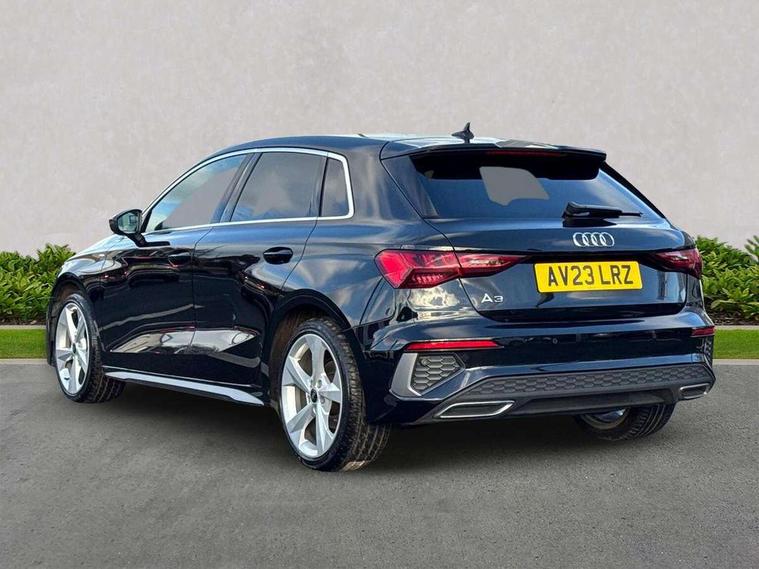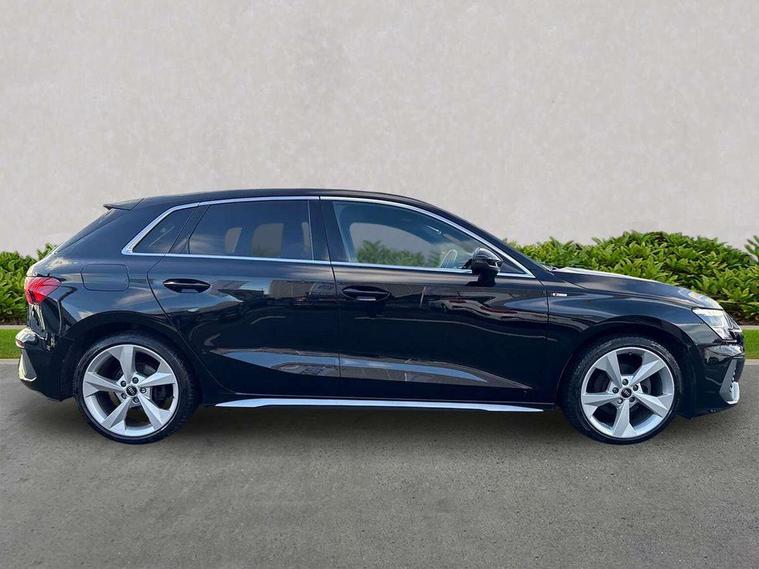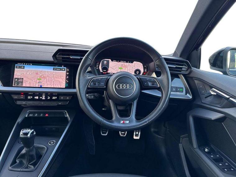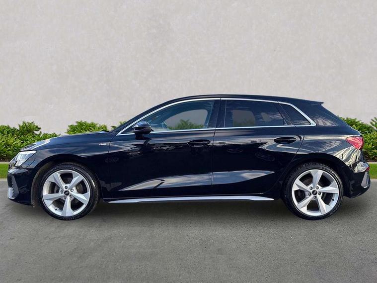 Audi drive select (Auto, Comfort, Dynamic, Efficiency and Individual), Audi smartphone interface, Audi Virtual Cockpit - 10.25" digital and colour instrument cluster, Automatic start/stop system with recuperation, Bluetooth interface, Collision avoidance assistant, Cruise control, e-Call (emergency call), Electromechanical power speed sensitive steering, Lane departure warning system, MMI Navigation Plus with high resolution 10.1" colour touch screen display, Rear parking sensors, Service indicator, Trip computer, Voice control system with natural language interaction, Sports suspension, 2xUSB-C connection with data and charging functions, 6 passive loudspeakers, DAB Digital radio, 3rd brake light, Acoustic glass windscreen, Aluminium window trim, Auto dimming frameless rear view mirror, Body colour exterior mirrors, Electrically adjustable/heated/folding/auto dimming door mirrors with integrated LED indications + kerb view function for passenger side, Front electric windows, Illuminated aluminium inserts front door sills with S logo, LED daytime running lights, LED headlights with LED rear lights and dynamic rear indicators, Light and rain sensors, Privacy glass - dark tinted rear window, rear door and side windows, Rear electric windows, Rear side air outlets in grained matt black, Rear side wing doors, Rear wiper, S line bumpers, S roof spoiler, 12V socket and storage compartment in front centre console, 3 seat bench in 2nd row, 3 spoke leather multifunction steering wheel, 40/20/40 split folding rear seat bench with cupholder, Black cloth headlining, Dual zone electronic climate control, Front and rear centre armrest in leather, Front and rear headrests, Front/rear floor mats, Height and reach adjustable steering wheel, Illuminated vanity mirror, Interior lighting - glove compartment light and right hand side, Luggage compartment floor covering, Manual boot compartment lid, Manually adjustable front seats, Seat side bolsters, Single front passenger seat, Stainless steel pedals and front footrest in black, Twin leather upholstery with front sports seats S embossed logo, Aluminium interior elements pack - A3 Sportback, LED interior lighting pack - A3 Sportback, S line styling pack - A3 Sportback, 3x3 point rear seat belts, Audi pre sense front, Driver and front passenger airbag with passenger airbag deactivation, Electronic Stabilisation Control (ESC) including ABS, ASR and EDL, First aid kit with warning triangle and 2 safety vests, Front side airbags with head airbags and interaction airbag, Pre-sense front with pedestrian and cyclist detection, Seatbelt monitoring, Tyre pressure loss indicator, Anti theft alarm, Anti-theft wheel bolts, Electronically operated child lock, Immobiliser, Remote control central locking, Accent surfaces in the dashboard and centre console in platinum grey silk effect paint finish, Dark spectrum aluminium inlays,