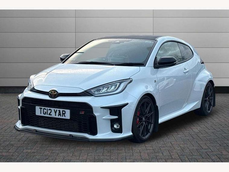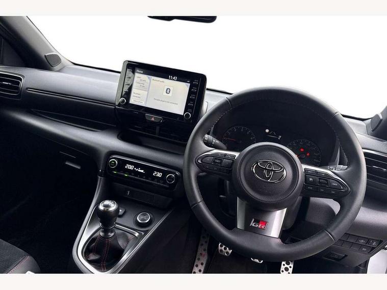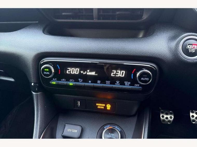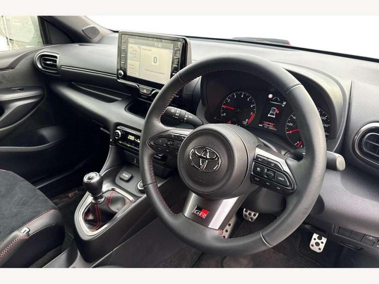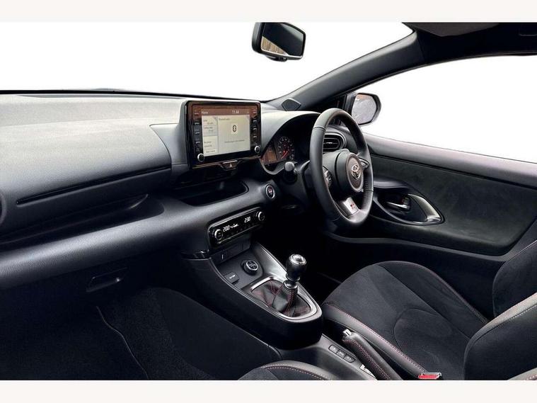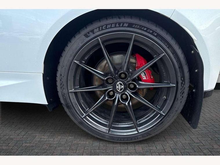 Apple car play/Android Auto, Coloured TFT multi informational display, eCall emergency system, Emergency steering assist, Intelligent adaptive cruise control, Lane Departure Alert (LDA) switch on steering wheel, Lane trace assist, Power Steering, Pre-collision system (PCS), Reversing camera, Road sign assist - RSA, Circuit tuned GR suspension, Double wishbone rear suspension, GR-Four AWD switch, MacPherson front suspension, Vehicle Stability Control (VSC), 6 speakers, 8" Multimedia display touch screen, DAB Digital radio, Toyota touch 2 multimedia system, USB connection, Adaptive high beam assist, Adaptive LED Headlights, Air intakes for brake cooling, Auto dimming eletrochromatic rear view mirror, Auto windscreen wipers, Automatic headlights, Automatic headlights cut-off, Automatically retractable door mirrors, Black contrasting colour door mirrors, Black rear spoiler, Body coloured door handles, Body coloured rear bumper, Carbon fibre roof wrap, Door scuff plates, Dual exhaust pipes, Electric adjustable heated door mirrors, Follow me home headlights, Front auto power windows with anti jam protection, Gloss black GR front bumper, GR badges 1 front, 1 rear and 2 sides, GR lower front grille, Integrated LED indicators in door mirrors, LED daytime running lights, LED fog lights, LED High mounted stop lamp, LED rear combination lights, Piano black side air vents, Privacy glass on rear and back windows, Rear auto power windows with anti jam protection, Rear window defogger, Shark fin antenna, 12v socket in front, 2 rear head restraints, 3 spoke leather sports steering wheel, 60/40 split folding rear seat, Aluminium pedals, Clean air filter, Driver and passenger headrests, Driver's sun visor with vanity mirror, Dual zone automatic air conditioning, Front bottle holders, Front cup holders, Front map light, Front sports seats, GR floor mats, GR logo on steering wheel, GR Ultrasuede leather upholstery, Height adjustable driver's seat, Isofix child rear seat restraints, Leather gearshift, Leather handbrake, Manual slide adjustable on driver's and passenger seats, Microphone on front personal light, Multimedia switch on steering wheel, Pollen filter, Red stitching on gearshift, Red stitching on handbrake lever, Satin chrome interior door handles, Soft tonneau cover, Ticket holder on driver's sun visor, Tilt/telescopic steering column, ABS with Brake Assist, Airbags - driver and front passenger, Driver and passenger side airbags, Emergency brake light system (EBS), Front passenger airbag on/off switch, Front seatbelt reminder, Hill start assist control (HAC), Rear passenger airbag, Rear seat belt reminder, Red brake callipers, Red sport front and rear brake pads, Start holding control, Torsen limited slip differentials x2, Tyre pressure warning system, Alarm/immobiliser, Keyless smart entry with push button start, 18" 10 spoke forged alloy wheels with Michelin pilot sport, Tyre repair kit,