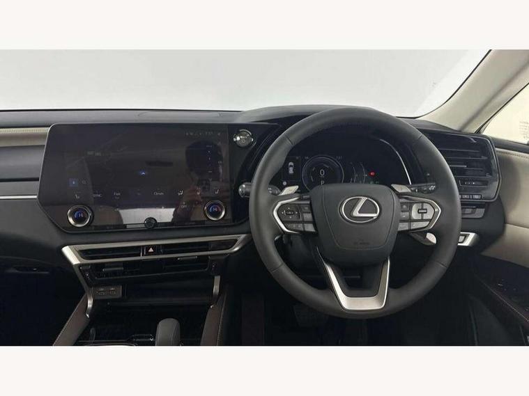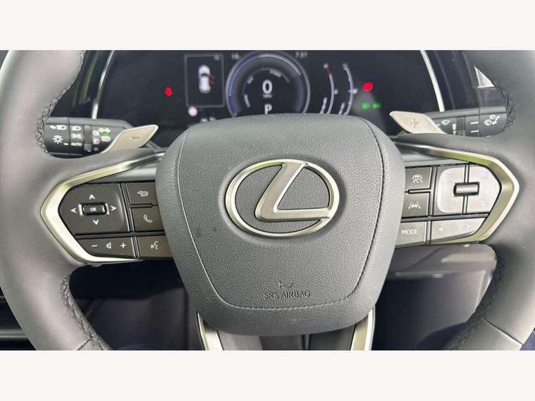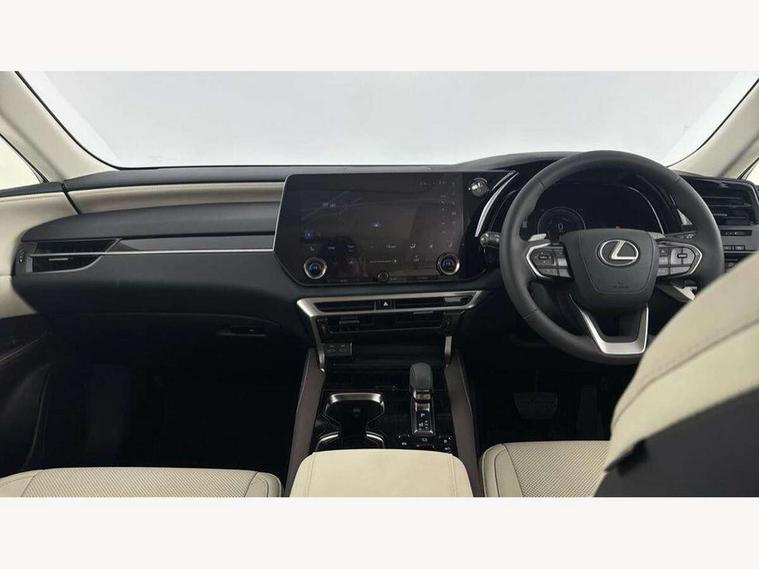 Bluetooth mobile phone connectivity, Drive mode selector, E-call, Intelligent clearance sonar, Lexus link connected services including over the air updates, MM21 Lexus link pro - 14" HD touchscreen with embedded and cloud based navigation, voice assistant, connected services, over the air and always online, Push button starter, Speed sensitive electric power assisted steering, Ultrasonic parking sensors, Wireless Apple CarPlay and wired Android Auto, Wireless Smartphone charger, E-Four Automatic transmission, Vehicle Stability Control (VSC), 12 speakers audio, 5 USB ports (3 front USB C and 2 rear USB C), DAB Digital radio, 3 projector bi-beam LED headlight with auto high beam, Auto dimming rear view mirror, Auto headlights, Front and rear one touch power windows with voice command, Front and rear silver window frame mouldings, Headlight washers, Heated, auto-folding door mirrors, auto dimming with rerverse tilt and turn indicators, L-shaped rear light bar, LED brake lights and rear lights with emergency brake signal, LED cornering headlights, LED daytime running lights, LED front and rear fog lights, LED Indicators, Power back door system, Privacy UV glass, rear doors and tailgate, Rain sensor windscreen wipers, Rear side wing doors, Rear wash/wipe, Roof rails, Variable front intermittent wipers, 12V accessory port centre console and luggage compartment, 2 cup holders in centre console, 2 way electric lumbar support for driver and front passenger, 2 x Sunvisors with vanity mirror and lamp, 3 rear headrests, 3 seat bench in 2nd row, 40:20:40 split folding rear seats, 8 way electrically adjustable front seats, Front aluminium scuff plates, Front headrests, Front tray in front of centre console, Glovebox, Heated front seats, Heated steering wheel, Lever type shft control, Manually adjustable rear seats, Power adjustable steering wheel, Rear resin scuff plates, Single colour ambient lighting, Single front passenger seat, Tahara leather steering wheel with paddle shifts, Tahara man-made leather upholstery, Textile carpet mats, Three zone climate control air conditioning system, Two way opening centre armrest with storage, 2 x Isofix child rear seat restraints, 3 point ELR front and rear seatbelts with pretensioners, ABS, Curtain shield airbags (front and rear), Driver and front passenger 2 stage airbag, Driver/front passenger side airbags, Drivers knee airbag, E-Latch with safe exit assist, EBD + Brake Assist, Electronic parking brake, Electronically controlled braking, Front and rear left/right force limiters and tension reducers, Front and rear left/right seatbelt reminders, Front centre airbag, Hill assist control, Lexus safety system+ 3 - dynamic radar cruise control, pre collision system day and night, lane tracing assist, road sign, Manual child lock in rear doors, Passenger airbag cut-off device, Traction control, Tyre pressure warning, 2 x remote key fobs, Customisable auto door lock, Motion sensor key, Smart keyless entry, Thatcham category 1 alarm + immobiliser, VIN etching, Black Inlay,