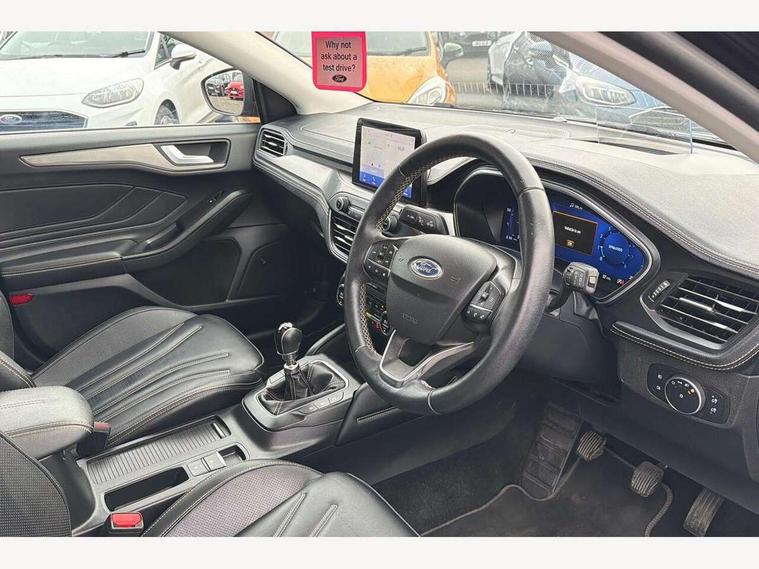 12.3" Digital instrument cluster, Active park assist, Aluminium brushed instrument panel, Bluetooth system, Digital clock, Easy fuel capless refuelling system, Eco mode, Ford SYNC 3 navigation with 8" TFT touchscreen, DAB radio and app link Android auto/Apple carplay, Front and rear parking sensors, Head up Display, Intelligent speed assist, Lane keeping system - lane keeping alert and lane keeping aid, PAS, Rear wide view camera, Selectable drive modes with slippery and trail mode, Trip computer, Wireless charging pad, Raised ride height (30mm higher than standard), 2 USB ports, Aux input, B&O Premium audio system with 360 degree sound, 10 speakers, 675 Watts amplifier power & digital sound processor, Active branded scuff plates, Active front and rear bumper with unique upper and lower grille, Adaptive full LED headlamps with dynamic LED headlights, LED turn indicators, glare-free high beam, LED rear tail lamps and LED front fog lights, Auto dimming rear view mirror, Auto headlamps (on/off), Automatic rain sensing wipers, Black painted roof and mirror caps, Body coloured bumpers, Body coloured door handles, Door edge protectors, Electrically operated and heated door mirrors with side indicators, Electrically operated front and rear windows with one touch opening and closing, Front variable intermittent wipers with electric wash, Heated rear window, LED daytime running lamp, Openable panorama roof, Power folding door mirrors with puddle lights, Quickclear heated windscreen, Rear privacy glass, Tailgate wash/wipe, Twin exhaust pipes, Unique door and instrument panel inserts, Unique skid plates and side rocker mouldings, 3 spoke leather trimmed steering wheel with integrated audio controls, 6 way power adjustable driver seat, Ambient LED multi colour interior lighting, Driver's lumbar support, Dual zone electronic air temperature control, Front and rear floor mats with blue stitching, Front passenger seat manual height adjust, Heated driver and front passenger seats, Heated steering wheel, Height adjustable front headrests, Isofix child seat preparation, Leather gear knob with high gloss black insert, Load through ski hatch, Reach + rake adjustable steering column, Rear centre headrest, Sensico partial premium leather upholstery, Soft console knee pads with blue stitching, Vignale leather steering wheel, 3x3 point rear seatbelts, ABS+Electronic Brake force Distribution, Auto hold function, Driver airbag, Electronic parking brake, Electronic stability control, Front and rear seatbelt reminder, Front inertia reel height adjustable seatbelts with pre-tensioners, Front passenger airbag, Front side airbags, Hill start assist, Passenger airbag deactivate switch, Post collision braking, Power child locks on rear doors, Pre collision assist with autonomous emergency braking and pedestrian/cyclist detection, Side curtain airbags, Three rear inertia reel lap/diagonal seatbelts, Tyre pressure monitoring system, Ford keyfree system with Keyless entry and keyless start/sleep mode key fob, MyKey system, Remote central locking & engine immobiliser, Thatcham category 1 alarm, 18" 5x2 spoke absolute black machined painted alloy wheels, Mini steel spare wheel,