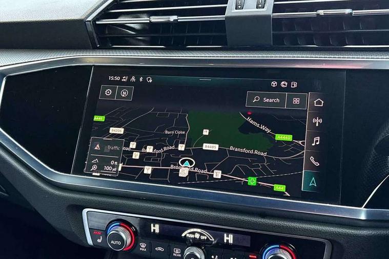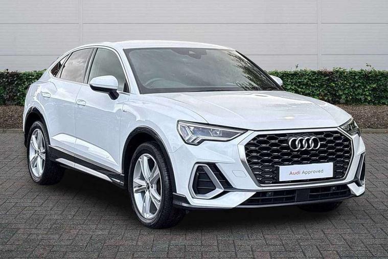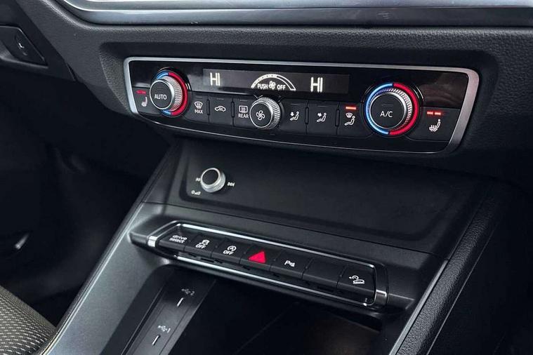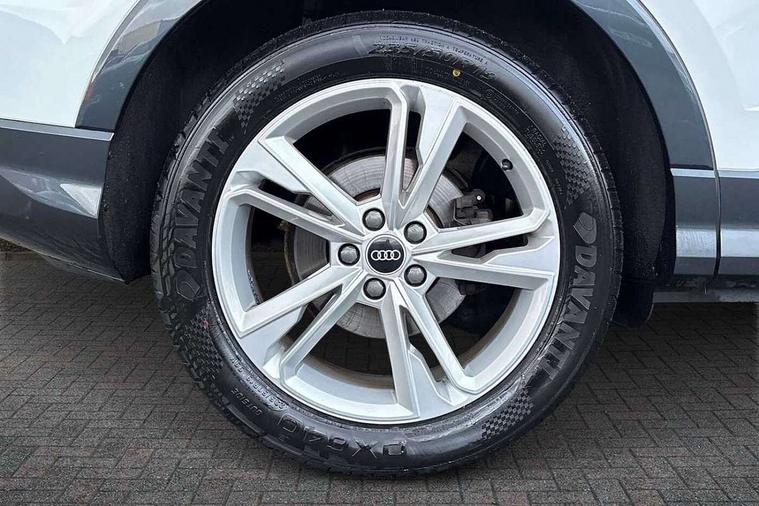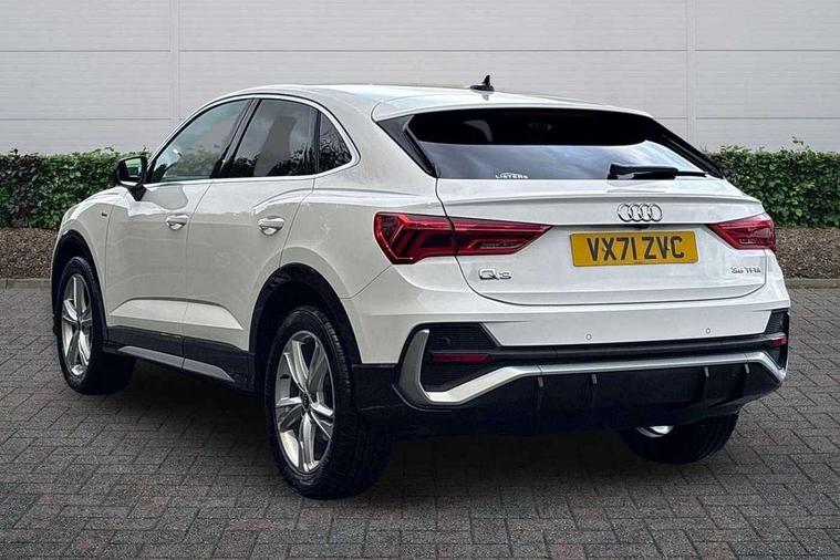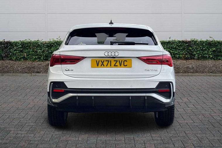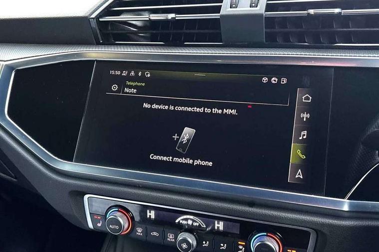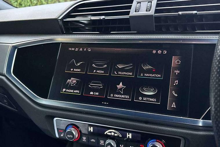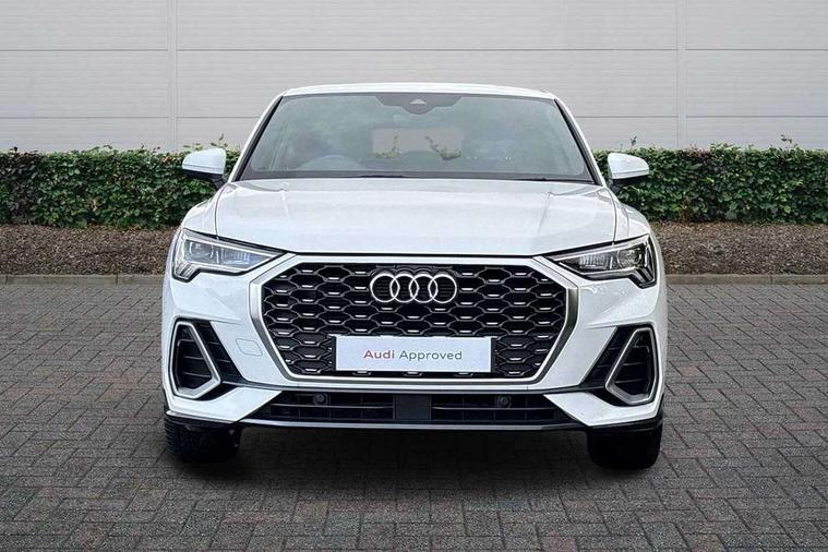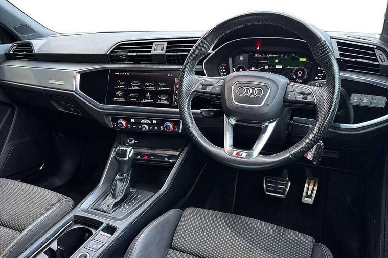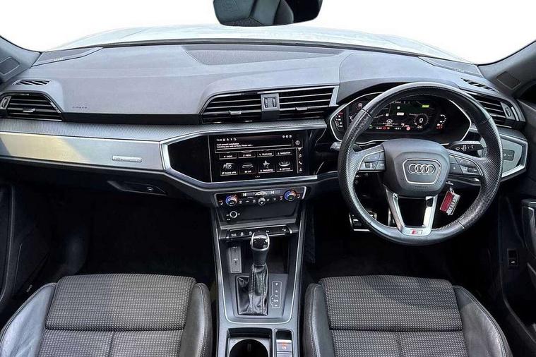 Audi connect safety and service (e-call), Audi drive select, Audi lane departure warning, Audi smartphone interface includes wireless Apple carplay/Android Auto, Audi Virtual Cockpit - 10.25" display, Bluetooth interface, Camera based traffic sign recognition, MMI Navigation Plus with high resolution 10.1 inch touchscreen colour display, Power operated tailgate, Progressive steering, Service interval indicator, Start stop system with recuperation, Voice control system with natural language interaction, 48V Mild hybrid technology, Sports suspension, 2 USB-C ports with charge and data functions, 6 passive loudspeakers, DAB digital radio module, Acoustic windscreen, Aluminium window trim, Auto dimming frameless rear view mirror, Diffuser grille in grained matt black, Diffuser trim in selenite silver, Electrically folding, adjustable and heated door mirrors with integrated LED side indicators and kerb view function for passenger side, Front and rear electric windows, Front fog lights, Front side air inlets in selenite silver, Front underbody protection in manhattan grey paint finish, Grille surround in aluminium silver matt, High gloss black finish B and C pillars, LED headlights with LED daytime running lights and dynamic rear indicator, LED rear lights, Privacy glass dark tinted rear and rear-side windows (from B-pillar backwards), Radiator grille in titanium black with inlay in matt aluminium silver, Rain and light sensors, Rear underbody protection in matt black, S line badges on front wings, Side skirt insert in matt Platinium grey, 12V socket in rear centre console, 40:20:40 folding with manual adjustment for 60:40 forwards/backwards position and backrest angle, Adjustable rear seat bench/backrest with centre armrest and cupholder, Black cloth headlining, Dual zone electronic climate control, Front and rear black floor mats with contrast stitching, Front and rear headrests, Front and rear roof module including reading lights, Front centre armrest, Glove compartment lighting, Height and reach adjustable steering wheel, Illuminated door sill trims with S logo, ISOFIX child seat mounting for front passenger with airbag deactivation and outer rear seat including top tether attachment point for outer rear seats, Luggage compartment light, Manual front seats with height adjustment, Perforated leather gearknob, Stainless steel luggage compartment sill finisher, Stainless steel pedals, Tool kit, Non smoking pack - Q3, 3x3 point rear seatbelts, 6 airbags - Driver, front passenger, curtain and side windows, Electrically operated child locks on rear doors, Electromechanical parking brake, Electronic stabilisation control including ABS, ASR and EDL, Hill descent control, Hill hold assist, Pre sense basic, Seatbelt monitoring, Tyre pressure warning, Warning triangle and first aid kit, Anti theft alarm, Anti theft wheel bolts, Audi pre-sense front with pedestrain and cyclist recognition, Remote central locking, Black dashboard, Dark matt brushed aluminium inlay, Leatherette door armrest, MMI touch colour display in glass look, black with surround in aluminium look, Tyre repair kit,