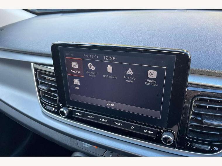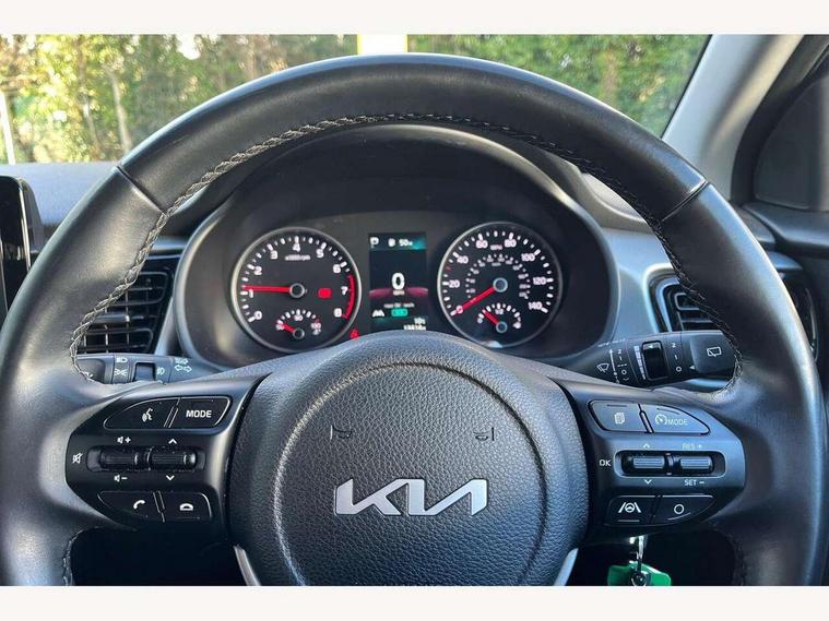 8" touch screen, Apple car play/Android Auto, Cruise control + speed limiter, Digital clock, Drive mode selector, Electric power steering, Emergency call service, Emergency stop signalling system, Gear selection indicator, Manual speed limit assist (MLSA), Outside temperature display, Rear parking sensor, Reversing camera system with dynamic guidelines (Integrated into centre fascia screen), Tachometer, Tailgate, Trip computer, Voice control system, Windscreen washer level indicator, Intelligent Stop and Go, 6 speakers, Bluetooth connectivity including audio streaming, DAB Digital radio, Front USB port for media connection, Rear USB port, Steering wheel mounted audio controls, 3rd brake light, Aeroblade-type front wipers, Automatic lighting control, Bi-function projection headlights, Black grille with chrome surround, Body colour bumpers, Body colour door handles, Body coloured door mirrors, Cornering light, Electric adjustable/heated/folding door mirrors, Front electric windows with driver's auto up/down function, Headlamp levelling, Heated rear window, LED daytime running lights, LED indicators in door mirrors, Projection front fog lights, Rain sensor, Rear electric windows, Rear fog lamp, Rear side wing doors, Rear wash/wipe, Speed variable front wipers, Tinted glass, Welcome home function, 3 passenger assist grips, 3 seat bench in 2nd row, 60/40 split/folding 2nd row of seats, Air conditioning, All round height adjustable headrests, Centre Console with Storage Box and Sliding Armrest, Dash illumination dimmer switch, Driver's seat height adjuster, Driver/passenger sunvisors and illuminated vanity mirrors, Front and rear door map pockets with bottle holder, Front passenger seatback pockets, Front USB charger port and 12V socket, ISOFIX top tethers and lower anchor points, Leather trimmed gearshift, Leather trimmed steering wheel, Load area light, Luggage area parcel shelf, Luggage hooks, Overhead console with sunglasses holder, Premium cloth upholstery, Silver interior door handles, Single front passenger seat, Tilt/telescopic adjustable steering wheel, Advanced driving assistance pack - Rio, 3-point front seatbelts, 3x3 point rear seatbelts, ABS with Electronic Brakeforce Distribution (EBD) and Brake Assist System (BAS), Automatic unlocking of doors in case of impact, Cornering brake control (CBC) and Straight line stability (SLS), Electronic stability control (ESC) and vehicle stability management (VSM), Front seatbelt pretensioners + load limiters, Height adjustable front seatbelt anchors, Hill start assist control (HAC), Passenger airbag deactivate switch, Rear child proof door locks, Seatbelt warning, Traction control, Twin curtain airbags, Twin front airbags, Twin front side airbags, Tyre pressure monitoring system, Anti theft alarm, Deadlocking system, Engine immobiliser, Locking wheel nuts, Remote central door and tailgate locking with fold-away key, Speed sensitive auto door locking, Visible vehicle identification number, Silver fascia trim, 15" Alloy wheels, Tyre mobility system,