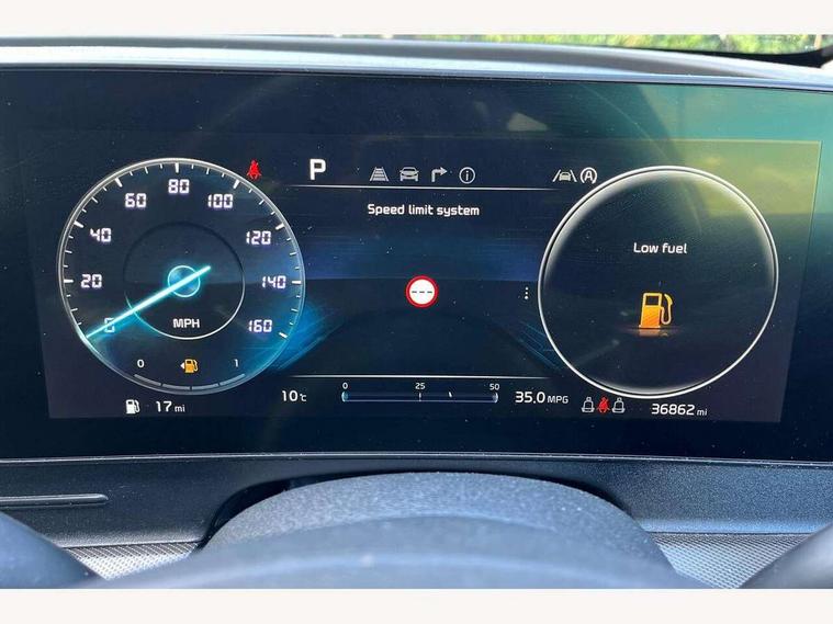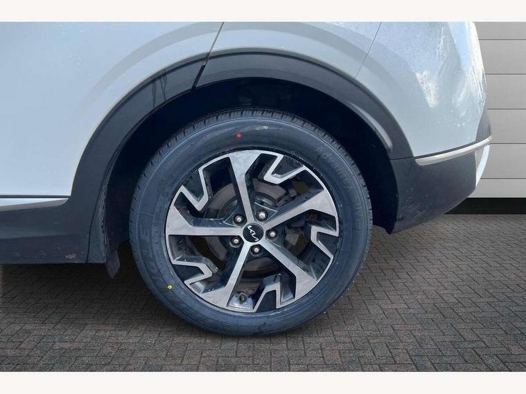 12.3" Display with navigation, 12.3" supervision colour cluster display, Apple car play/Android Auto with voice control, Drive mode selector, E-call, Forward collision avoidance assist (FCA) - city/pedestrian/cyclist/junction covering, Front and rear parking sensors, Highway Driving Assist (HDA), Intelligent speed limit assist, Kia Connect (UVO), Lane Following Assist (LFA), Lane keep assist, Low washer fluid warning, Rear view monitor, Reversing camera system integrated into centre fascia screen, Smart cruise control with stop and go functionality, Speed sensitive power steering, Trip computer, Windscreen washer level indicator, Intelligent Stop and Go, 6 speaker audio system, Bluetooth audio streaming, DAB Radio with MP3, Rear USB port, Steering wheel mounted audio controls, USB C type charging ports on centre console, USB C type charging ports on side of front seats, USB port for connection of a media device, All round electric windows with drivers and front passenger auto up/down function, Automatic headlight control system, Automatic window defogger, Backlite glass heated with timer, Black side sill and wheel arch body mouldings, Body colour and black bumper with silver accents, Body colour door mirrors, Body colour exterior door handles, Electrically adjustable/heated/folding door mirrors with LED indicators, High beam assist, Interior electrochromic mirror, LED daytime running lights, LED front fog lamps, LED headlamps (low and high beam - MFR type), LED High mounted stop light, Rain sensing wipers with aero blades, Rear fog lamp, Rear privacy glass, Rear side wing doors, Rear skid plate - silver, Rear spoiler, Rear wiper, Satin finished beltline, Silver radiator upper garnish and door garnish, Silver roof rack, Tinted rear glass, Trailer stability assist, 12V power socket in front centre fascia and luggage compartment, 2nd row personal lamps, 3 seat bench in 2nd row, 3 x passenger assist grips, 40/20/40 split folding rear seat, All-round height adjustable headrests, Centre console storage box, Cloth/faux leather upholstery, Cupholders in rear armrest, Door courtesy lamps, Drink holder at centre armrest, Driver and front passenger side sunvisors with illuminated vanity mirrors, Drivers seat power lumbar support, Dual zone climate control, Electric height adjustable front seats, Front and rear door storage, Front seat and rear pockets, Front/rear centre armrests, Gear shift indicator, Glovebox illumination, Heated front and outer rear seats, Heated steering wheel, Interior door lock/unlock function, ISOFIX Child seat top tethers and anchor fixings outer rear seats, Leather steering wheel, Luggage area light, Luggage area load cover, Luggage net with hooks, Metal paint interior door handles, Overhead console lamp, Paddle shift controls, Rear cabin light, Rear coat hooks, Single front passenger seat, Tilt/telescopic adjustable steering wheel, Ventilation ducts to rear compartment, Active front headrests, All round 3-point seatbelts, Anti-lock braking system (ABS), Dual front side airbags, Dual horn, Electronic parking brake, Electronic stability control with downhill brake control, Front passenger airbag cut-off switch, Front seatbelt pretensioners + load limiters, Height adjustable front seatbelts, Hill start assist control (HAC), Impact sensing auto door unlocking, Multi collision brake assist, Rear door child safety locks, Rear seat alert system, Traction control, Twin curtain airbags, Twin front airbags, Tyre pressure monitoring system, Advanced anti-theft system including immobiliser and alarm, Door deadlocks, Engine Start/Stop Button with Smart Entry System, Locking wheel nuts, Speed sensitive auto door locking, Visible vehicle identification number, Aluminium pattern finish centre fascia and door garnish, 18" Alloy wheels, Tyre mobility kit,