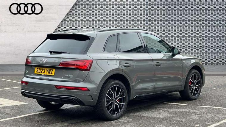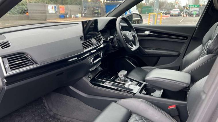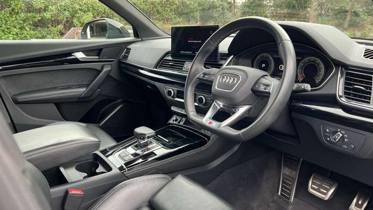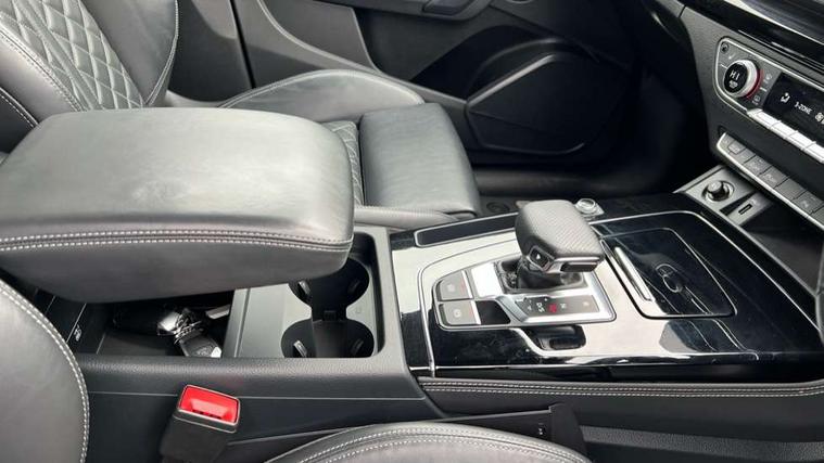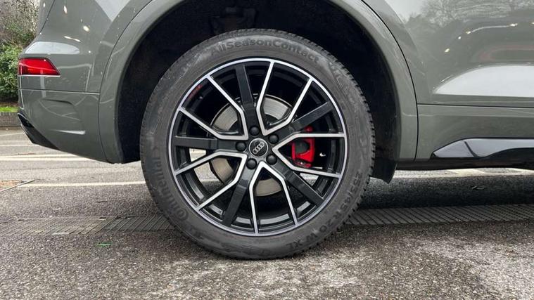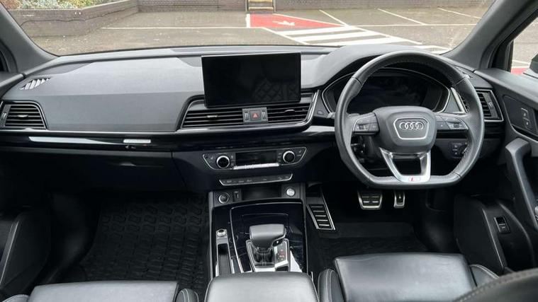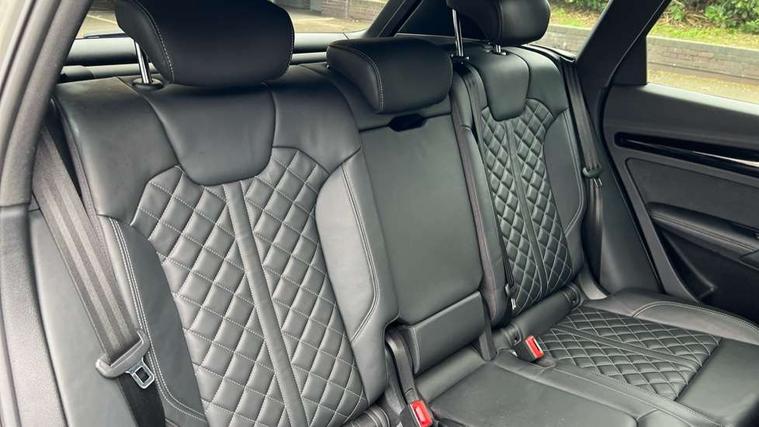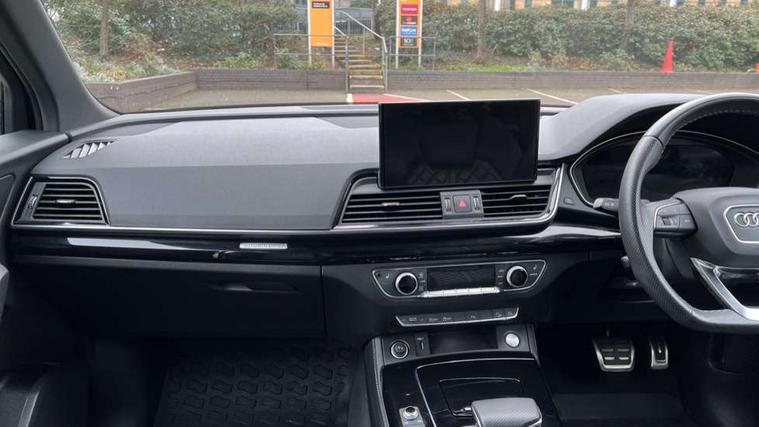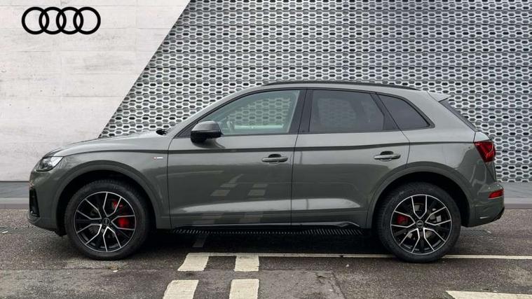 Acoustic front and rear parking sensor, Audi connect safety and service (e-call), Audi connect with Amazon Alexa Integration, Audi drive select, Audi virtual cockpit plus with 12.3" screen and three different layout designs, Audi wireless smartphone interface, Automatic start-stop system with coasting functionality and efficiency programme, Bluetooth interface, Electro - mechanical power assisted steering, MMI navigation plus with 10.1" touch screen, Power tailgate, Reversing camera, Service interval indicator, Voice control system with Audi hotword activation "Hey Audi", Diesel particulate filter, Quattro on demand, S line sports suspension, 8 loudspeakers, DAB Digital radio, Acoustic windscreen, Audi matrix LED headlights with dynamic front and rear indicators, Audi rings at front and rear in black, Audi rings decal on rear doors, Auto dimming door mirrors, Auto dimming frameless rear view mirror, Automatic headlight adjustment, Automatic headlights and windscreen wipers, Black roof rails, Body colour bumpers, Body colour underbody protection, Chrome plated exhaust trims, Daytime running lights, Door sills in Selenite silver, Electric adjustable/heated/folding door mirrors, Front air inlet surrounds in anthracite black, Front and rear electric windows, Headlight washers, High gloss black B pillar trims and triangular rear door trim, High level LED brake light, Rear chrome trim strip below lights, Rear privacy glass and rear side windows, Rear side wing doors, Rear wiper, Roof bars, S Line rear spoiler, 2 x USB charging port with aux input socket, 3 rear headrests, 4 way electric lumbar support for driver and front passenger, 40:20:40 split folding 3 rear bench seat in 2nd row with rear centre armrest, Black cloth headlining, Comfort front centre armrest, Contrast stitching on seats, steering wheel and gear lever gaiter, Deluxe 3 zone electronic climate control, Electrically adjustable front seats, Fine Nappa leather upholstery with diamond pattern contrast stitching + front sport seats with S embossed logo, Front/rear floor mats, Gear lever in black leather, Heated front seats, Height adjustable front head restraints, Height/reach adjustable steering column, Illuminated door sill trims with S logo, Luggage compartment cover, Rear seat bench plus-adjust for forwards/backwards position/backrest angle, cupholders in the armrest, load through hatch and remote backrest release, Removable luggage compartment floor, Single front passenger seat, Stainless steel pedals, Sunvisors with vanity mirrors, Black styling package - Q5 Edition 1, Extended interior upholstery pack - Q5, Extended LED Interior multi coloured Lighting Pack - Q5, 3 point seatbelts on all seats, 6 airbags - Driver, front passenger, curtain and side airbags, Electrically operated child locks on rear doors, Electromechanical parking brake, Electronic stabilisation control including ABS, ASR and EDL, First aid kit with warning triangle and vests, Front and rear brake calipers painted in red, Front passenger airbag deactivation, Hill descent control, Hill hold assist, ISOFIX child seat mounting for front passenger seat and ISOFIX child seat mounting with Top Tether for outer rear seats, Multi collision brake assist, Pop-up bonnet for pedestrian protection, Pre sense city, Seat belt force limiter, Seatbelt monitoring, Tyre pressure warning, Anti theft alarm, Anti-theft wheel bolts, Keyless Go access/ignition system, Remote central locking, Air vents inserts and centre console in gloss black, Piano black finish inlay,