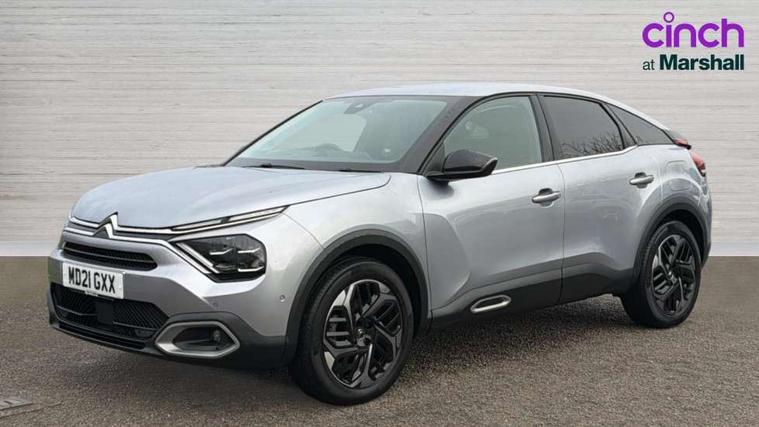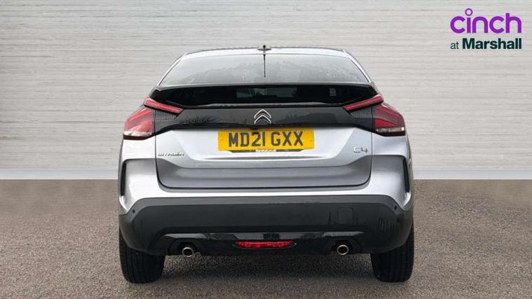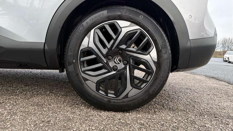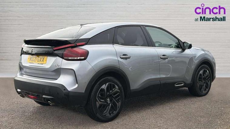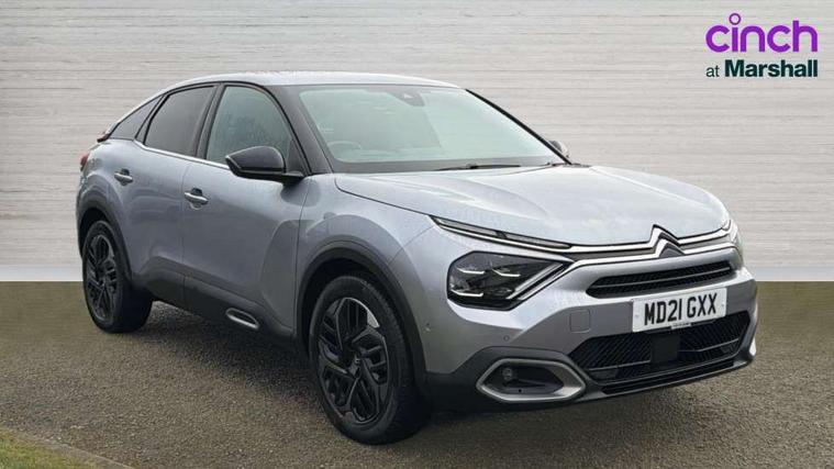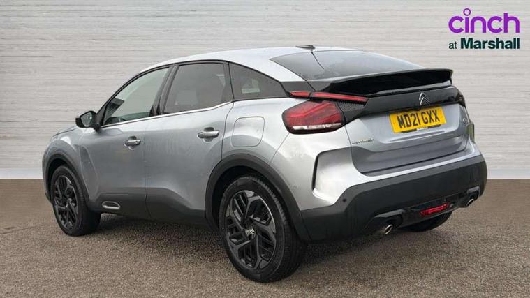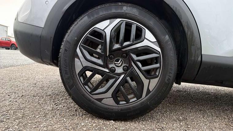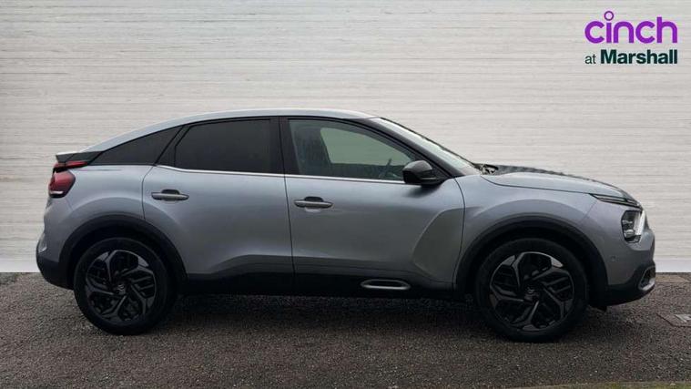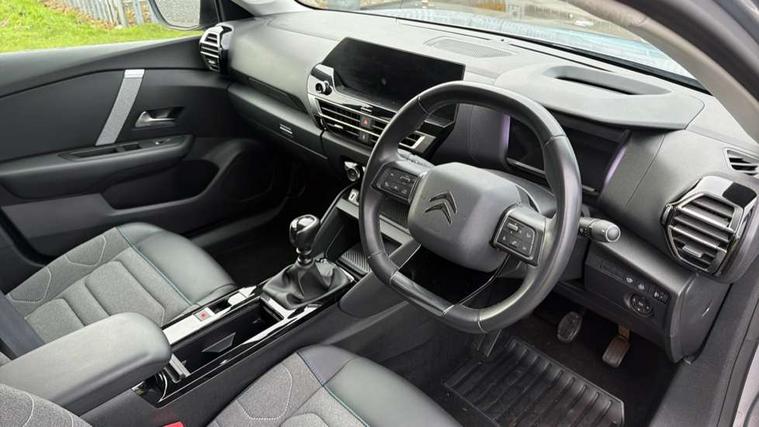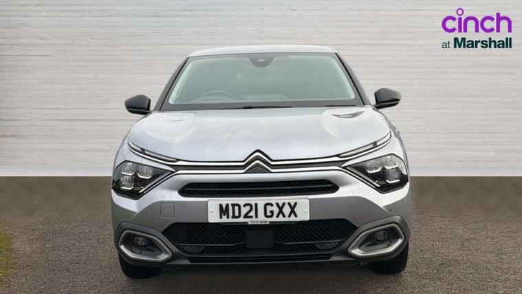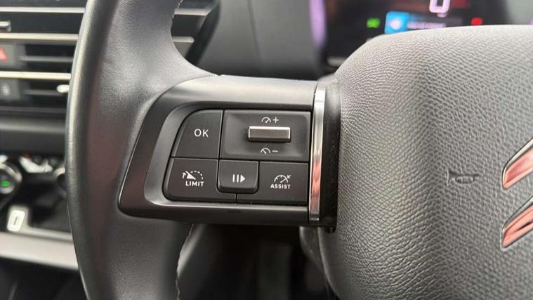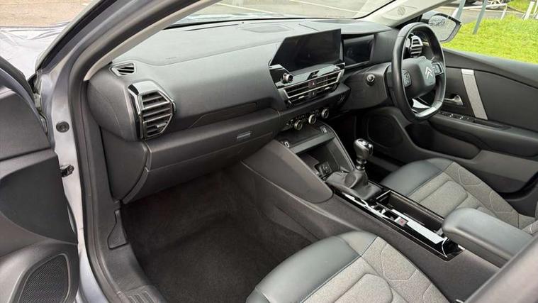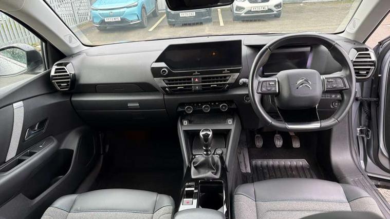 10" high resolution touchscreen user interface, controlling media, connectivity and vehicle settings, 5.5 inch backlit full TFT driver's instrument cluster, Active blind spot detection, Apple car play and Android auto, Citroen connect box emergency and assistance system, Citroen connect nav with speed cam and danger zones alert, Cruise control + speed limiter, Driver's head-up display, Electronic Power Steering (EPS), Front, rear and lateral parking sensors, In-crash braking, Voice commands, Suspension with progressive hydraulic cushions - double hydraulic stops on front suspension and single on rear suspension, Auxiliary input socket, Bluetooth telephone and audio streaming, DAB Digital radio, Body colour bumpers, Body colour door handles, Dark tinted rear windows and side windows with chrome detail, Electrically heated, folding and adjustable external rear view mirrors with courtesy lighting, Electrochrome interior rear-view mirror with automatic day-night switching, Front and rear electric windows, Gloss black rear skirt, Intelligent beam headlights, LED daytime running lights in V signature, LED front fog lamps with static cornering function, LED front headlamps, Obsidian black painted external rear view mirrors, Rain sensing automatic front windscreen wipers, Welcome and goodbye lighting, 12V power outlet, 1x USB Type-C socket charging & data connection and 1x USB Type-A socket in 1st row and 1x USB Type-A socket charging in 2nd row, 3 rear headrests, Boot light, Dashboard tray in front cabin, Deluxe leather steering wheel with two command blocks, Driver and passenger sunvisors with illuminated vanity mirrors, Dual zone automatic air conditioning, Front and rear LED interior lighting, Front head restraints, Height adjustable driver's seat with adjustable lumbar support, Height adjustable front passenger seat, Height and reach adjustable steering wheel, Map pockets in rear of front seats, Raised centre console with two cup holders, Split folding rear seats, Two position boot floor, High level acoustic insulation pack - C4/C4 X/e-C4 X, Safety pack plus - C4 Shine/ Shine Plus, 3x3 point rear seatbelts, ABS, Driver and front passenger airbags, Electric parking brake, ESP, Front seatbelt pretensioners, Hill start assist, Manual child lock in second row, Manual deactivation of front passenger airbag, Post collision safety brake, Row 1 and 2 curtain airbags, Row 1 side thorax airbags, Seatbelt unfastened on the move warning, Tyre underinflation detection, Anti-theft alarm (volumetric protection), Immobiliser, Keyless entry and start, Remote locking with deadlocks, 18" Aeroblade dark alloy wheels and smoke grey finish with anti-theft locking wheel, Puncture repair kit with compressor,