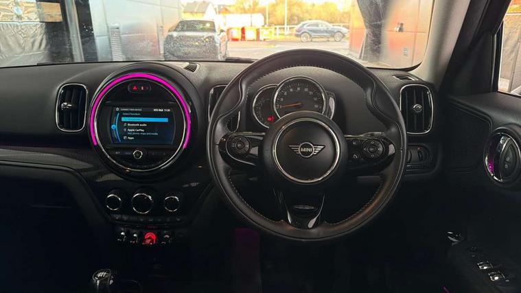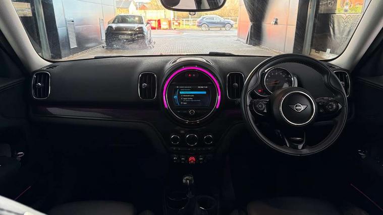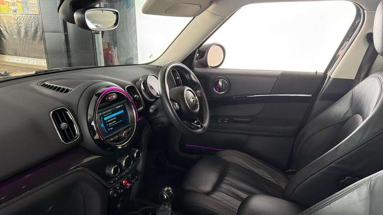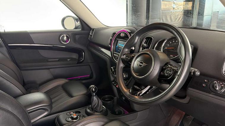 Active Guard incl speed limiting and lane departure functions with auto steering, and front collision warning with brake intervention, Automatic start/stop function with brake energy recuperation, Electro-mechanical speed dependant steering assistance, Instrument cluster, Mini E-call, MINI TeleServices, On board computer, Rear parking distance control, Double Vanos system, Fully variable valve control, High precision injection, Performance Control, FM tuner and DAB digital radio, Bonnet scoop, Chrome border honeycomb structure radiator grille with S badge, Chrome fuel filler cap, Chrome line exterior, Day time driving lights, Dynamic brake lights, Electric windows, Heated rear window, Heated windscreen washer jets, Metal door sill strips with Cooper S imprint, Model logo, Model logo on Tailgate, Rain sensor with auto headlights, Rear fog lights, Rear window wiper, Side scuttle panel with integrated indicator, Split rear doors, Sun/heat protection glass, Twin exhaust tailpipe, White indicator lenses, 12V Accessory socket in centre console, 360L luggage compartment capacity, 4 lashing eyes in luggage compartment, 40:20:40 split folding rear seats, Chrome interior highlights, Cupholders, English handbook, Front headrests, Glove compartment, Height and length steering column adjustment, Isofix rear child seat preparation, Leather gearshift lever and handbrake gaiters, LED reading lights, vanity mirror lights, front foot well light and spotlight on front seats, Manual air conditioning, Mechanical seat adjustment, driver seat height adjust, forward/back and front seats backrest, MINI Yours fine walk nappa leather steering wheel with contrast stitching in silver and MINI Yours badge, Multifunction steering wheel, Passenger seat height adjuster, Rear headrests, Storage compartments in doors, Sunvisors with vanity mirrors, Excitement pack - Countryman, Navigation pack - Countryman, 2 tone horn, 3 point seatbelts on all seats, 6 Airbags - front, side, head and seat belt tensioners, Anti-lock braking system (ABS), DSC - Dynamic Stability Control, Electronic handbrake, Front and rear disc brakes, Hill start assist, Tyre pressure monitoring system, Alarm system with tilt sensor, monitoring doors, bonnet interior and tailgate, Auto drive away locking, Deadlocking function, Electronic vehicle immobiliser, Locking wheel bolts, Start/stop toggle with keyless go, Chrome line interior, Tool kit,