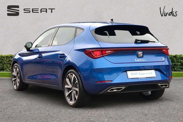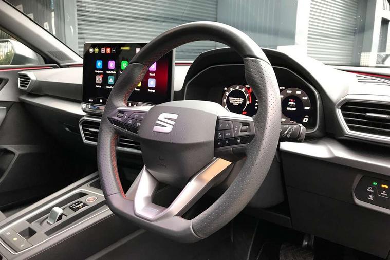 Digital cockpit, E-call, Front assist with forward collision warning braking reaction to vehicles, pedestrians and cyclists, Full link smartphone integration with Mirror Link, wireless Apple CarPlay and wired Google Android Auto, Lane assist, Lockable tailgate, Park assist (inc front/rear parking sensors), Power assisted speed sensitive electro-mechanical steering, Rear view camera, RPM, trip computer, outside temp gauge, instrument light brightness, low fuel warning light, lights on reminder, gearshift indicator, SEAT drive profile with 4 modes (Eco/Normal/Sport/Individual), throttle response and gearshift mode, Service interval indicator, Start/stop system with regenerative braking, Sports suspension, XDS electronic differential lock and dynamic traction support, 7 speakers, Auxiliary input socket, Auto dimming rear view mirror, Body colour door handles, Body coloured bumpers, Dark tinted rear windows, Door mirror LED indicator lights, Dynamic headlight range control, Electric adjustable/heated/folding door mirrors with memory, Electric front/rear windows, FR sports bumper, Illuminated front door sill, LED front fog lamps, LED Headlights with dynamic turn signals, LED tail lights and rear fog lights with rear coast to coast lighting, Rear side wing doors, Rear wash/wipe, Separate daytime running light with automatic headlight control and coming home feature, Third brake light, Welcome light silhouette from exterior mirrors, Windshield wiper intermittent control with light/rain sensor, 12v power point in centre console, 3 seat bench in 2nd row, 60/40 split rear bench seat with armrest, Ambient lighting with glovebox, footwell and single monocolour, Black headlining, Dust/pollen filter, Folding boot cover, Four x USB Type C ports, Front and rear height adjustable headrests, Front and rear reading lights X 4, Front centre armrest, Front seatback storage pockets, Heated front seats, Height/reach adjust steering wheel, Interior wraparound lighting (FR), ISOFIX points in outer rear seats with top tether anchorage points, Luggage tie-down hooks, Lumbar adjustment for front seats, Manual driver seat with memory and height adjustable passenger seat, Microsuede cloth upholstery, Single front passenger seat, Sunvisors with covered illuminated mirror, Three zone climate control, Media system plus with navigation - Leon, 3 point seatbelts on all rear seats, ABS, Brake control system - ESC and brake booster, Child proof door locks, Driver and front passenger airbags with front passenger airbag de-activation, front side and curtain airbags, Electronic parking brake, Extended safety system - seat belt tensioner, window closure and hazard lights, Hill hold control, Rear disc brakes, Seat belt reminder for front and rear seats, Tiredness recognition system, driver alert system, Tyre pressure monitoring system, Anti theft alarm system with interior monitoring in cab, backup horn and towing protection, KESSY Go (Keyless start), Locking wheel bolts, Wireless phone charging, Chrome interior detailing, 18" Performance machined alloy wheels with 92Y tyres, Tool kit,