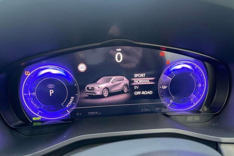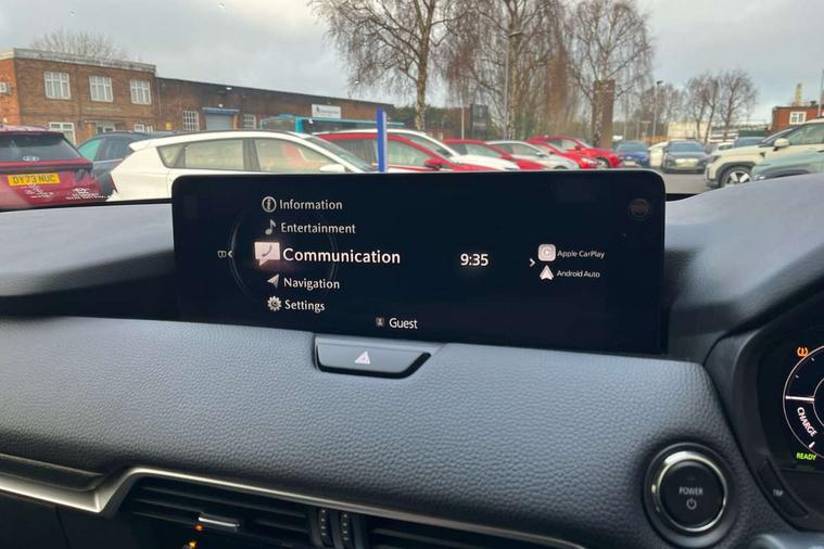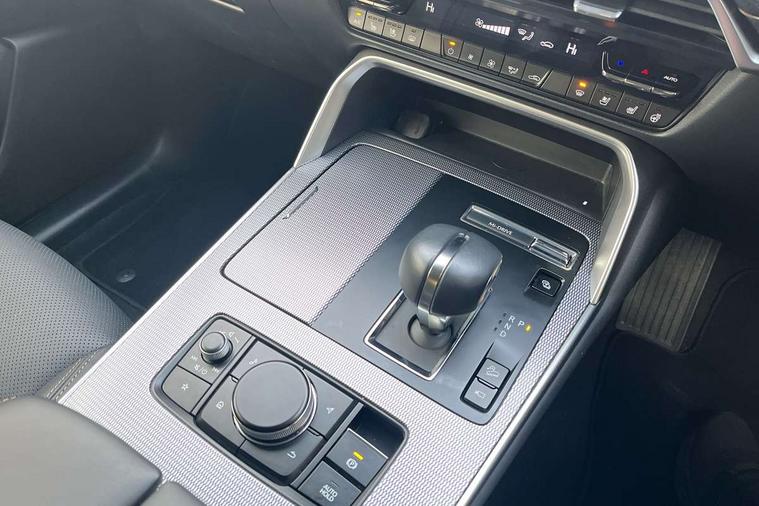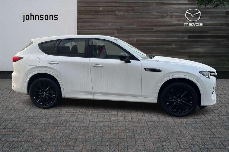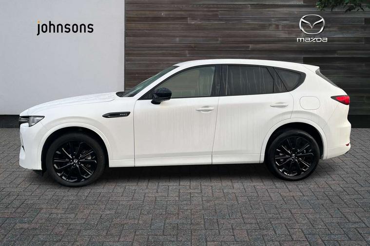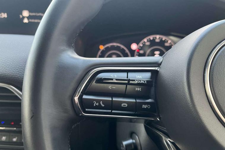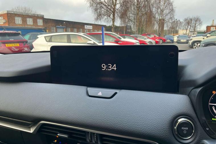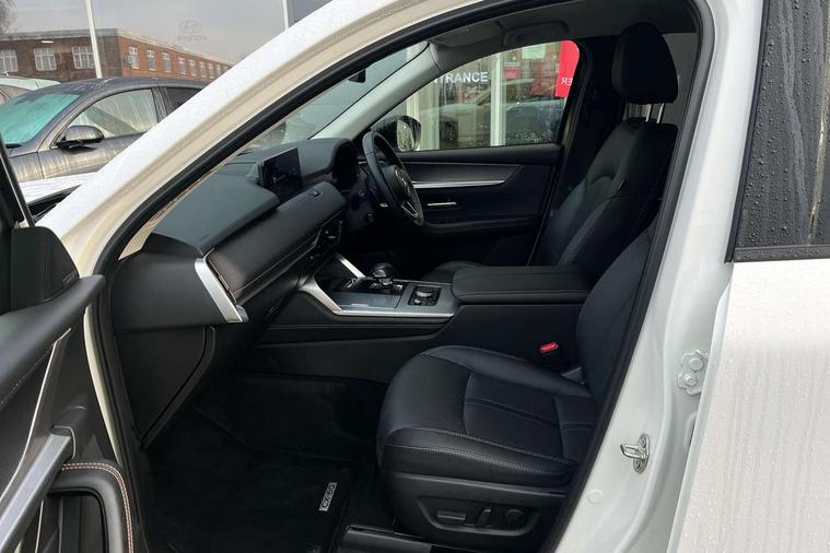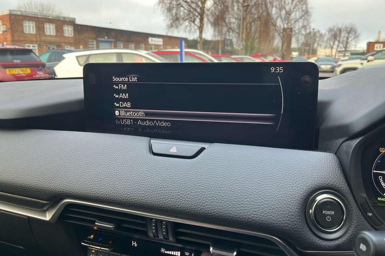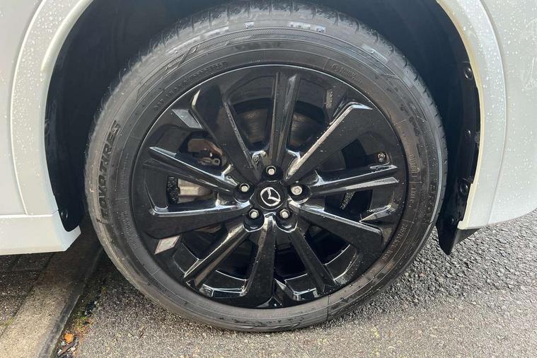 Emergency lane keeping with blind spot assist, Low washer fluid warning light, 12.3" Colour entertainment centre display with mazda connect infotainment, 12.3" TFT Colour display, Adjustable speed limiter, Blind spot assist, Blind spot monitoring with rear cross traffic alert, Cruise control, Distance alert system, Driver attention alert system, Driver Monitoring with personal identification, E-call with GPS, Emergency stop signalling system, Exit warning function, Front and rear parking sensors, Ingress / Egress support and automatic driver position guide, Integrated bluetooth, Intelligent speed assist, Kinematic posture control, Lane keep assist system (LAS) with Lane departure warning system (LDWS), Mazda Driver Personalisation System, Mazda Navigation System with european mapping, Multimedia Commander, PAS, Power lift gate with handsfree function, Power start/stop button, Reversing camera with static guide lines, Speed alert, Traffic sign recognition enhanced with mandated excessive speed warning, Trip computer, Windscreen projected colour active driving display, Wireless apple car play/android Auto, Type 2 Mode 2 cable for AC charging via UK 3-pin plug, 7.2 kw On board Charger, Mi-Drive (Normal, Sport, Off-road, Towing and EV mode), Type 2 Mode 3 cable for AC charging via home or public charge points, AM/FM and DAB radio, Bose surround sound system with 12 Speaker, Bose center point, Bass match and audio pilot technology, Steering wheel mounted audio/bluetooth controls, USB-C inputs (x2 front and x2 rear), Auto dimming driver's door mirror, Automatic headlight levelling, B-pillar and C-pillar garnishes in gloss black finish, Body colour roof spoiler, Body coloured bumpers, Body coloured wheel arch and side mouldings, Coming/leaving home lighting function, Dark plated headlight lense, Dark plating finish signature wing in front grille, Dark plating front side garnish, Differentiated front bumper design to accentuate the intake, Dusk sensing headlights, Electric front/rear windows with one touch auto up/down, Electrically adjustable, heated auto power folding door mirrors with memory, Frameless auto dimming interior rear view mirror, Front kodo turn signal, Front wiper de-icer, Gloss black door mirrors, Headlight washers, High beam control, Honeycomb radiator grille in piano black, LED 3rd brake light, LED headlamps, LED rear signature combination lamps, Rain sensing front wipers with adjustable sensitivity and speed, Rear side wing doors, Rear wiper, Roof pillars and roof lining finished in lighter colour to soften the overall look, Signature LED daytime running lights, Silver decoration panel, 12v power outlet - front, 12V socket in boot, 3 height adjustable rear headrests, 3 seat bench in 2nd row, 40/20/40 split folding rear seats with quick levers in the boot, Ambient lighting, Cargo net, Chrome interior trim accents with steering wheel centre bezel, surround of engine start / stop button and glove box handle, Door panel trim vinyl leather with armrest, Driver and front passenger two rear grab handles with rear coat hooks, Driver and front passenger visors with covered vanity mirror and driver ticket holder, Driver seat electric tilt, slide, recline, height and lumbar adjustment, Driver, front passenger and two rear door pockets, Driver/passenger front seatback pockets, Dual zone climate control air conditioning with rear air vents, Electric telescopic and tilt adjustment steering wheel, Featuring black vinyl leather dashboard trim with titanium coloured accents, Folding rear centre armrest with two cup holders, Front centre storage with two cupholders, Front down lamp with front and rear foot lamps, Front headrests, Front passengers seat electric slide, recline, height and lumbar adjustment, Front seat ventilation with 3-stage setting, Glovebox illumination, Heated front seats with 3 stage setting, Heated leather wrapped steering wheel, Heated outer rear seats with 3-stage setting, ISOFIX child seat anchorage points attached on outer rear seats, Karakuri tonneau cover, Leather upholstery, Leather wrapped gear shift knob, LED illumination luggage compartment, Paddle shift, Practical and spacious front centre armrest storage, Rear seat recline function for rear passenger comfort, Remote fold down rear seats, Roof mounted sunglasses holder, Single front passenger seat, 3 point ELR front seat belts x2 with pretensioners, 3 point ELR rear seat belts, Active bonnet, Anti-lock braking system (ABS), Drivers knee airbag, DSC - Dynamic Stability Control, Electronic parking brake with auto disengage function and auto hold function, Front and rear curtain airbags, Front dual stage driver and single stage front passenger airbags, Front passenger airbag cut-off switch, Front side airbags, Front smart city brake support, Hill decent control, Hill launch assist, Manual rear child locks, Seatbelt reminder for driver/front passenger and rear seats, Traction control, Tyre pressure monitoring system (TPMS), Remote central locking with deadlocking and automatic door lock when driving, Smart keyless entry, Thatcham accredited alarm and immobiliser, Mesh metal film centre console panel, 20" Black metallic alloy wheels, Emergency tyre repair kit,
