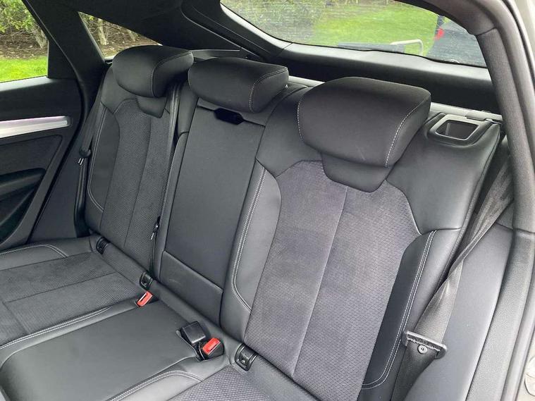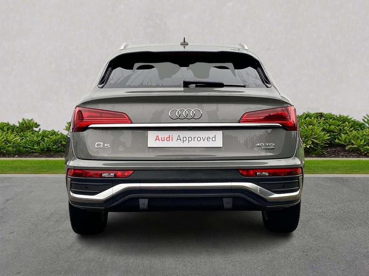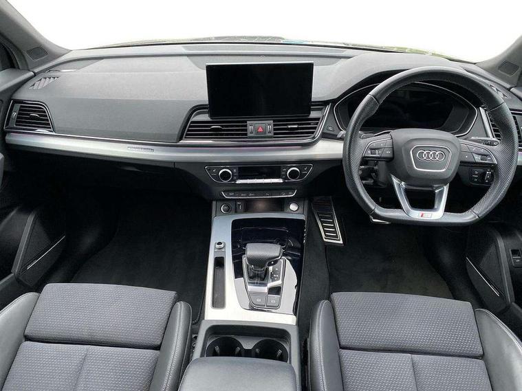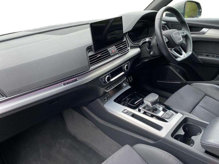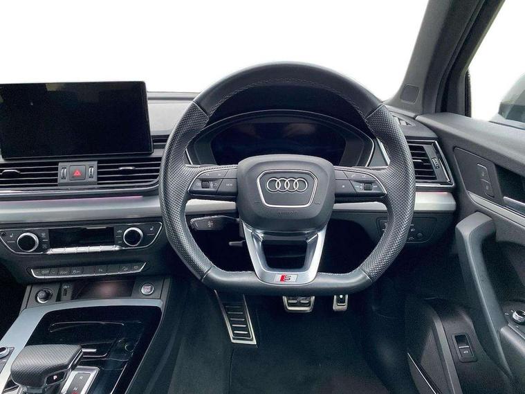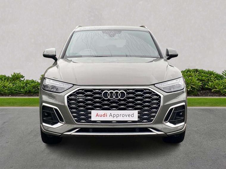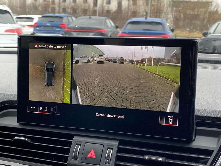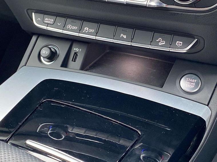 Matt brushed aluminium inlays, Extended LED Interior multi coloured Lighting Pack - Q5, High gloss pack - Q5, Anti theft alarm, Anti-theft wheel bolts, Keyless Go access/ignition system, Bang + Olufsen sound system, DAB Digital radio, 3 point seatbelts on all seats, 6 airbags - Driver, front passenger, curtain and side airbags, Electrically operated child locks on rear doors, Electromechanical parking brake, Electronic stabilisation control including ABS, ASR and EDL, Front passenger airbag deactivation, Hill descent control, Hill hold assist, Multi collision brake assist, Pop-up bonnet for pedestrian protection, Pre sense city, Seat belt force limiter, Seatbelt monitoring, Tyre pressure warning, Warning triangle and first aid kit, Acoustic windscreen, Aluminium roof rails, Audi matrix LED headlights with dynamic front and rear indicators, Auto dimming rear view mirror, Automatic headlights and windscreen wipers, Body colour door mirrors, Body colour rear diffuser with matt aluminium silver surrounds, Body colour underbody protection, Chrome plated exhaust trims, Door sills in Selenite silver, Electric adjustable/heated/folding door mirrors, Front air inlet surrounds in aluminium, Front and rear electric windows, Front radiator grille in honeycomb design, Headlight washers, LED rear lights, Lower bumpers painted in contrast Manhattan grey, Rear chrome trim strip below lights, Rear privacy glass and rear side windows, Rear spoiler, Rear wiper, Roof bars, S Line badges on the front wings, S Line front and rear bumpers, S Line side skirts, 2 x USB charging port with aux input socket, 3 rear headrests, 40:20:40 split folding rear seat with rear centre armrest, Black cloth headlining, Contrast stitching on seats, steering wheel and gear lever gaiter, Deluxe 3 zone electronic climate control, Front centre armrest, Front head restraints, Front/rear floor mats, Gear lever in black leather, Heated front seats, Height/reach adjustable steering column, Illuminated door sill trims with S logo with aluminium inlays, ISOFIX child seat mounting and top tether, Manual seat adjustment with 4-way electric lumbar support, Removable luggage compartment floor, Stainless steel pedals, Sunvisors with vanity mirrors, Trunk roller cover, Acoustic front and rear parking sensor, Advanced key with electric hands free boot opening system, Audi connect safety and service (e-call), Audi drive select, Audi virtual cockpit plus with 12.3" screen and three different layout designs, Audi wireless smartphone interface, Automatic start-stop system with coasting functionality and efficiency programme, Bluetooth interface, Electro - mechanical power assisted steering, MMI navigation plus with 10.1" touch screen, Power tailgate, Reversing camera, Service interval indicator, Voice control system with Audi hotword activation "Hey Audi", Diesel particulate filter, Quattro on demand,