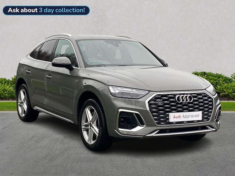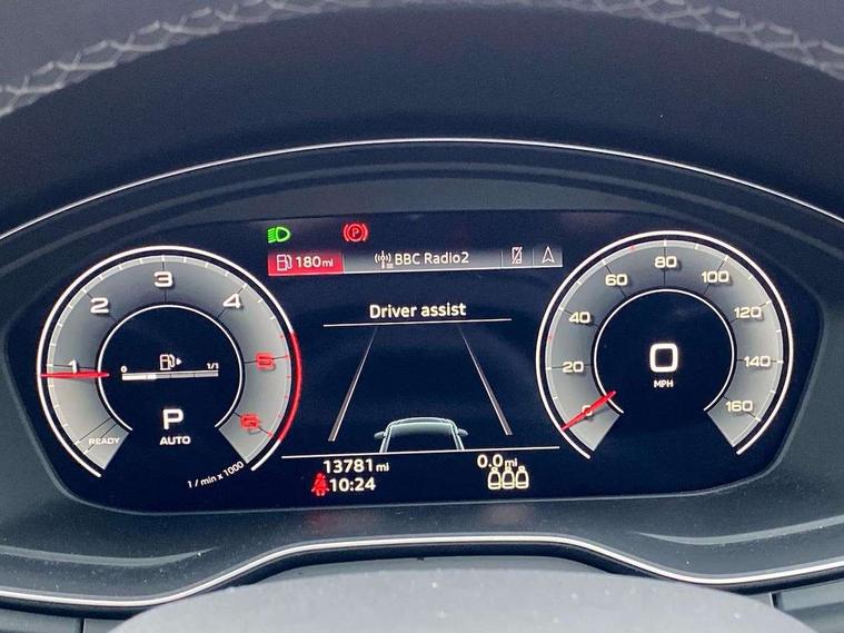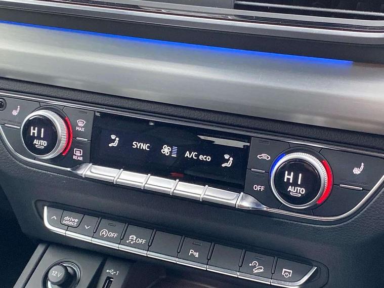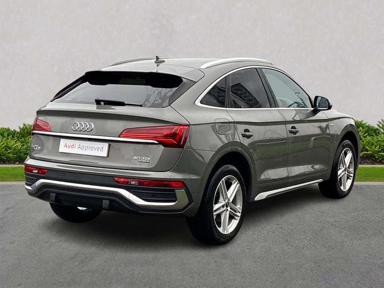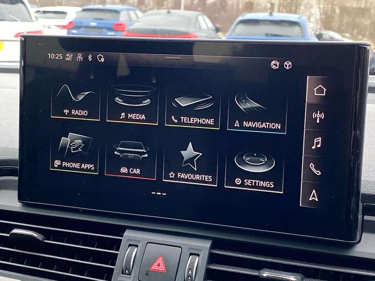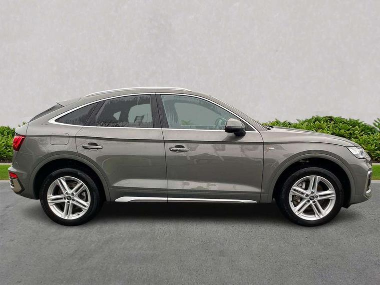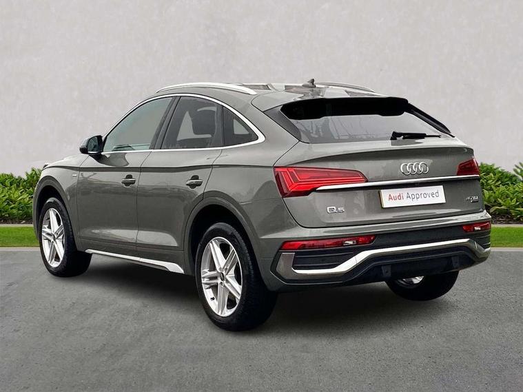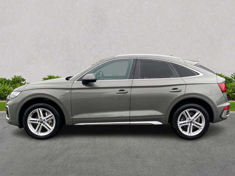 Matt brushed aluminium inlays, Extended LED Interior multi coloured Lighting Pack - Q5, High gloss pack - Q5, Anti theft alarm, Anti-theft wheel bolts, Keyless Go access/ignition system, Bang + Olufsen sound system, DAB Digital radio, 3 point seatbelts on all seats, 6 airbags - Driver, front passenger, curtain and side airbags, Electrically operated child locks on rear doors, Electromechanical parking brake, Electronic stabilisation control including ABS, ASR and EDL, Front passenger airbag deactivation, Hill descent control, Hill hold assist, Multi collision brake assist, Pop-up bonnet for pedestrian protection, Pre sense city, Seat belt force limiter, Seatbelt monitoring, Tyre pressure warning, Warning triangle and first aid kit, Acoustic windscreen, Aluminium roof rails, Audi matrix LED headlights with dynamic front and rear indicators, Auto dimming rear view mirror, Automatic headlights and windscreen wipers, Body colour door mirrors, Body colour rear diffuser with matt aluminium silver surrounds, Body colour underbody protection, Chrome plated exhaust trims, Door sills in Selenite silver, Electric adjustable/heated/folding door mirrors, Front air inlet surrounds in aluminium, Front and rear electric windows, Front radiator grille in honeycomb design, Headlight washers, LED rear lights, Lower bumpers painted in contrast Manhattan grey, Rear chrome trim strip below lights, Rear privacy glass and rear side windows, Rear spoiler, Rear wiper, Roof bars, S Line badges on the front wings, S Line front and rear bumpers, S Line side skirts, 2 x USB charging port with aux input socket, 3 rear headrests, 40:20:40 split folding rear seat with rear centre armrest, Black cloth headlining, Contrast stitching on seats, steering wheel and gear lever gaiter, Deluxe 3 zone electronic climate control, Front centre armrest, Front head restraints, Front/rear floor mats, Gear lever in black leather, Heated front seats, Height/reach adjustable steering column, Illuminated door sill trims with S logo with aluminium inlays, ISOFIX child seat mounting and top tether, Manual seat adjustment with 4-way electric lumbar support, Removable luggage compartment floor, Stainless steel pedals, Sunvisors with vanity mirrors, Trunk roller cover, Acoustic front and rear parking sensor, Advanced key with electric hands free boot opening system, Audi connect safety and service (e-call), Audi drive select, Audi virtual cockpit plus with 12.3" screen and three different layout designs, Audi wireless smartphone interface, Automatic start-stop system with coasting functionality and efficiency programme, Bluetooth interface, Electro - mechanical power assisted steering, MMI navigation plus with 10.1" touch screen, Power tailgate, Reversing camera, Service interval indicator, Voice control system with Audi hotword activation "Hey Audi", Diesel particulate filter, Quattro on demand,