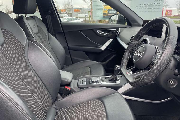 Audi connect navigation and infotainment includes innovative services, Audi connect remote and control connects your vehicle to your smartphone, Audi drive select - Power steering assistance + engine + gearshift, Audi drive select with efficiency, Audi smartphone interface, Audi virtual cockpit, Automatic start/stop system with recuperation, Bluetooth interface includes bluetooth audio streaming, Cruise control, E-call, MMI navigation plus with MMI touch, Power operated tailgate, Progressive steering, Rear parking sensors, 2 x SDXC card reader, 6 passive loudspeakers, DAB Digital radio, DVD Drive, Auto dimming rear view mirror, Black window trims, Bumper in full body colour paint finish, Electrically adjustable, folding, auto dimming and heated door mirrors with integrated LED side indicators, Front windscreen with grey tinted sunband, LED daytime running lights, LED headlights with LED rear lights, LED third brake light, Privacy glass - dark tinted rear and rear side windows from B-pillar backwards, Rear side wing doors, Rear wiper, Variable front intermittent wipers, Wheel arch trims in manhattan grey, 12V socket in front, 3 seat bench in 2nd row, 3 spoke flat bottomed multi-function leather sport steering wheel with gear shift paddles, 4-way electric lumbar support for front seats including seat height adjustment for both front seat, 60/40 split folding rear seat bench, Black cloth headlining, Front and rear head restraints, Front centre armrest, Front/rear floor mats, Height/reach adjust steering wheel, Illuminated door sill trims with S logo, ISOFIX child seat mounting in front passenger and rear outer seats, Single front passenger seat, Stainless steel pedals, Black styling pack - Q2, 3x3 point rear seatbelts, 6 airbags - Front, curtain and front side airbags, Electromechanical parking brake, Electronic stabilisation control including ABS, ASR and EDL, Front passenger airbag deactivation, Hill hold assist, Pre-sense front with pedestrian recognition, Seatbelt monitoring, Tyre pressure warning light, Warning triangle and first aid kit, Anti theft alarm, Anti theft wheel bolts, Electronically operated child locks, Remote central door locking, Aluminium interior element, Matt brushed aluminium trim inlays, Tool kit,