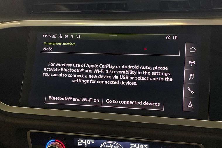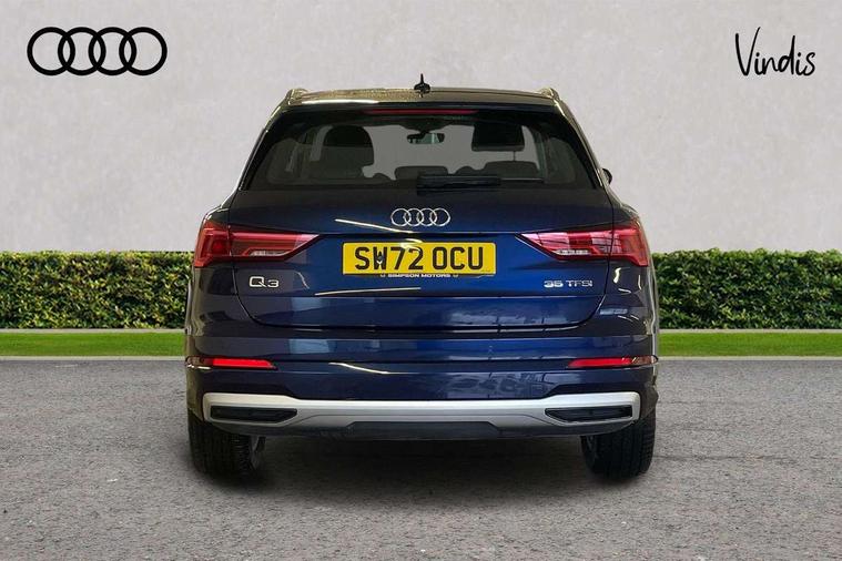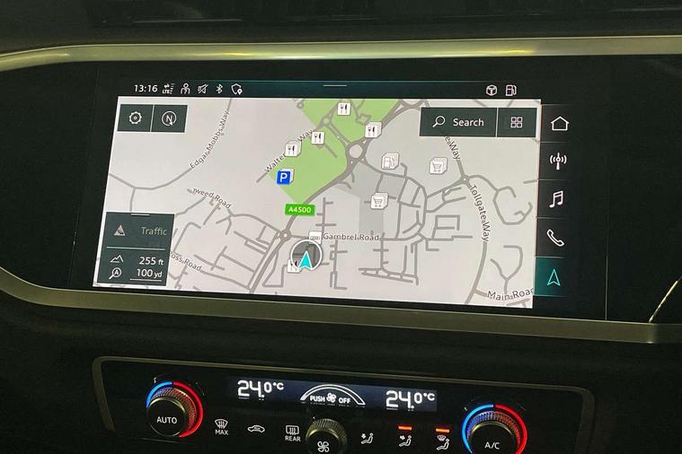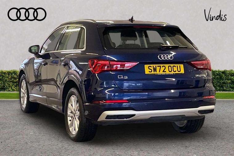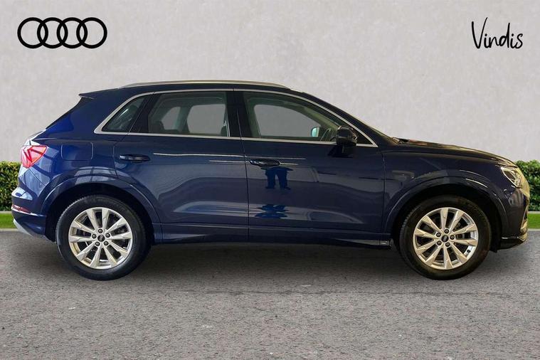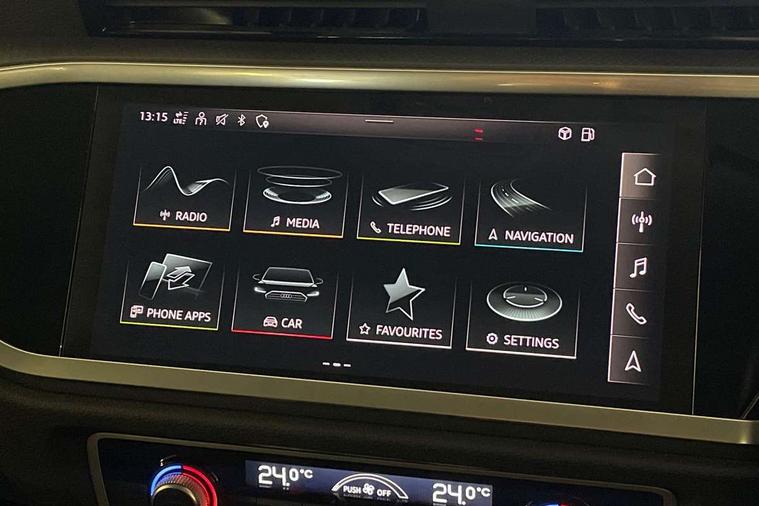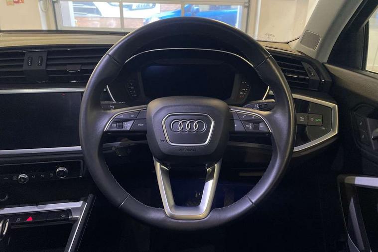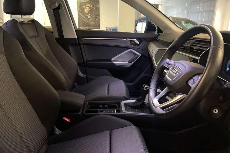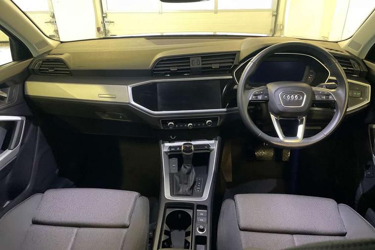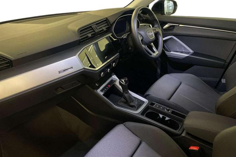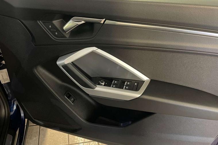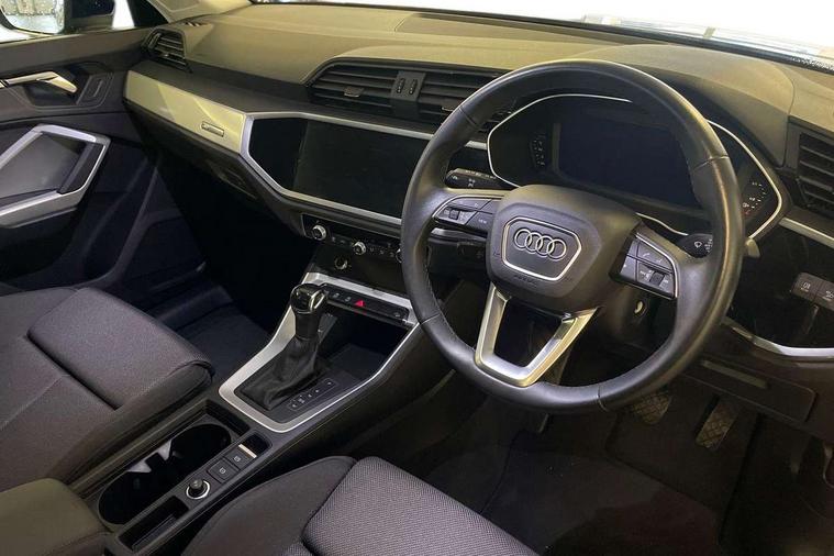 Amazon alexa Integration, Audi connect safety and service, Audi drive select, Audi lane departure warning, Audi Virtual Cockpit - 10.25" display, Bluetooth interface, Camera based traffic sign recognition, Distraction and Fatigue warning, Legal emergency call, MMI Navigation Plus with high resolution 10.1 inch touchscreen colour display, Phonebox light with wireless charging, Power operated tailgate, Progressive steering, Reversing camera, Service interval indicator, Smartphone interface includes wireless Apple carplay/Android Auto, Start stop system with recuperation, Voice control system with natural language interaction, Standard suspension, 2 USB-C ports with charge and data functions, DAB digital radio module, SONOS premium sound system, Acoustic windscreen, Aluminium roof rails, Aluminium window trim, Anthracite black radiator grille, Auto dimming door mirrors, Auto dimming frameless rear view mirror, Electrically folding, adjustable and heated door mirrors with integrated LED side indicators and kerb view function for passenger side, Front and rear bumpers, wheel arch trims and side sill trims in contrasting Manhattan grey paint finish, Front and rear electric windows, Front fog lights, Front side air inlets in matt selenite silver, Front spoiler in matt selenite silver, Grille vertical bars in aluminium silver/Matt, High gloss black finish B and C pillars, LED headlights with LED daytime running lights, LED third brake light, Rain and light sensors, Rear diffuser strip in matt selenite silver, Rear side wing doors, Rear wiper, Variable front intermittent wipers, 12V socket in rear centre console, 3 seat bench in 2nd row, 3 spoke multi-function leather steering wheel, 40:20:40 folding with manual adjustment for 60:40 forwards/backwards position and backrest angle, Black carpet mats, Door sill trims with aluminium inlay, Dual zone electronic climate control, Electric lumbar support, Front and rear floor mats, Front and rear headrests, Front centre armrest, Heated front seats, Height and reach adjustable steering wheel, ISOFIX child seat mounting for front passenger with airbag deactivation and outer rear seat including top tether attachment point for outer rear seats, Luggage compartment sill protection in stainless steel, Lunar silver cloth headlining, Manual front seats with height adjustment, Single front passenger seat, Non smoking pack - Q3, 3x3 point rear seatbelts, 6 airbags - Driver, front passenger, curtain and side windows, Audi pre-sense front with pedestrain and cyclist recognition, Electrically operated child locks on rear doors, Electromechanical parking brake, Electronic stabilisation control including ABS, ASR and EDL, Front seatbelt reminder, Hill descent control, Hill hold assist, Pre sense basic, Seatbelt monitoring, Tyre pressure warning, Warning triangle and first aid kit, Anti theft wheel bolts, Immobiliser, Remote central locking, Thatcham approved category 1 anti theft alarm, Aluminium look interior elements, Detail dashboard around MMI touch colour display in glass look, black with surround in aluminium look, Micrometallic silver inlay,