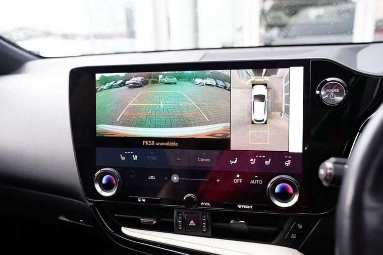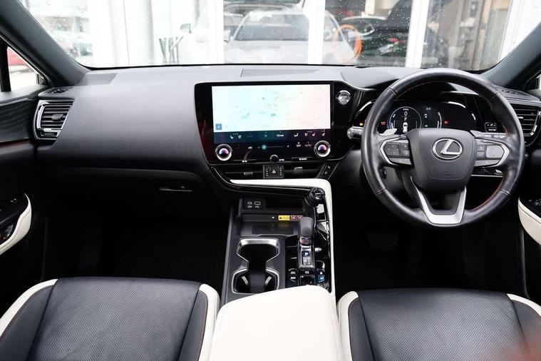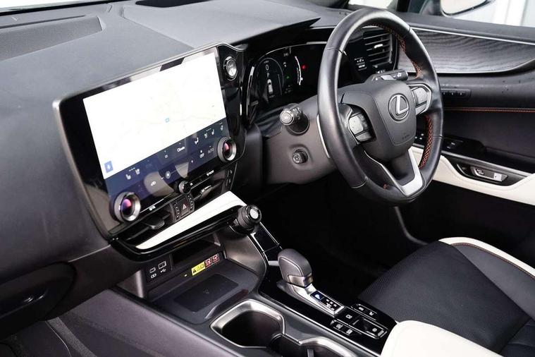 360 degree panoramic view monitor, 4 driving modes EV/Eco/Normal/Sport, 7" display in instrument binnacle, Blind spot monitoring with rear cross traffic alert, Bluetooth telephone connectivity, eCall emergency system, Electric speed sensitive power steering, Extended lexus safety+ system includes front cross traffic alert and lane change assist, Fully automated parking, Head up Display, Intelligent parking sensors - 4 front and 4 rear, Lane change flasher function, Lexus link connect - Cloud based navigation, cloud based voice assistant, always online, 14" HD touchscreen, embedded nav and faster CPU, Push button starter, Reversing camera with back guidelines, Service interval indicator, Tazuna cockpit with 7" improved meters display, 10" HUD and capacitive touch steering wheel switches, Wireless Apple CarPlay and wired Android Auto, Wireless Smartphone charger, 6.6 kW onboard charger, All Wheel Drive (AWD), Hybrid automatic transmission, Vehicle Dynamics Integrated Management (VDIM), Vehicle Stability Control (VSC), 10 speakers, 4 USB ports - 2 front, one USB C, 2 rear USB C, DAB Digital radio, 4 eye LED headlight with adaptive high beam, Automatic headlights, Digital rear view mirror, Double hidden exhaust pipes, Electric sunroof, Front and rear one touch power windows, with anti-jam protection, Headlight cleaners, Heated, auto-folding, auto-dimming outside mirrors with reverse tilt function and turn indicators, Illuminated door handles with puddle light, LED brake lights and rear lights with emergency brake signal, LED cornering lights, LED daytime running lights, LED front fog lights, LED Indicators, Power back door with kick sensor, Privacy glass, rear doors and tailgate, Rain sensor windscreen wipers, Rear side wing doors, Rear wiper, 12V accessory port centre console and luggage compartment, 2 cupholders in front centre console, 2 x fixed shopping bag hooks in boot, 2 x sun visors with vanity mirror and lamp, 3 seat bench in 2nd row, 4 way electrical lumbar adjustment for driver, 4 x tie down hooks in the boot, 60/40 split folding rear seat, 8 way driver/passenger electrically adjustable front seats, Adjustable rear seat backrest, Card holder installed in driver and passengers sun visors, Centre armrest with storage box, Door courtesy lights, Driver seat memory function, Dual zone climate control air conditioning system with humidity sensor, Front and rear head restraints, Front and rear textile carpet mats, Front passenger seat, Heated and ventilated front seats, Heated rear seats, Heated steering wheel, Leather gear lever, LED ambient lighting, LED interior illumination, Power adjustable leather steering wheel with paddle shifts, Rear centre armrest with 2 cupholders, Smooth leather upholstery, Whiplash Injury Lessening (WIL) feature (active headrest) for seats, 2 x Isofix child rear seat restraints, 3 point ELR front seatbelts with pretensioners, 3x3 point rear seat belts, ABS, Adjustable seat belt anchor points, Driver and front passenger 2 stage airbag, Driver/front passenger side airbags, Drivers knee airbag, E-Latch with safe exit assist, EBD + Brake Assist, ECB (Electronically Controlled Brake System), Electronic parking brake, Front and rear curtain shield airbags, Front center airbag, Front passenger seat cushion airbag, Hill assist control, Lexus safety system - dynamic radar cruise control, pre collision system day and night, lane tracing assist, road sign, OTA, Manual rear child locks, Passenger airbag cut-off device, Traction control, Tyre pressure warning, 2 x remote key fobs, Anti-theft system with alarm, intrusion sensor, glass breakage sensor, tilt sensor and engine immobiliser, Locking wheel nuts, Smart card key, Smart keyless entry, Speed sensitive auto door locking, Two motion door lock with double lock, VIN Window etching, Sumi blackwood inlay,