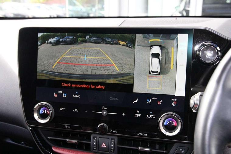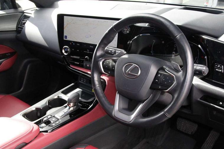 360 degree panoramic view monitor, 4 driving modes EV/Eco/Normal/Sport, 7" display in instrument binnacle, Blind spot monitoring with rear cross traffic alert, Bluetooth telephone connectivity, eCall emergency system, Electric speed sensitive power steering, Extended lexus safety+ system includes front cross traffic alert and lane change assist, Fully automated parking, Head up Display, Intelligent parking sensors - 4 front and 4 rear, Lane change flasher function, Lexus link connect - Cloud based navigation, cloud based voice assistant, always online, 14" HD touchscreen, embedded nav and faster CPU, Push button starter, Reversing camera with back guidelines, Service interval indicator, Tazuna cockpit with 7" improved meters display, 10" HUD and capacitive touch steering wheel switches, Wireless Apple CarPlay and wired Android Auto, Wireless Smartphone charger, 6.6 kW onboard charger, All Wheel Drive (AWD), Hybrid automatic transmission, Vehicle Dynamics Integrated Management (VDIM), Vehicle Stability Control (VSC), 10 speakers, 4 USB ports - 2 front, one USB C, 2 rear USB C, DAB Digital radio, 4 eye LED headlight with adaptive high beam, Automatic headlights, Digital rear view mirror, Double hidden exhaust pipes, Electric sunroof, Front and rear one touch power windows, with anti-jam protection, Headlight cleaners, Heated, auto-folding, auto-dimming outside mirrors with reverse tilt function and turn indicators, Illuminated door handles with puddle light, LED brake lights and rear lights with emergency brake signal, LED cornering lights, LED daytime running lights, LED front fog lights, LED Indicators, Power back door with kick sensor, Privacy glass, rear doors and tailgate, Rain sensor windscreen wipers, Rear side wing doors, Rear wiper, 12V accessory port centre console and luggage compartment, 2 cupholders in front centre console, 2 x fixed shopping bag hooks in boot, 2 x sun visors with vanity mirror and lamp, 3 seat bench in 2nd row, 4 way electrical lumbar adjustment for driver, 4 x tie down hooks in the boot, 60/40 split folding rear seat, 8 way driver/passenger electrically adjustable front seats, Adjustable rear seat backrest, Card holder installed in driver and passengers sun visors, Centre armrest with storage box, Door courtesy lights, Driver seat memory function, Dual zone climate control air conditioning system with humidity sensor, Front and rear head restraints, Front and rear textile carpet mats, Front passenger seat, Heated and ventilated front seats, Heated rear seats, Heated steering wheel, Leather gear lever, LED ambient lighting, LED interior illumination, Power adjustable leather steering wheel with paddle shifts, Rear centre armrest with 2 cupholders, Smooth leather upholstery, Whiplash Injury Lessening (WIL) feature (active headrest) for seats, 2 x Isofix child rear seat restraints, 3 point ELR front seatbelts with pretensioners, 3x3 point rear seat belts, ABS, Adjustable seat belt anchor points, Driver and front passenger 2 stage airbag, Driver/front passenger side airbags, Drivers knee airbag, E-Latch with safe exit assist, EBD + Brake Assist, ECB (Electronically Controlled Brake System), Electronic parking brake, Front and rear curtain shield airbags, Front center airbag, Front passenger seat cushion airbag, Hill assist control, Lexus safety system - dynamic radar cruise control, pre collision system day and night, lane tracing assist, road sign, OTA, Manual rear child locks, Passenger airbag cut-off device, Traction control, Tyre pressure warning, 2 x remote key fobs, Anti-theft system with alarm, intrusion sensor, glass breakage sensor, tilt sensor and engine immobiliser, Locking wheel nuts, Smart card key, Smart keyless entry, Speed sensitive auto door locking, Two motion door lock with double lock, VIN Window etching, Sumi blackwood inlay,