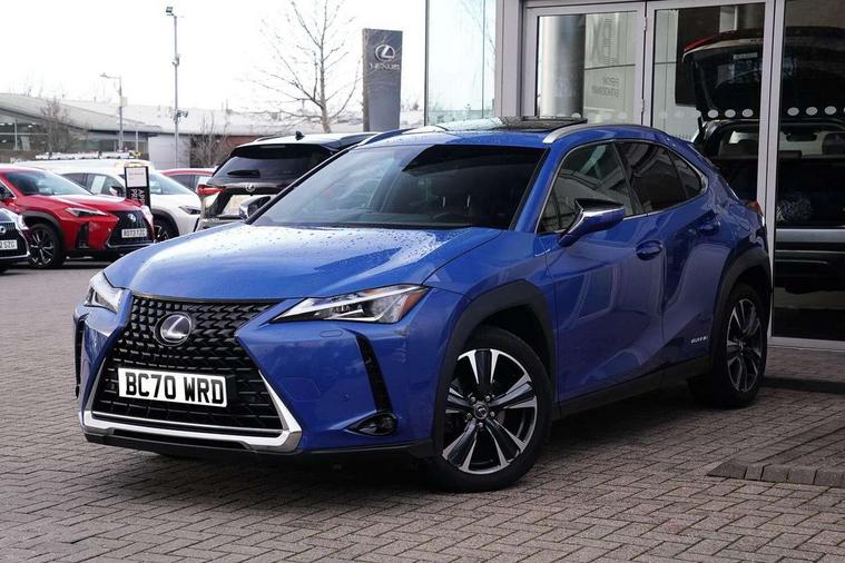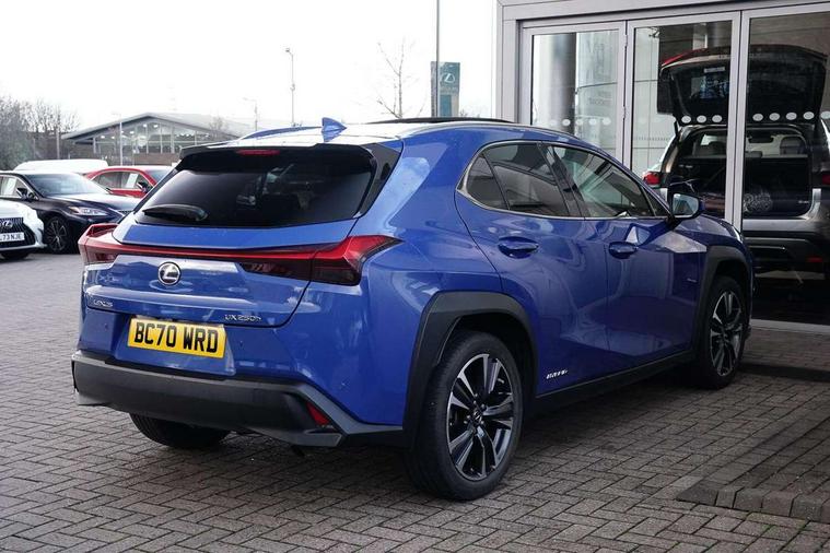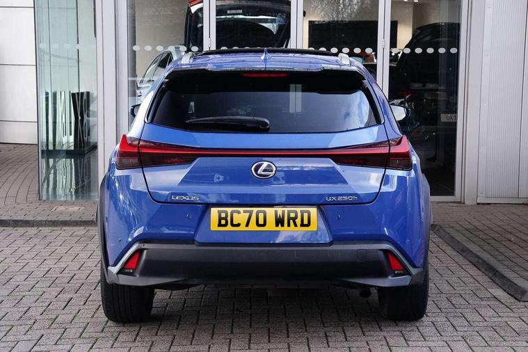 4 driving modes EV/Eco/Normal/Sport, 7" Lexus media display, 7" TFT instrument cluster, Analogue clock with GPS function, Apple car play/Android Auto, Blind spot monitoring (BSM) with Rear cross traffic alert and auto brake (RCTAB), Compatible mobile phone bluetooth with audio streaming, E-call, Electric power steering (EPS) with speed sensitive features, Lane change flasher function, Lexus link connected services, Lexus navigation system, Lexus safety systems + includes dynamic radar cruise control, pre collision system day and night, lane tracing assist, road sign assist, Parking assist sensors, 4 front and 4 rear, Push button start, Remote touch interface, Reversing camera with back guide lines, Trip computer, Vehicle Dynamics Integrated Management (VDIM), Vehicle Stability Control (VSC), 2 front USB and 2 rear USB charging points, 6 speakers, AM/FM and DAB radio, AUX socket with VTR compatibility, CD player, Acoustic windscreen, Aero stabilising arch mouldings, Aero stabilising rear lights, Aero ventilated wheels, Auto dimming interior rear view mirror, Bi-LED (low and high beam) headlights with Auto High Beam (AHB), Black roof drip mouldings, Body adhesive, laser screw welding and laser brazed roof structure, Body coloured bumpers, Chrome roof rails, Electric adjustable/heated door mirrors, Electric glass sunroof, Front and rear one touch power windows, with anti-jam protection, Headlight cleaners, Illuminated door handles with puddle light, LED cornering headlights, LED daytime running lights, LED front and rear fog lights, LED tail lights, Power back door system, Privacy glass, rear doors and tailgate, Rain sensor windscreen wipers, Rear wiper, Shark fin roof aerial, Single hidden exhaust pipe, Towing preparation, 12V accessory port centre console and luggage compartment, 2 cup holders in the front and rear centre console, 2 x folding shopping bag hooks in boot, 2 x sun visors with vanity mirror and lamp, 4 x tie down hooks in the boot, 5 headrests, 6 way driver and passenger manually adjustable front seats, 60/40 split folding rear seat, Card holder installed in driver and passengers sun visors, Centre armrest with storage, Driver and passenger door pocket, Dual zone electronic climate control + Nano-E humidity sensor, Glovebox, Heated front seats, Heated steering wheel, Leather gear lever, Leather steering wheel, LED interior illumination, Map pockets in the rear of passenger's front seat, Rear air vents with 2 USB chargers, Rear armrest with 2 cupholders, Smooth leather upholstery, Storage tray under audio panel, Textile carpet mats, Tilt/reach adjustable steering column, Under desk side storage, 2 x Isofix child rear seat restraints, 3x3 point rear seatbelts, Anti-lock braking system (ABS), BAS (Brake Assist System), Driver and front passenger 2 stage airbag, Driver and front passenger knee airbag, Driver/front passenger side airbags, EBD - Electronic brakeforce distribution, ECB (Electronically Controlled Brake System), Electric parking brake, Front adjustable seatbelt anchor points, Front and rear curtain shield airbags, Front outer seatbelt+pre-tensioners, force limiter+tension reduction: 3-point with active safety link to PCS, Hill start assist control (HAC), Passenger airbag cut-off device, Rear outer seatbelt+pre-tensioners, force limiter+tension reduction: 3-point with active safety link to PCS, Centre belt w/o pre tensioner+force limiter, Secondary Collision Brake (SCB), TRC (Traction Control), Tyre pressure warning, 2 x remote key fobs, Anti theft system : Alarm instruction sensor, glass breakage sensor and engine immobiliser, Locking wheel nuts, Remote central door locking, Smart keyless entry, Speed sensitive auto door locking, Two motion door lock with double lock, VIN Window etching, 18" Alloy wheels with run flat tyres,