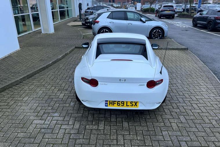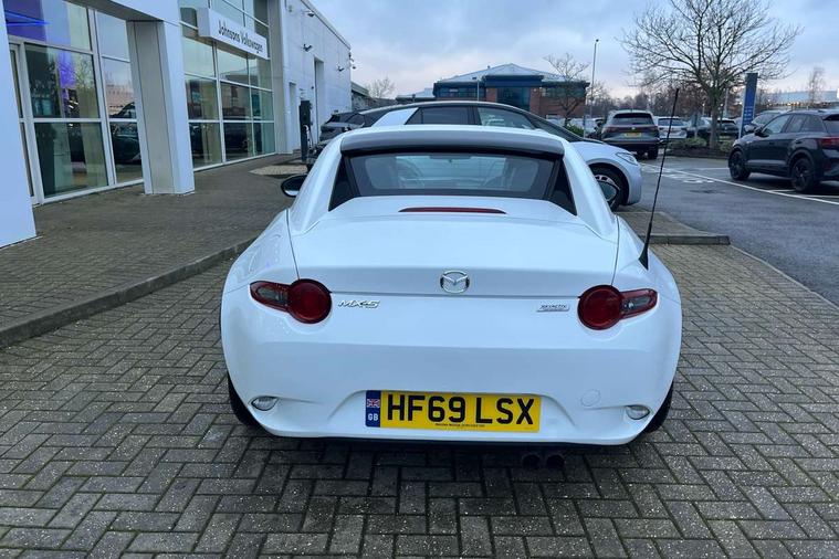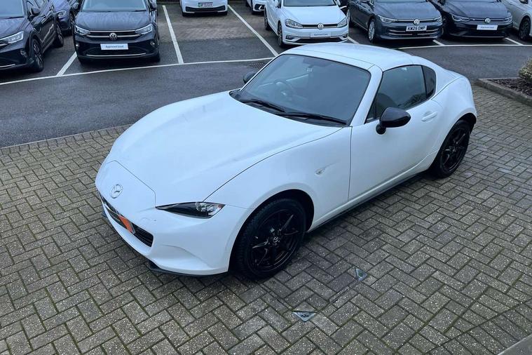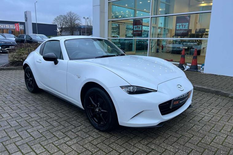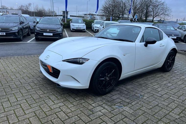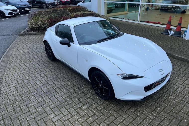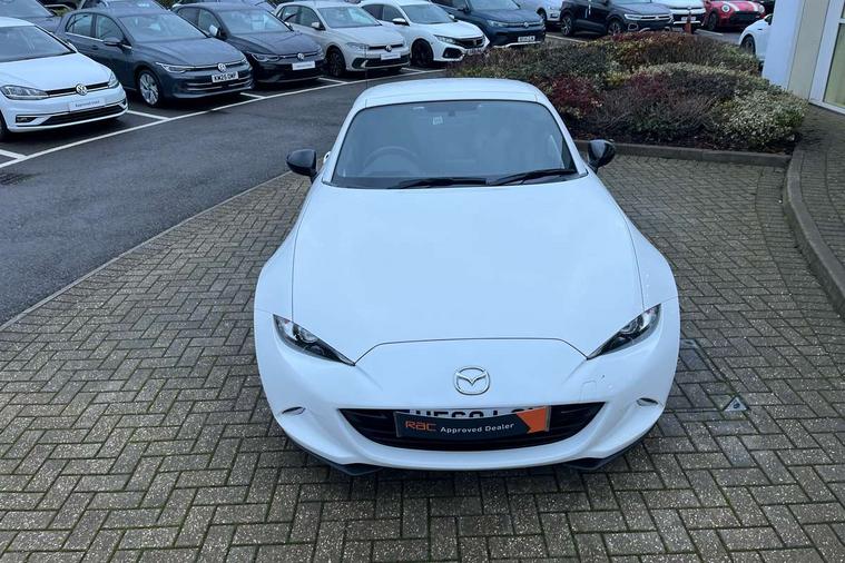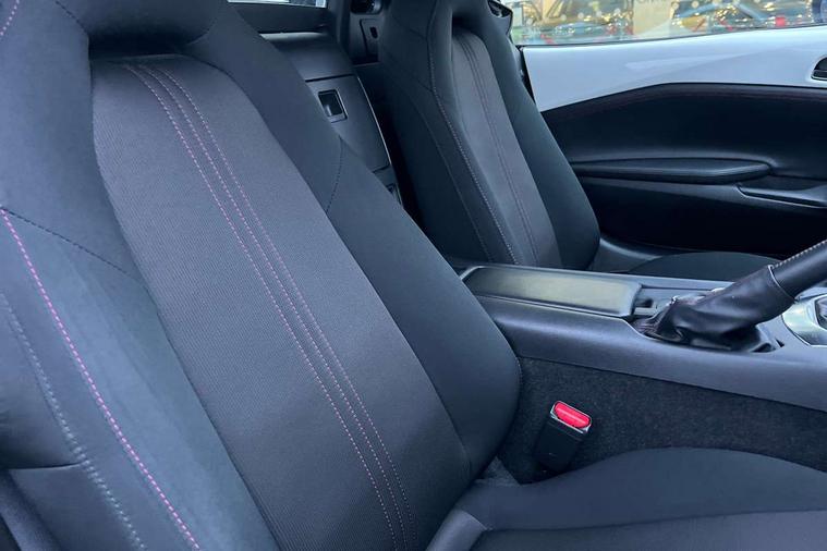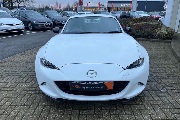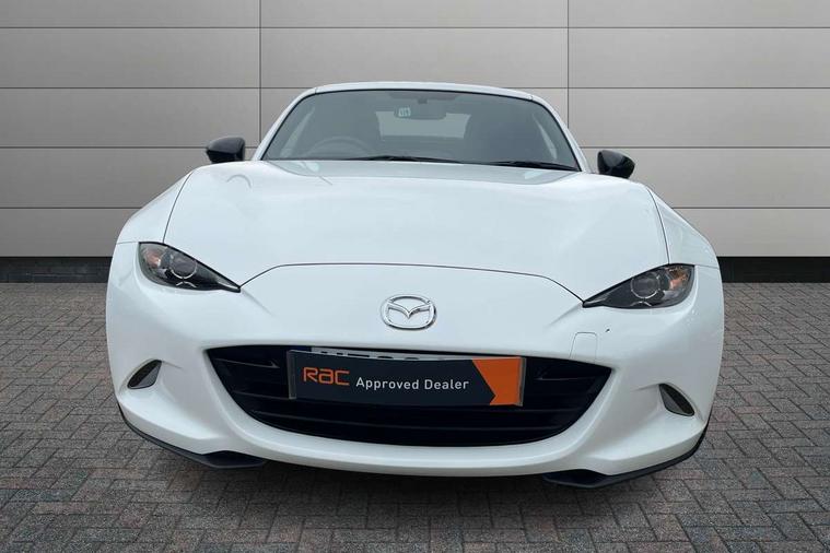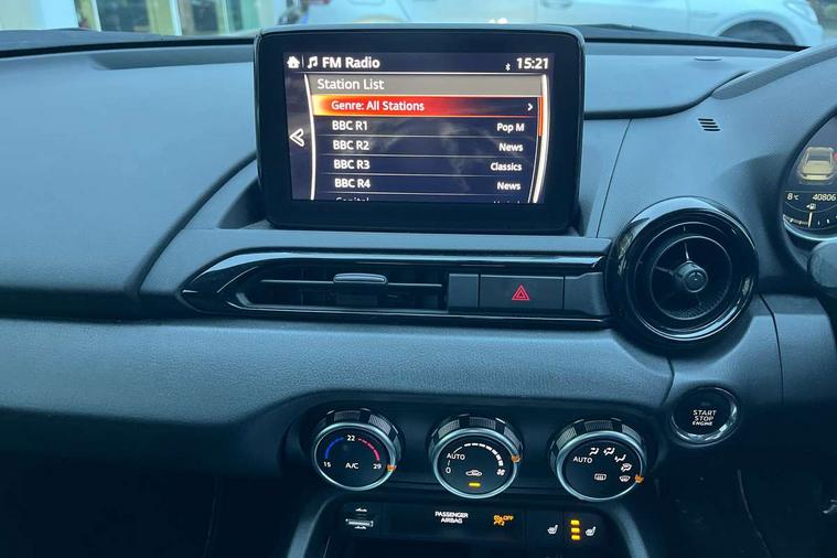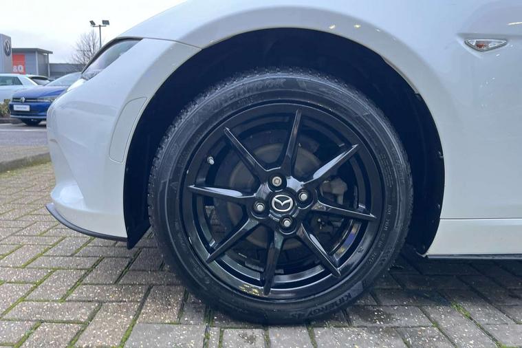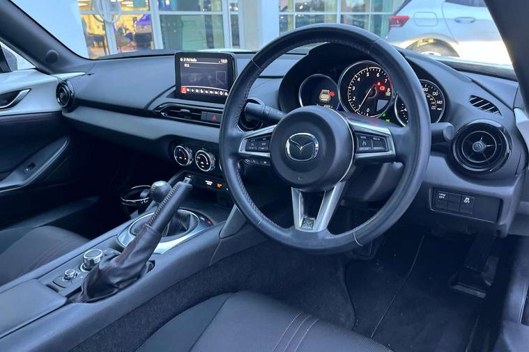 7" touchscreen with multimedia commander, Aha and stitcher app, Analogue speedometer, Cruise control + speed limiter, Electronic odometer, Engine start/stop button, Hands free phone preparation, PAS, Remote boot release, Satellite navigation system, Tachometer, Trip computer, Water temperature gauge, I-ELOOP, i-stop, 2 USB/aux input socket, Audio system with 6 speakers with 2 in driver headrest, AM/FM/DAB radio and single CD/MP3, Steering wheel audio and Bluetooth controls, Automatic headlamp levelling, Body colour bumpers, Coming/leaving home lighting function, Dual exhaust pipes, Electric front windows/one touch facility, Electrically operated body colour retractable hard top with heated rear glass window, Front intermittent wipers, High mounted rear brake light with Black coloured cover, LED daytime running lights, LED Headlights, Piano black electric/heated door mirrors, Piano Black fashion bars, 12V socket, Body coloured inner door trims, Centre console storage box, Chrome Air conditioning dials, Climate control air conditioning, Cloth upholstery, Coin Box, Cupholders, Driver/ passenger seat manual slide, recline and tilt adjustment, Driver/passenger sunvisors with ticket holders + vanity mirrors, Front centre armrest, Front head restraints, Gear shift indicator, Heated front seats, in 3 heat levels, ISOFIX front passenger seat child seat compliance, Leather gear knob, Leather handbrake lever, Leather steering wheel, Lockable rear storage box, Side door in Black leatherette with Red stitching, Sports seats, Tilt/telescopic steering column, Windblocker, 3 point ELR front seatbelts with pretensioners, ABS+Electronic Brake force Distribution, Deployable Hood System (DHS), DSTC-Dynamic Stability and Traction Control, Dual front airbags, Fasten seatbelt reminder, Hill hold assist, Manual passenger airbag deactivation function, Passenger airbag deactivate switch, Rear smart city brake support, Side airbags, Tyre pressure monitor, Deadlock, Remote central door locking, Remote keyless entry, Thatcham category 1 alarm + immobiliser, Black air vent surround, Black dash trim, Chrome meter rings, 16" Black alloy wheels, Tyre puncture repair kit,