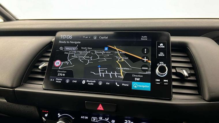 Adaptive cruise control, Adjustable speed limiter, Agile handling assist, Bluetooth hands free telephone connection, eCall emergency call system, Econ mode, Electric power steering wheel with variable gear ratio steering, Emergency stop signalling system, Forward collision warning, Front and rear parking sensors, Honda CONNECT with GARMIN Navigation + 9" touchscreen, AM/FM/DAB/Apple Carplay and android auto, Idle stop, Intelligent speed limiter, Lane departure warning system, Lane keep assist system, Low speed following, Multi-information display, Rear view camera, Road departure mitigation, Tailgate, Traffic jam assist, Traffic sign recognition, Wireless apple carplay, Vehicle stability assist, 'Shark fin' mobile antenna, 180w Power audio system with 4 speakers, 2 USB-C connectors rear, 2x USB Front socket (1 data & 1 charge), Remote audio controls on steering wheel, Aspheric door mirrors, Auto wipers, Automatic headlights with on/off timer, Coming/leaving home function, Black door mirrors, Black headlight extension, Body colour door handles, Body coloured front grille, eHEV emblem, Electric adjustable door mirrors, Electrically folding door mirrors, Exclusive styling includes front and rear bumper, front fog garnish, silver fender, side sill garnish, Front and rear electric windows, Heated door mirrors, High beam assist, LED 3rd brake light, LED daytime running lights, LED front fog lights, LED Headlights, LED rear lights, Manual headlight levelling, Privacy glass, Rear side wing doors, Rear wiper, Roof rails, Single exhaust tailpipe, 3 seat bench in 2nd row, 60/40 split rear bench seat, Cargo net hooks, Climate control air conditioning, Driver and front passenger seat armrests, Driver and passenger front seat pockets, Driver's seat height adjustment, Fabric/Water repellent upholstery, Front accessory power socket, Front head restraints, Front map lights, Front/rear courtesy lights, Heated front seats, Heated steering wheel, Isofix points, Leather gearshift knob, Leather steering wheel, Magic seat flexibility system, Plating interior door handles, Rear head restraints, Single front passenger seat, Sunvisors with vanity mirrors, Tilt/telescopic adjustable steering wheel, Tonneau cover, Trunk light, Vanity mirror illumination, 3x3 point rear seatbelts, Anti-lock braking system (ABS), Brake assist function, Brake hold function, Child locks on rear doors, Collision mitigation braking system, Deflation warning system, Driver knee airbag, Driver SRS airbag (single stage inflation), Driver/Front Passenger airbags, Electronic parking brake with auto hold, Front and rear seat belt with emergency locking retractor, Front and rear side curtain airbag, Front centre airbag, Front side airbags, Hill start assist, Passenger SRS airbag cut-off device, Rear side airbags, Whiplash lessening front headrests, Honda super locks, Immobiliser, Mirrors and windows key fob operation, Remote central locking with 2 remote folding keys, Security alarm, Smart entry + Smart start, Soft pad leather interior panels, 16" 3D chrome H centre cap alloy wheels, Tyre repair kit,