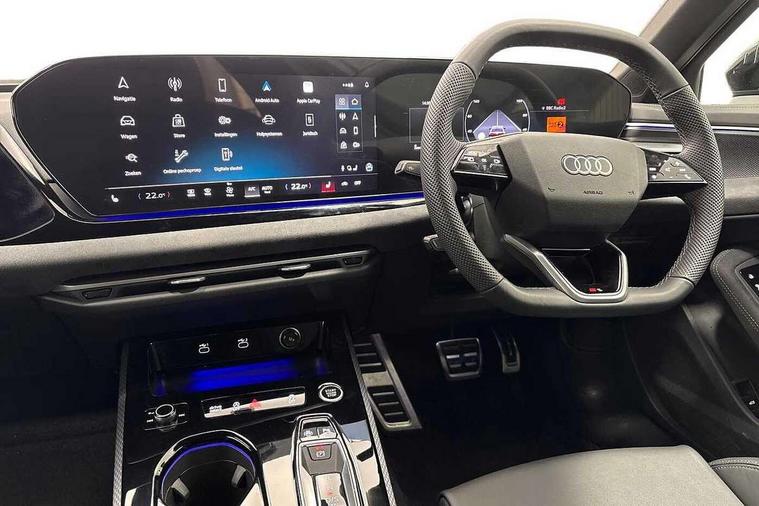 Adaptive cruise control, Advanced driver attention and fatigue montior, Audi application store, Audi assistant, Audi connect emergency call and service, Audi drive select, Audi smartphone interface, Audi virtual cockpit plus with 11.9" OLED colour display, Automatic start/stop system with coasting functionality, Camera based traffic sign recognition, Intersection assist, Lane change assistant with exit warning system, rear cross traffic alert and rear turn assist, Lane departure warning with emergency assist, MMI 10.9" front passenger touch display, MMI navigation plus with high resolution 14.5" OLED touchscreen colour display, Park assist plus, Parking system plus with 360 display, Progressive steering with servotronic, Swerve assist and turn assist, Top view camera, Traffic sign based speed limiter, Sports suspension lowered by 20mm, 2 USB-C ports in both the front and rear, Audi sound system impressive sound with 10 loudspeakers including centre speaker and subwoofer, 6-channel amplifier with a total output of 180 watts, DAB digital radio reception, Smartphone compartment with wireless charging, Aluminium window trims, Auto dimming rear view mirror, Black door handles, Dark chrome-plated tailpipe trims, Door mirrors - electrically adjustable, heated, folding and auto dimming on both sides, Front and rear electric windows, Front door sill trims with aluminium inlays, illuminated with 'S' logo, Headlight cleaning system, High beam assist, LED daytime running lights, LED rear lights pro incl. dynamic rear indicators and illuminated light strip with animated coming and leaving home function, LED third brake light, Matrix LED headlights with eight light signatures selectable via the MMI or the myAudi app, Privacy glass, Rear and side windows with heat insulating glass, Rear boot, Rear side wing doors, S Line badges on the front wings, S line bumpers, radiator grille and diffuser in phantom black and diffuser insert in matt anthracite, White rhombus logo projection light in exterior mirrors, Windscreen with acoustic glazing, 3 rear headrests, 3 seat rear bench, 3 spoke leather steering wheel with multi-function buttons with touch control, flattened on top and bottom, with S badging and contrast stitching, 3-zone automatic climate control, 40:20:40 split folding rear seat bench with centre armrest and cup holders, Comfort front centre armrest, Electrically adjustable front seats, Front and rear floor mats, Front sport seats with integrated headrest and S embossed logo, Headlining in black cloth, Heated front seats, i-Size child seat mounting on the front passenger side and outer rear seats, i-Size and top tether on the outer rear seats, Luggage compartment lid, electrically opening and closing, Manual steering column height and depth adjustment, Memory function for driver seat, Single front passenger seat, Stainless steel pedals and footrest, Steering wheel grips in perforated leather and shift paddles, Ambient lighting package plus - A5, Black styling package plus - A5, 3x3 point rear seat belts, Acoustic vehicle alerting system, Convenience key with safelock, Driver airbag, Electric child safety locks, First aid kit with warning triangle and vests, Front emergency brake assist, Front passenger airbag, Front passenger airbag deactivation, Hill hold assist, Occupant detection in rear seat area, Proactive passenger protection system for front, sides and rear, Red brake calipers, Seat belt monitoring with rear seat occupant reminder, Side airbags in front and rear with head airbag system and front interaction airbag, Tyre pressure loss indicator, Anti theft alarm, Anti-theft wheel bolts, Keyless Go, Accent surfaces and control buttons in gloss black, Black dashboard with contrast stitching, Softwrap in Dinamica with contrast stitching, Upper and lower interior elements in dinamica microfiber, 20" 5 arm fold design Audi sport alloy wheels in silk matt grey and gloss turned finish, Tyre repair kit,