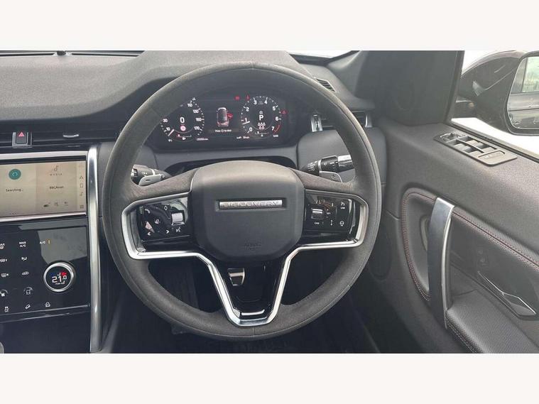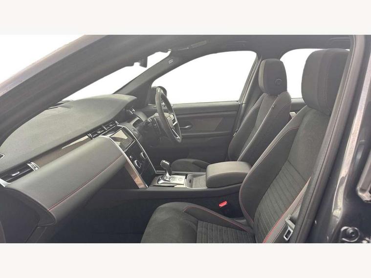 10" touch screen, 3D Surround Camera with 360 View, 180 Rear View, Front Traffic Detection, Forward Vehicle Guidance, Tow Hitch Assist and clear sight Ground View, Android Auto, Apple CarPlay, Driver condition monitor, Front and rear parking aid, InControl remote premium, Interactive driver display, Lane keep assist, PAS, Pivi Pro connected navigation system with upgraded Infotainment, Powered tailgate/boot lid, Rear view camera, Service interval indicator, Traffic sign recognition with adaptive speed limiter, Trip computer, Wade Sensing, All terrain progress control, Coil suspension system, Configurable dynamics, Terrain Response 2, Bluetooth connectivity including audio streaming, Digital Audio Broadcast radio-DAB, Steering wheel mounted audio controls, Automatic headlight levelling, Automatic headlights, Black contrast roof, Electric front/rear windows, Fixed panoramic sunroof with powered sunblind, Power fold, auto-dimming, heated door mirrors with approach lights, Rain sensing windscreen wipers, Rear fog lights, Rear side wing doors, Rear wiper, Bright metal pedals, Centre console with armrest, Front passenger isofix child seat attachment, Rear headrests, Satin chrome gearshift paddles, Sunvisors with illuminated vanity mirrors, Third row dual adjustable individual seats, Tilt/reach adjustable steering wheel, Black exterior pack - Discovery sport, Online pack - Discovery sport, 3 point seatbelts on all seats, ABS, Brake hold function, Collision mitigation braking system, Cornering brake control (CBC), Driver/Front Passenger airbags, Drivers knee airbag, Electronic brake force distribution, Electronic parking brake, Emergency brake assist, ESP + traction control, Hill descent control, Hill launch assist, Pedestrian airbag system, Rear seat ISOFIX, Red brake calipers, Side and curtain airbags for front and 2nd row seats, Trailer stability control, Tyre pressure monitoring system, Battery Back Up System (BBUS) with tilt sensor, Intrusion sensor, Keyless entry, Locking wheel nuts, Centre stack rails in noble chrome, Tyre repair kit,