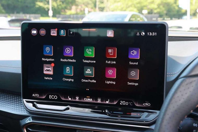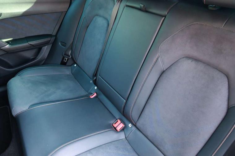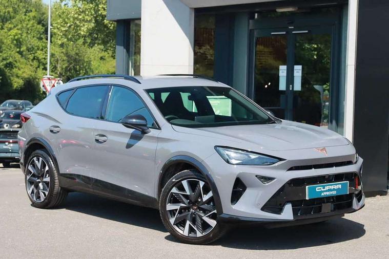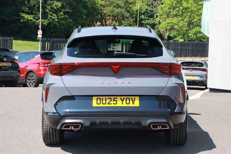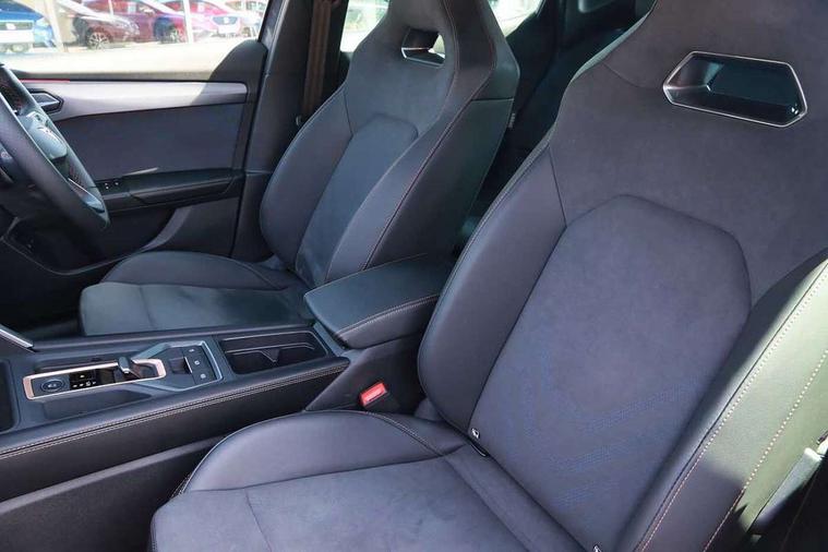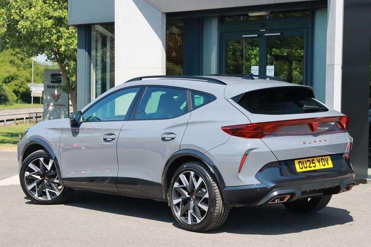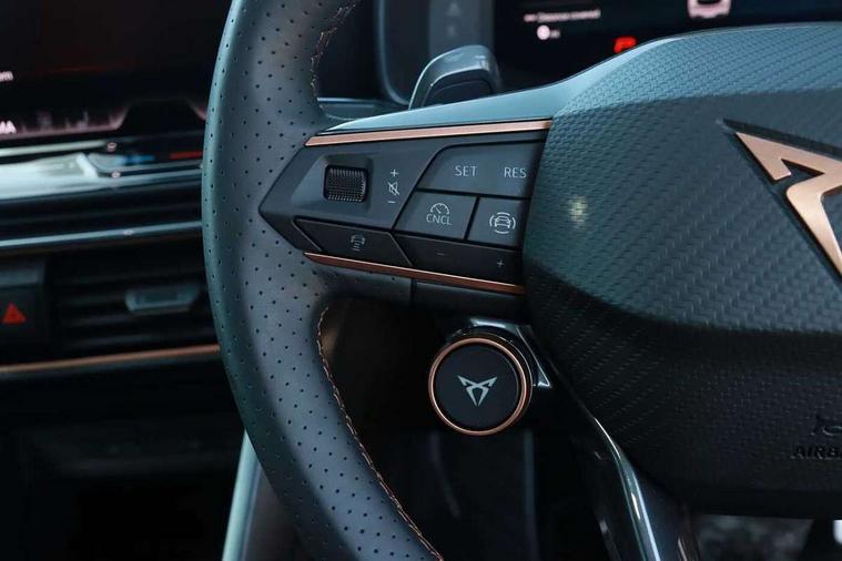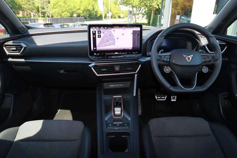 10.25" digital cockpit and configurable dashboard, Adaptive cruise control with follow-to-stop and speed limiter, Advanced driver alert system, Driving profile selection, Dynamic road sign display, Emergency steering support with turn assist, Forward collision warning with automatic braking, Front and rear parking sensors, Full link phone integration, Lane assist, Progressive steering, Rear view camera, RPM, trip computer, outside temp gauge, instrument light brightness, low fuel warning light, lights on reminder, gearshift indicator, Service interval indicator, Start/stop system with regenerative braking, Virtual pedal and electric tailgate, Voice control system, Wired Android Auto, Wireless apple carplay, Wireless phone charger, 10 amp mode 2 charging cable, 32 amp mode 3 charging cable, CUPRA sport suspension, Electronic locking differential and dynamic traction support, 2 front and 2 rear USB type C sockets, Media system with navigation, 12.9" touchscreen display, voice control, DAB, steering wheel mounted controls, Auto dimming rear view mirror, Body colour door handles, Body coloured bumpers, Dark grey wing mirror, Daytime running light with automatic headlight control and coming home feature, Door panel ambient lighting, Dynamic headlight range control, Electric front/rear windows, Electrically adjustable heated and folding door mirrors with memory function, Gloss black roof rails and window surrounds, High beam assist, LED 3rd brake light, LED front fog lamps with cornering function, LED Headlights, LED Taillights with dynamic indicator, Rain sensing wipers, Rear diffuser with copper simulated exhaust pipes, Rear fog lights, Rear side wing doors, Rear wash/wipe, Tinted rear windows, Welcome lights (within exterior mirror housing), 12V socket, 2 front and 2 rear reading lights, 3 seat bench in 2nd row, 60/40 split rear bench seat with armrest and mechanical seat release, Black headlining, Black interior roof lining, Cupra sports pedals, Dust/pollen filter, Electrically adjustable driver's seat with memory and lumbar support, Front and rear head restraints, Front centre armrest, Heated front seats, Heated supersports multifunction leather steering wheel with satellite buttons and gear shift paddles, Height/reach adjust steering wheel, Illuminated aluminium doorsteps, Illuminated interior front door sills, Illuminated sunvisor with mirror, Isofix, Leather dashboard, door insert and side trim panel, LED smart wraparound lighting, PVC/Dinamica microfiber upholstery + bucket seats, Satellite steering wheel, Single front passenger seat, Storage pockets on rear of front seats, Three zone climate control with control panel in rear, 3 point seatbelts on all rear seats, ABS, Brake control system - ESC and brake booster, Child proof door locks, Driver and front passenger airbags with front passenger airbag de-activation, Electronic parking brake, Front and rear disc brakes, Front side curtain airbags, Hill hold control, Public e-call, Seat belt reminder for front and rear seats, Tyre pressure monitoring system, Anti theft alarm system, KESSY Advanced - Keyless start, keyless entry with SAFELOCK, Locking wheel bolts, Copper and aluminium interior detailing, 19" Sandstorm machined sport black and silver alloy wheels, Breakdown and tool kit,